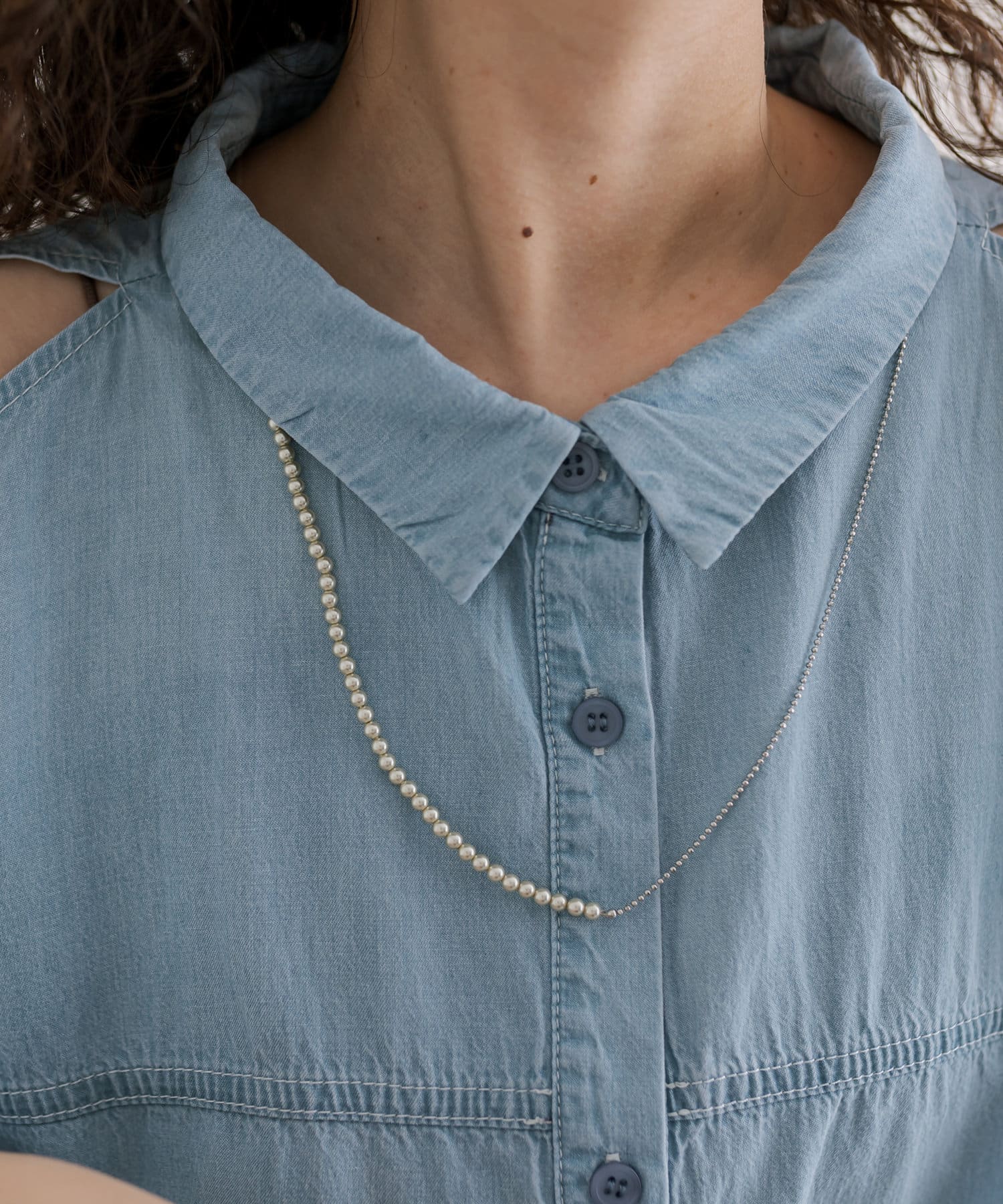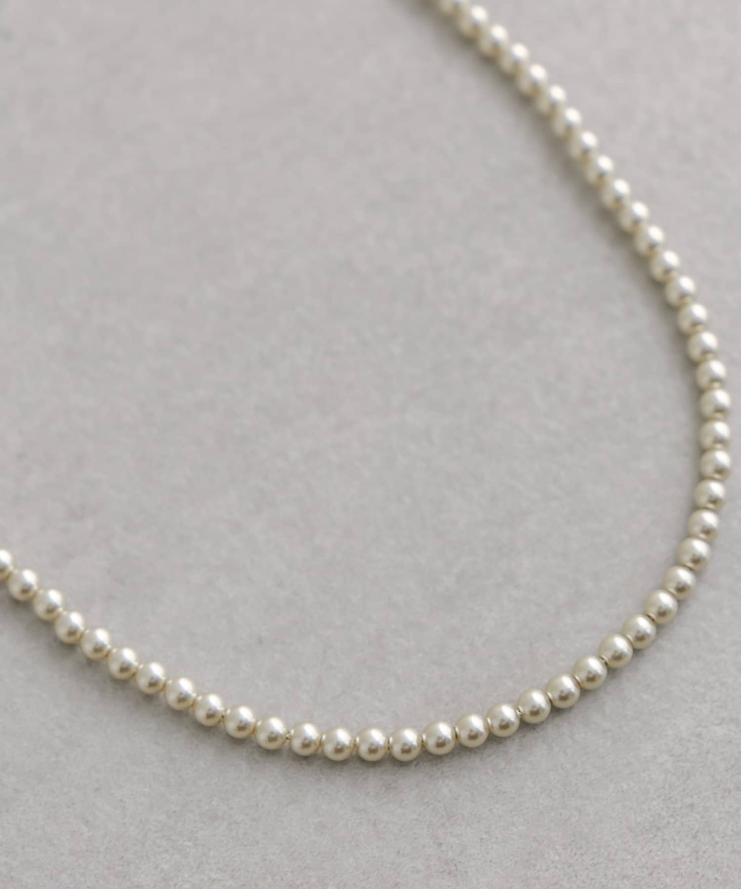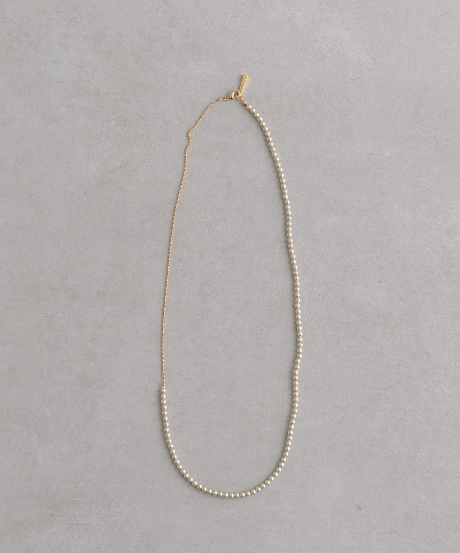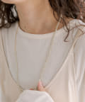 ・小さめでスタイリングにも馴染みやすい細かなパールが目を惹くロングネックレス。