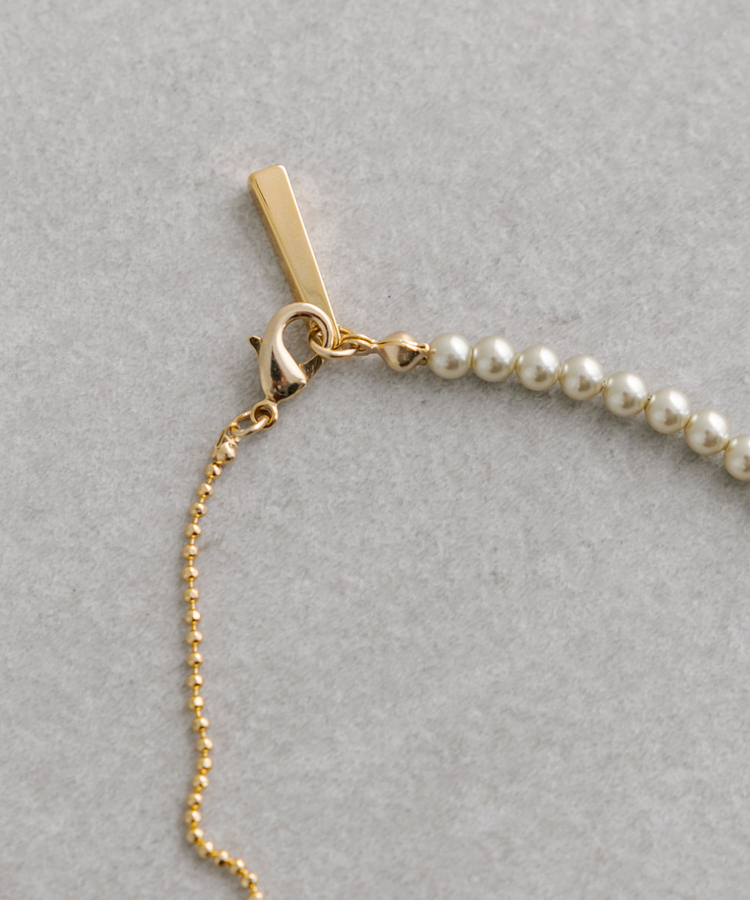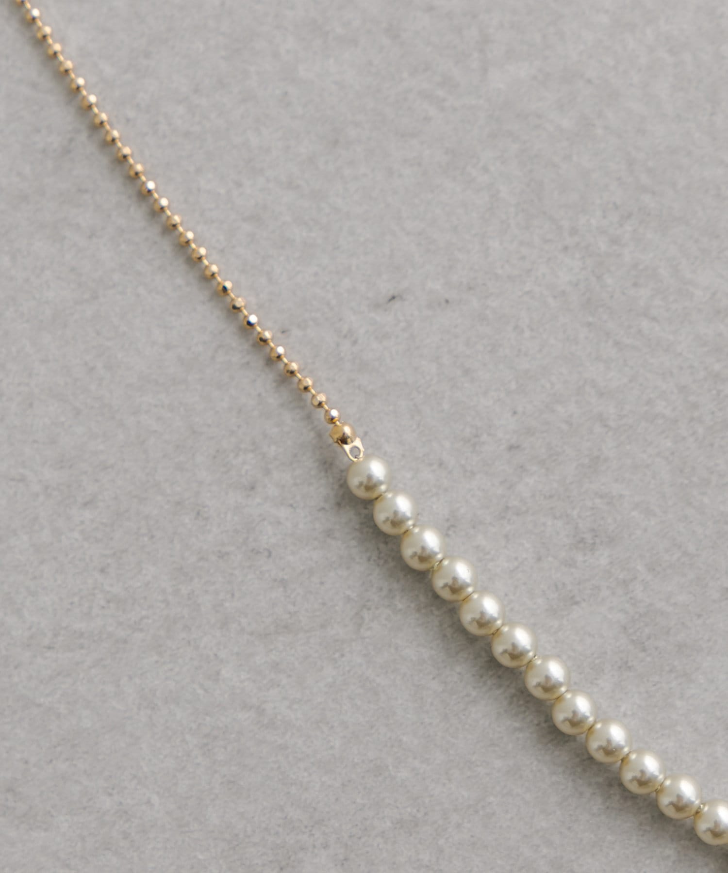 華奢なボールチェーンとパールが連なったロングネックレス。