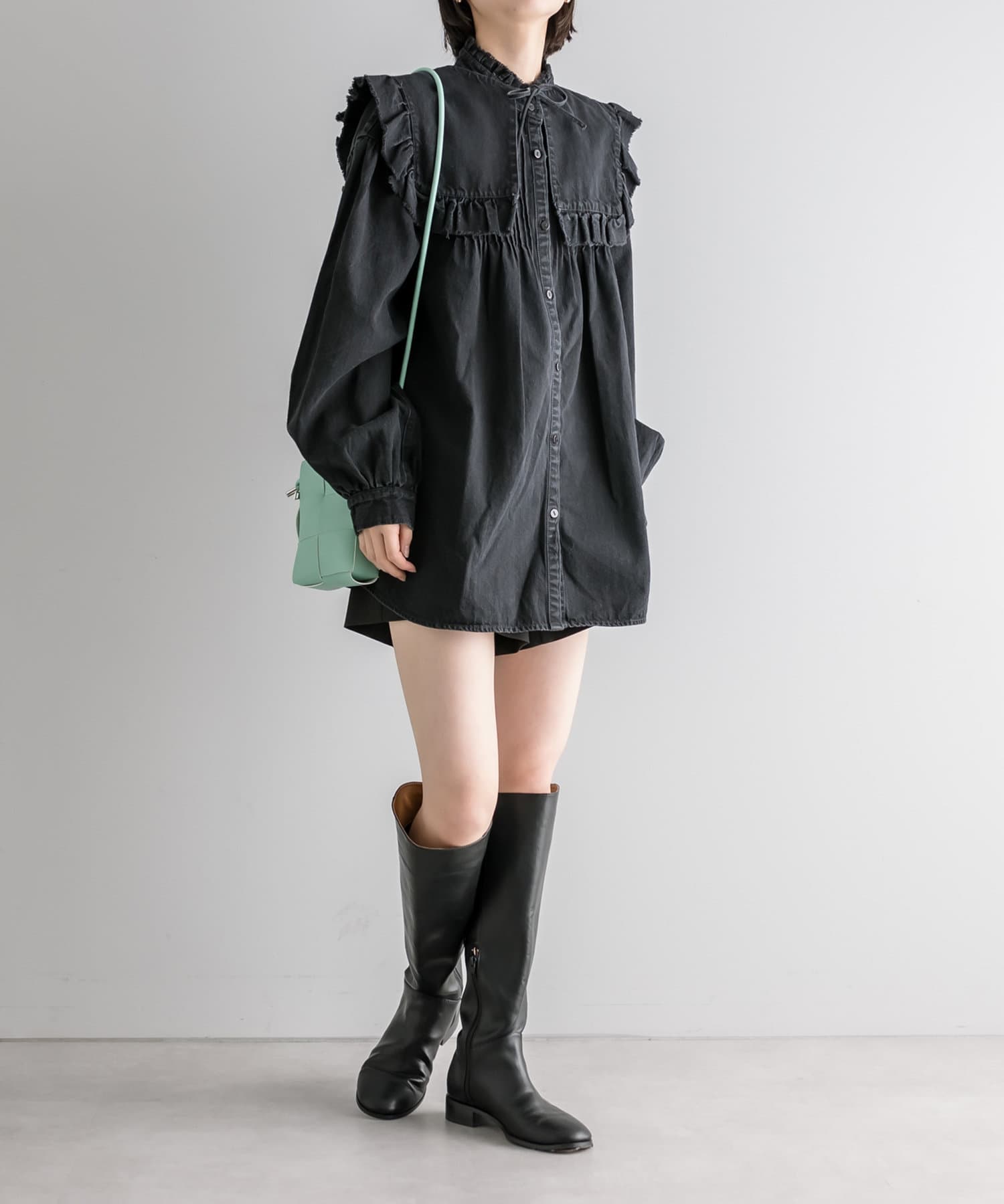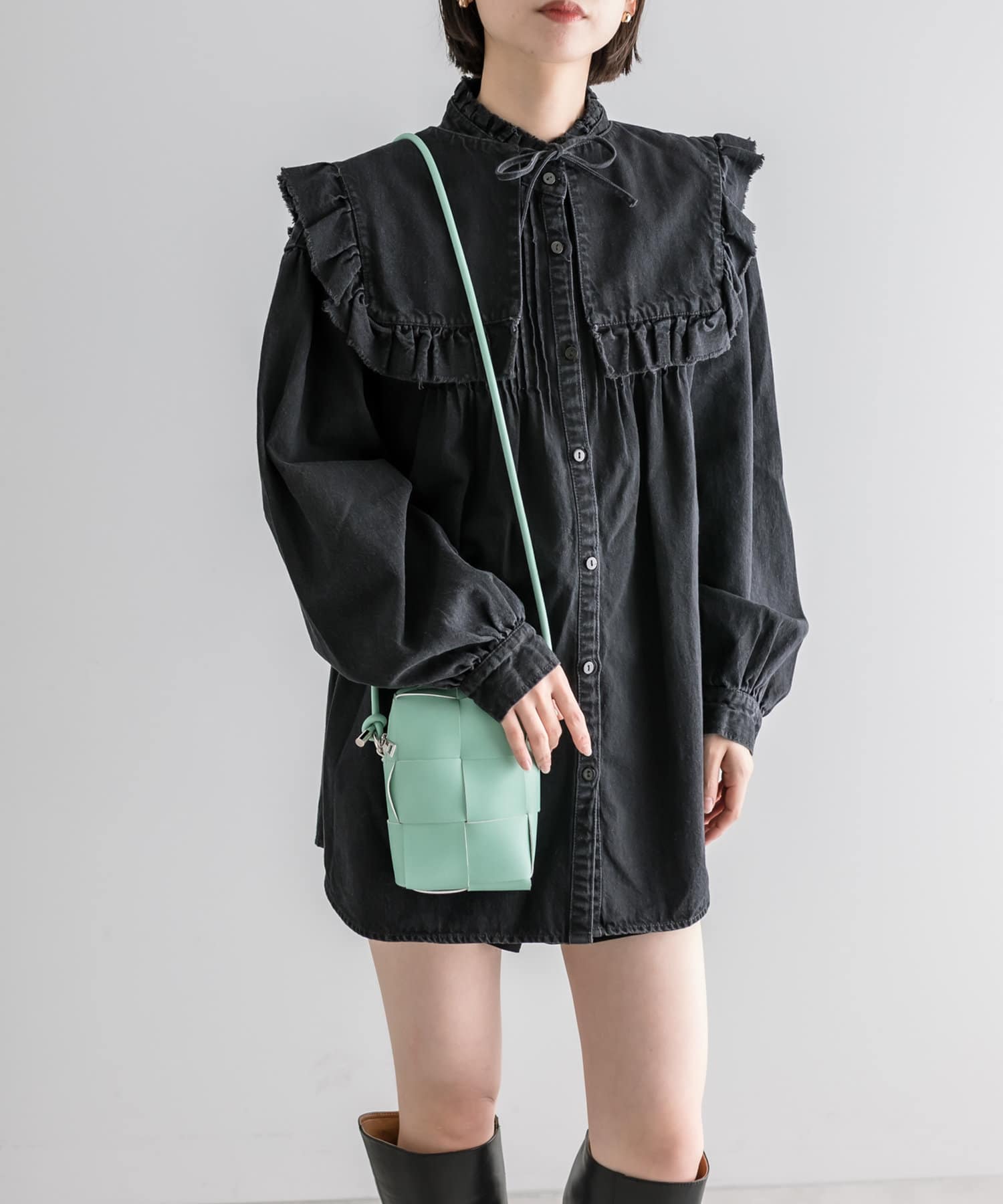 ・シンプルな服装にミントカラーのBAGをワンポイントに◎