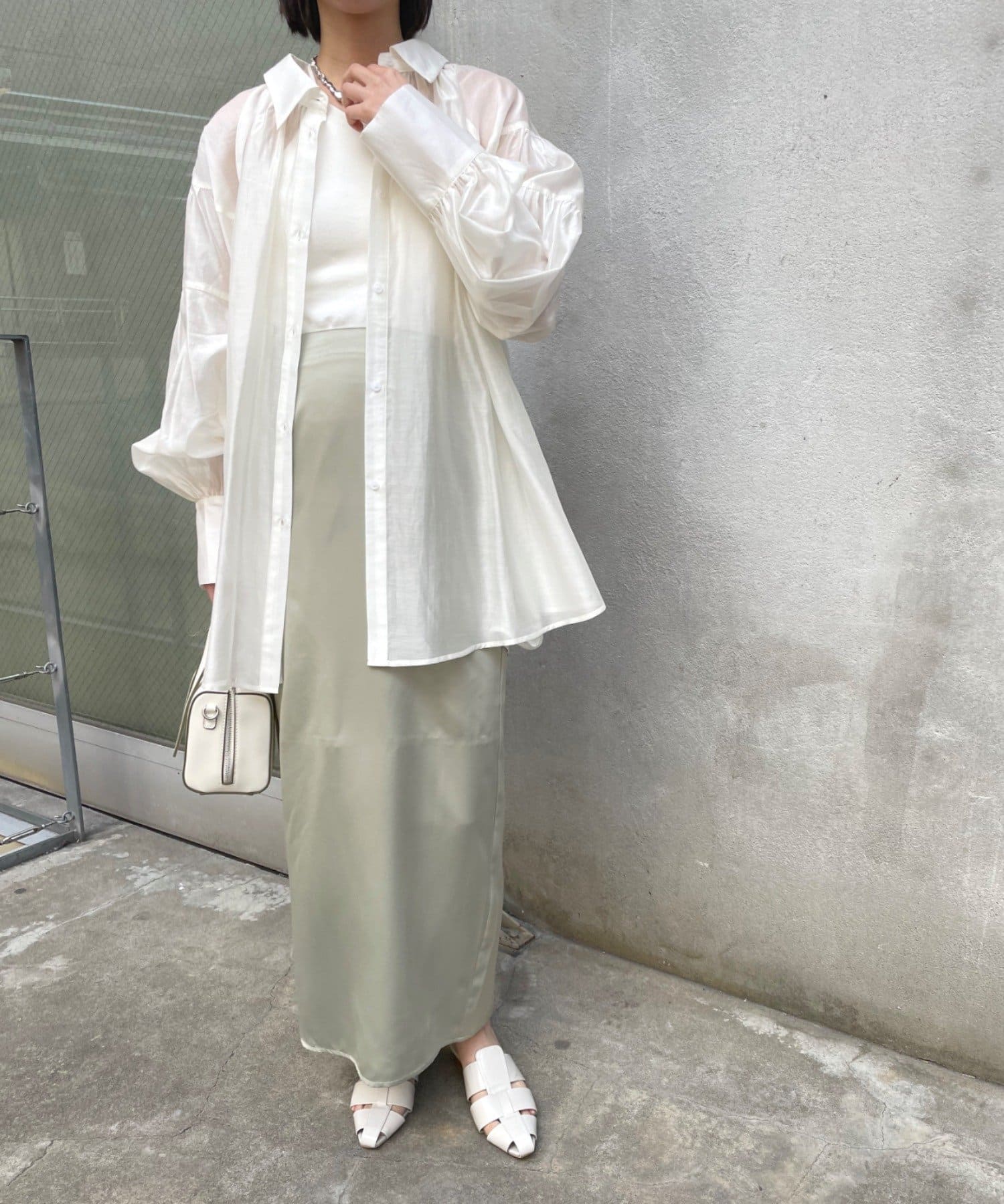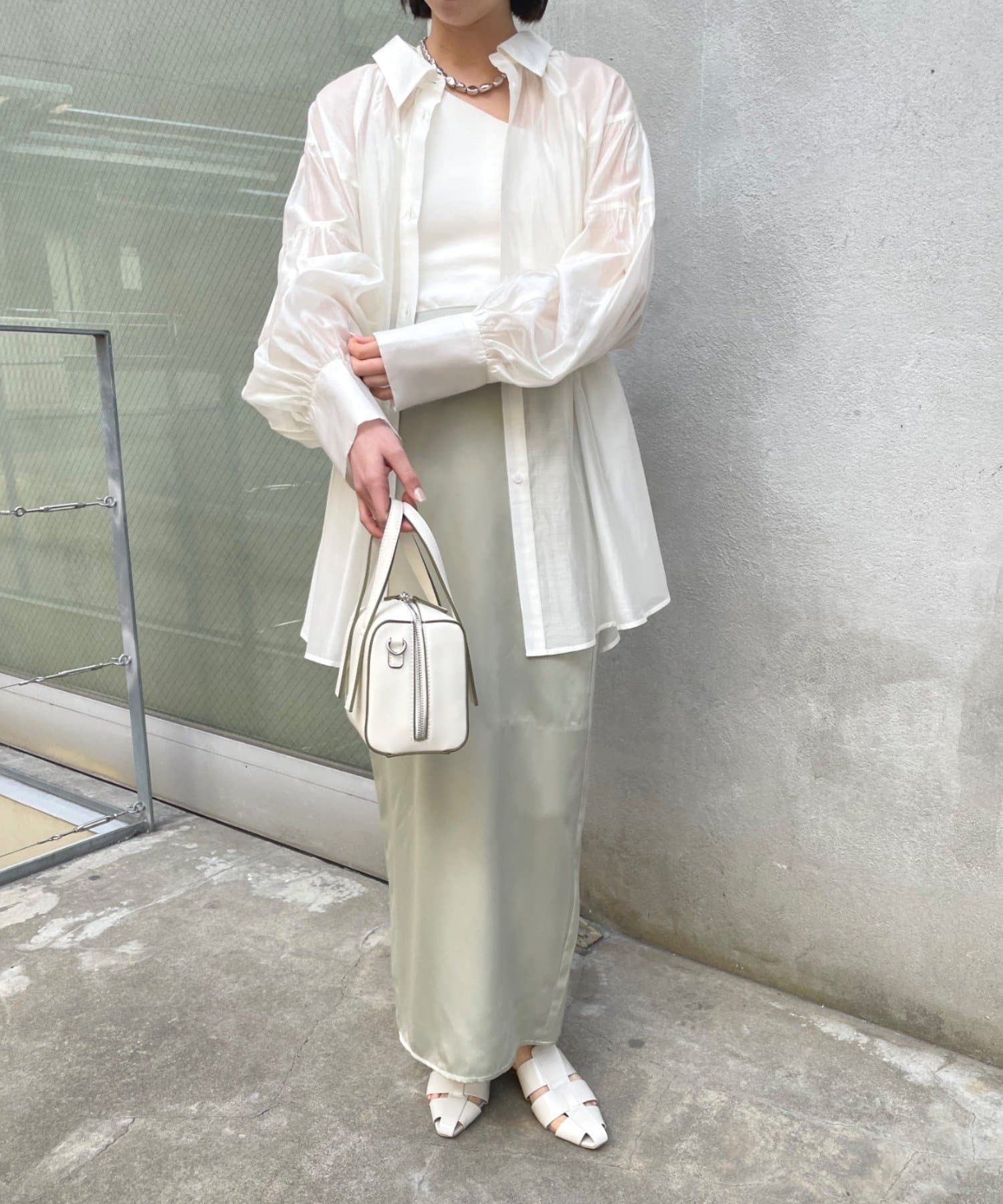 ・シアーシャツとトーンを合わせたスタイリングもよりこなれ見えに。