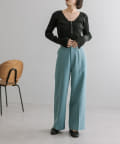 ・センタープレスの入った美脚見え間違いなしのスラックスパンツ。