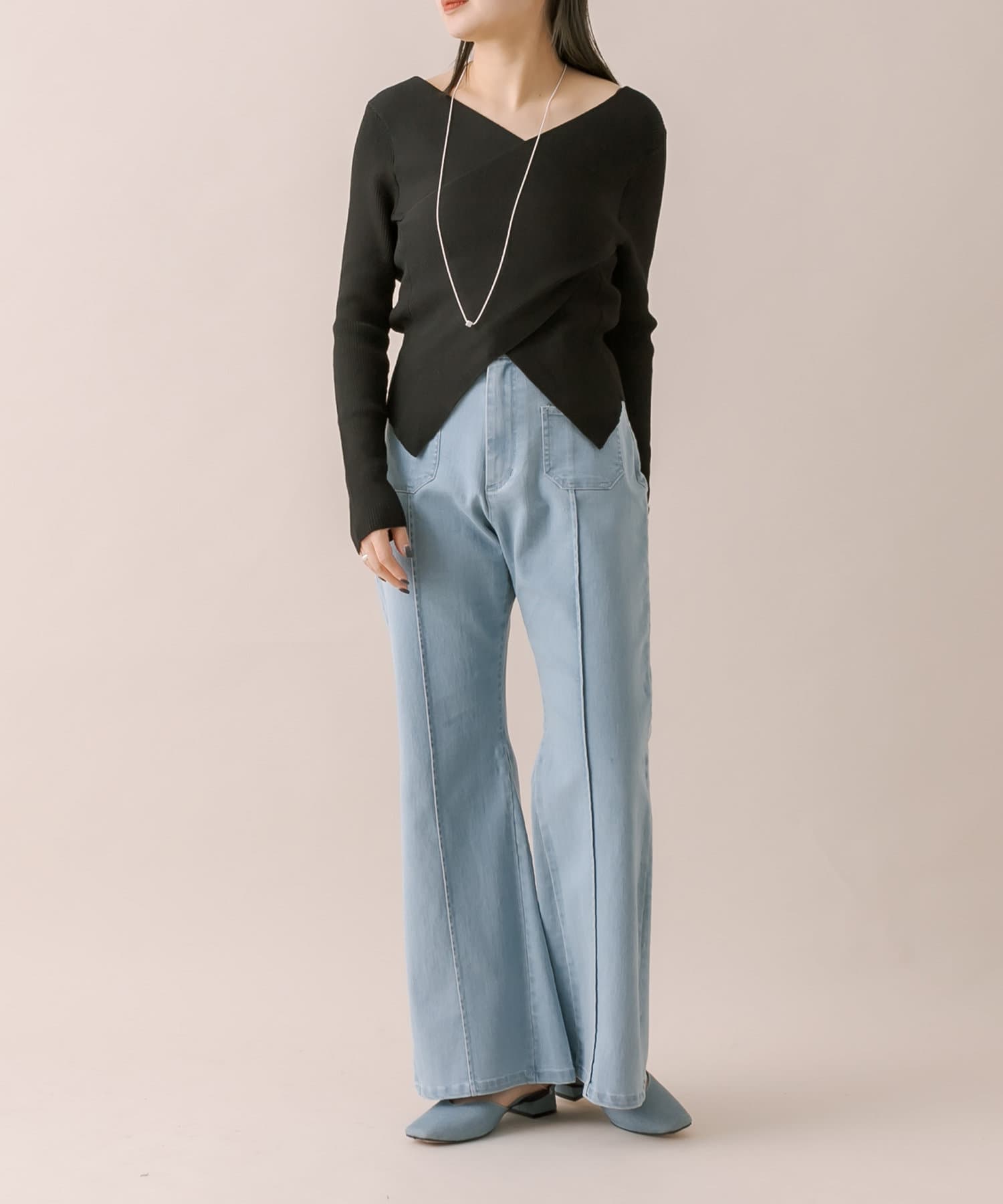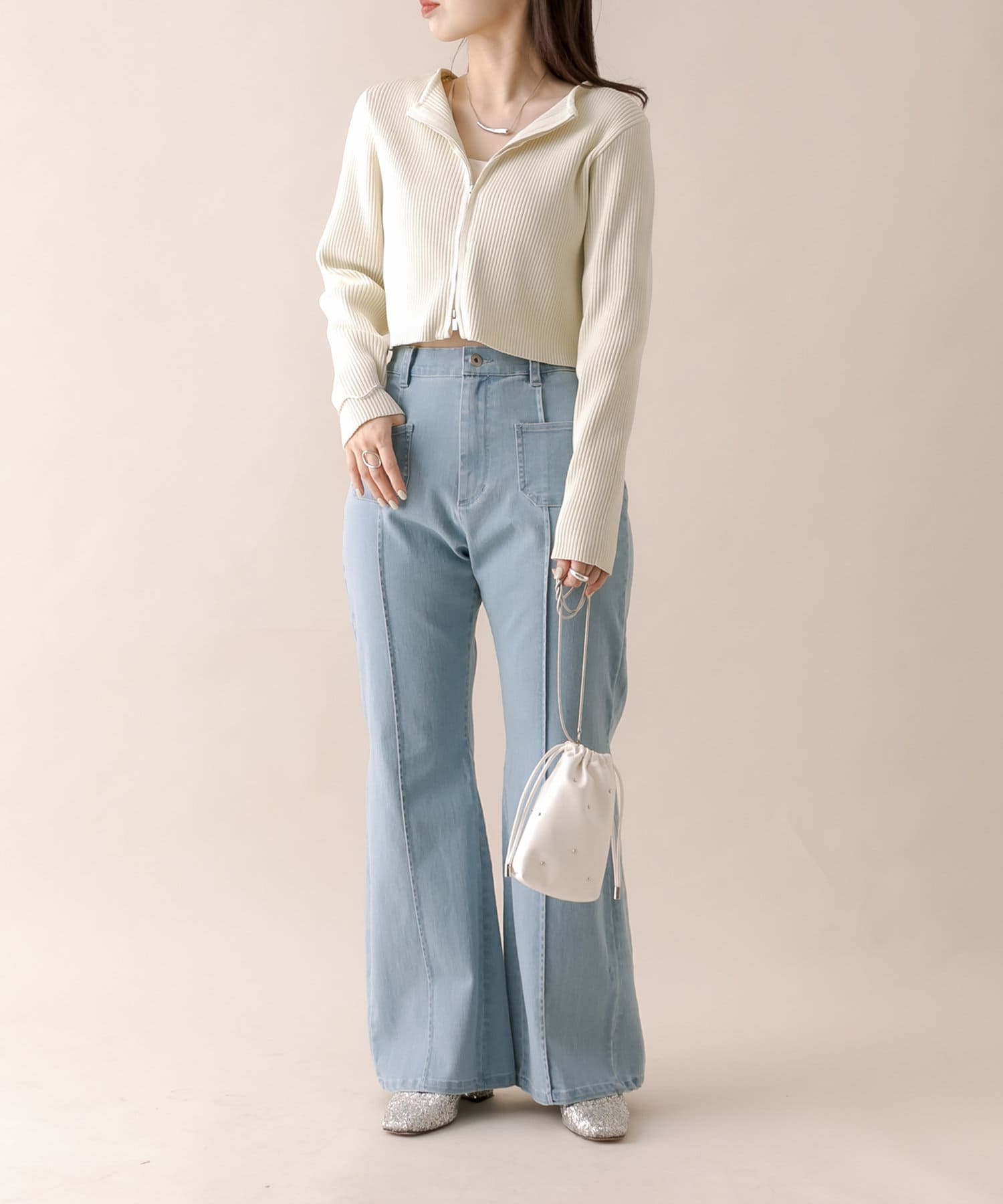 ・伸縮性のあるストレッチ素材で履き心地抜群のフレアデニム。