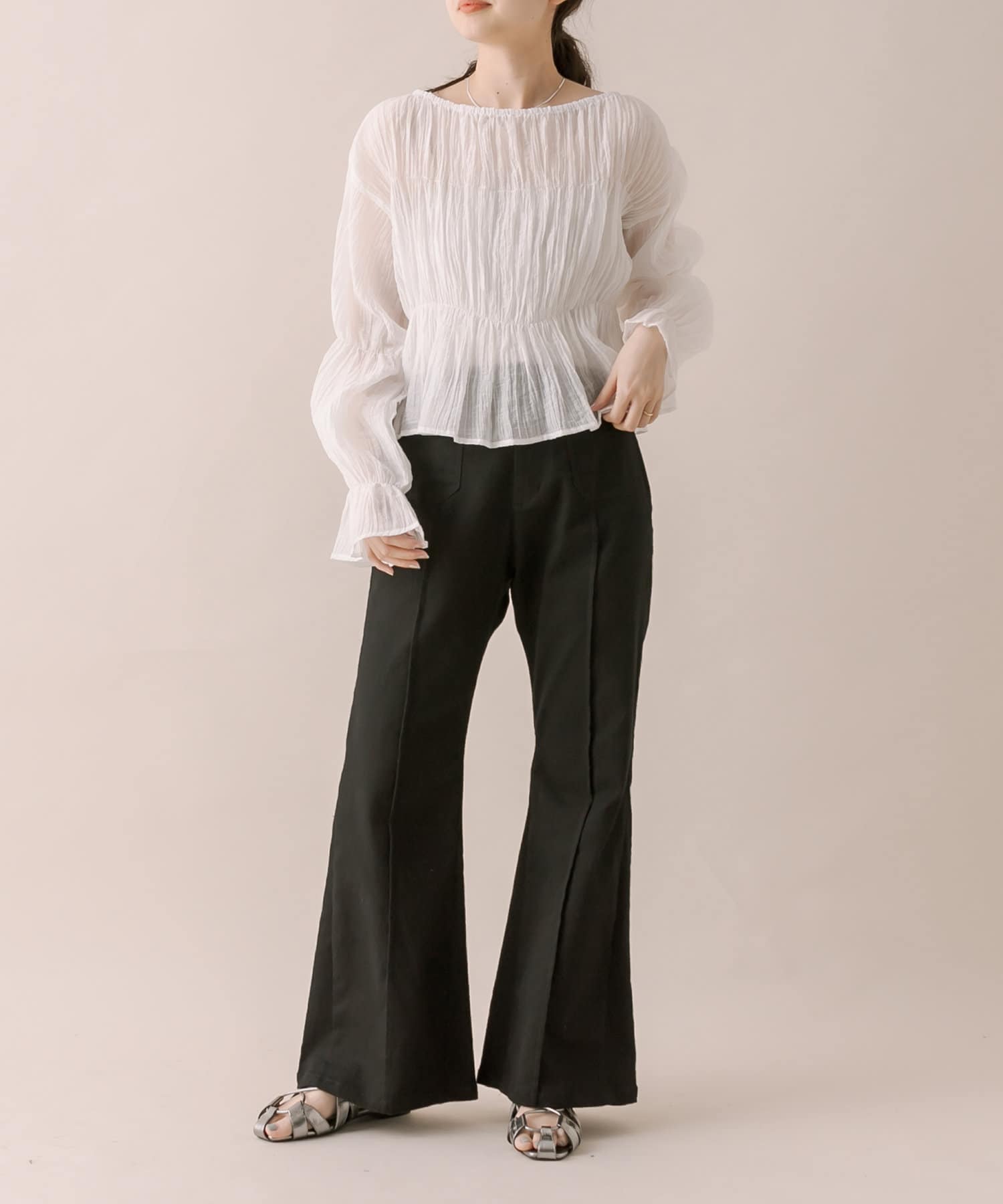 ・センタープレスが入っており、足のラインをよりすっきり見せてくれます。