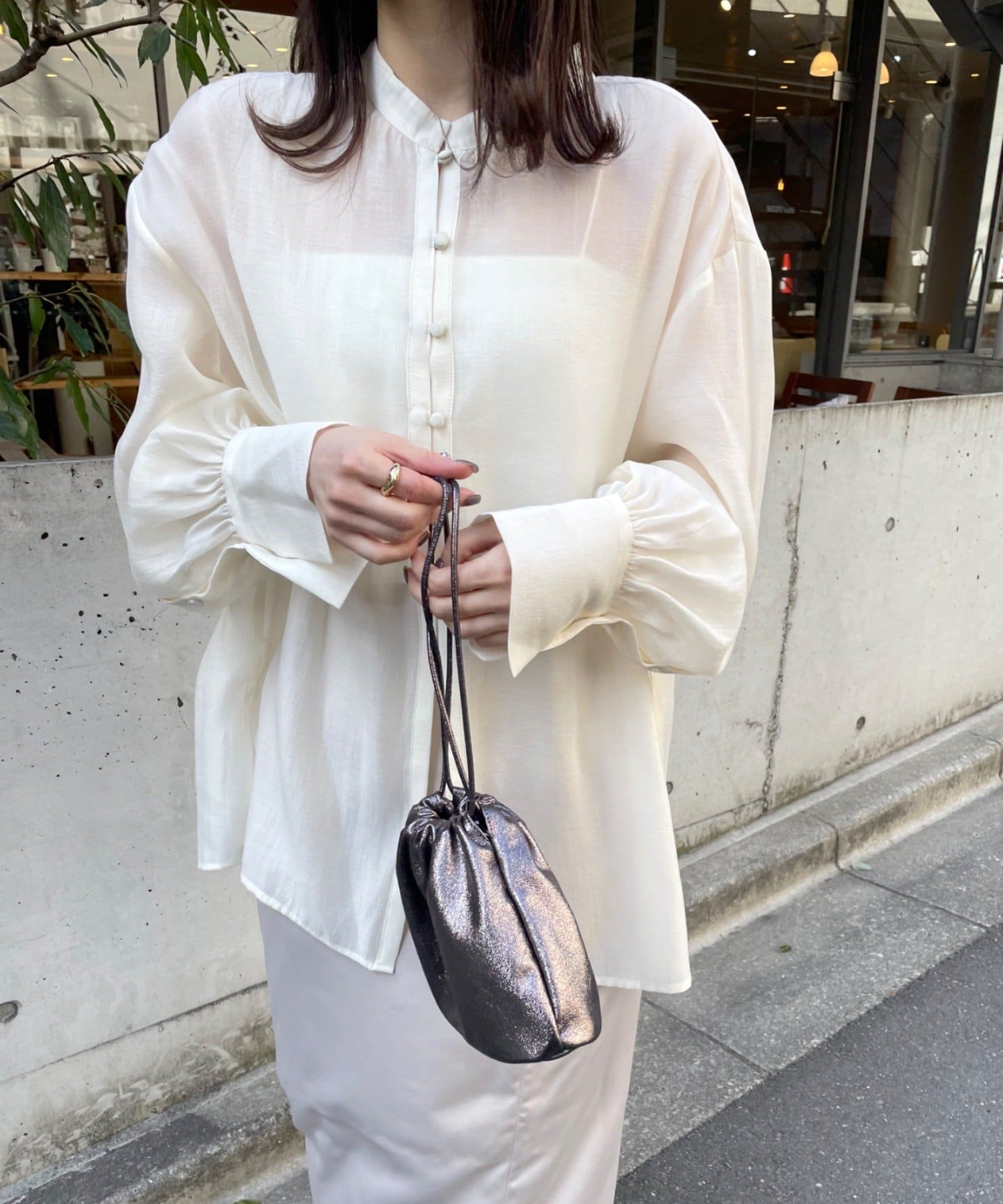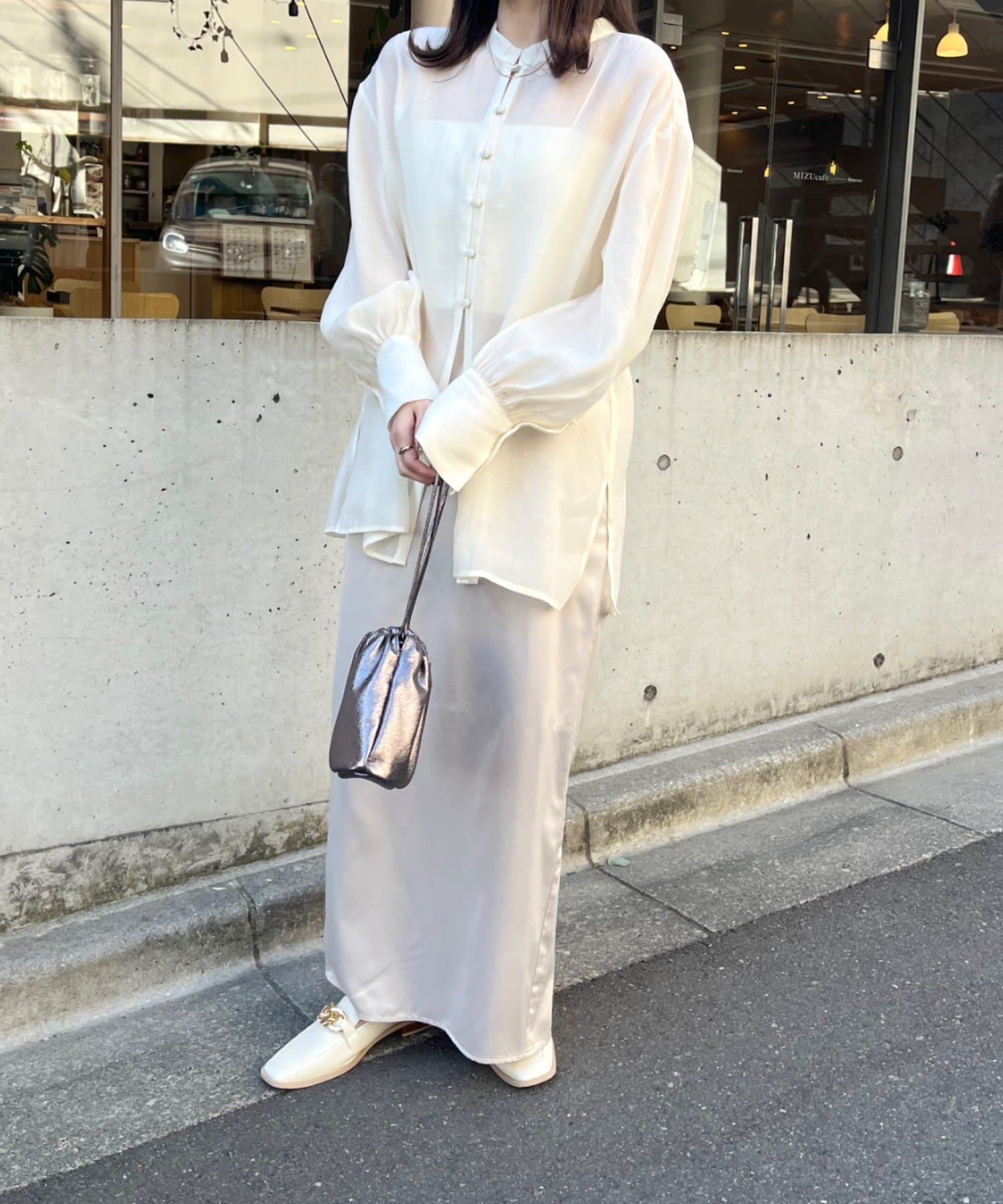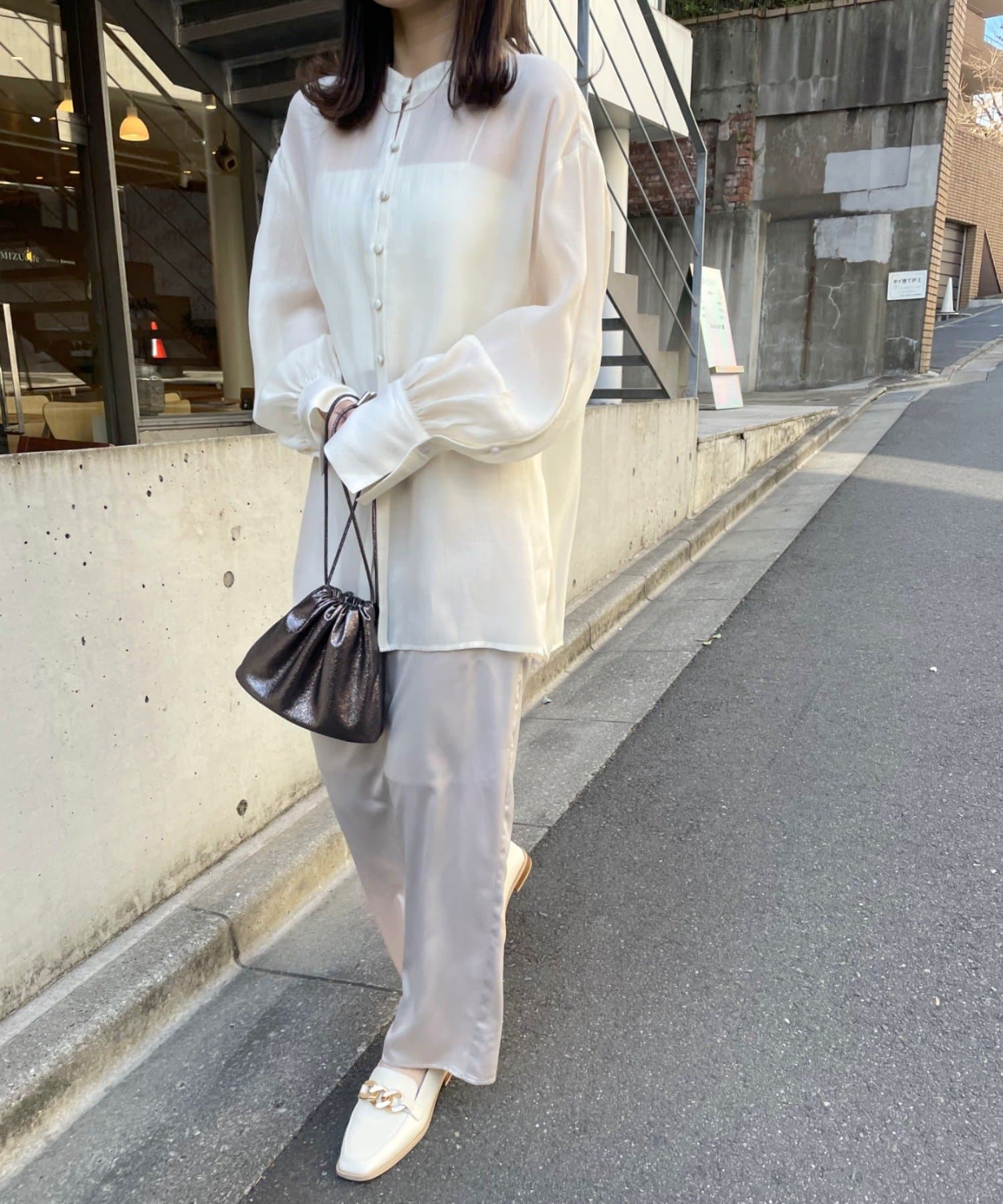 ・上品かつ洗練されたシアー素材がコーディネートに高級感を演出