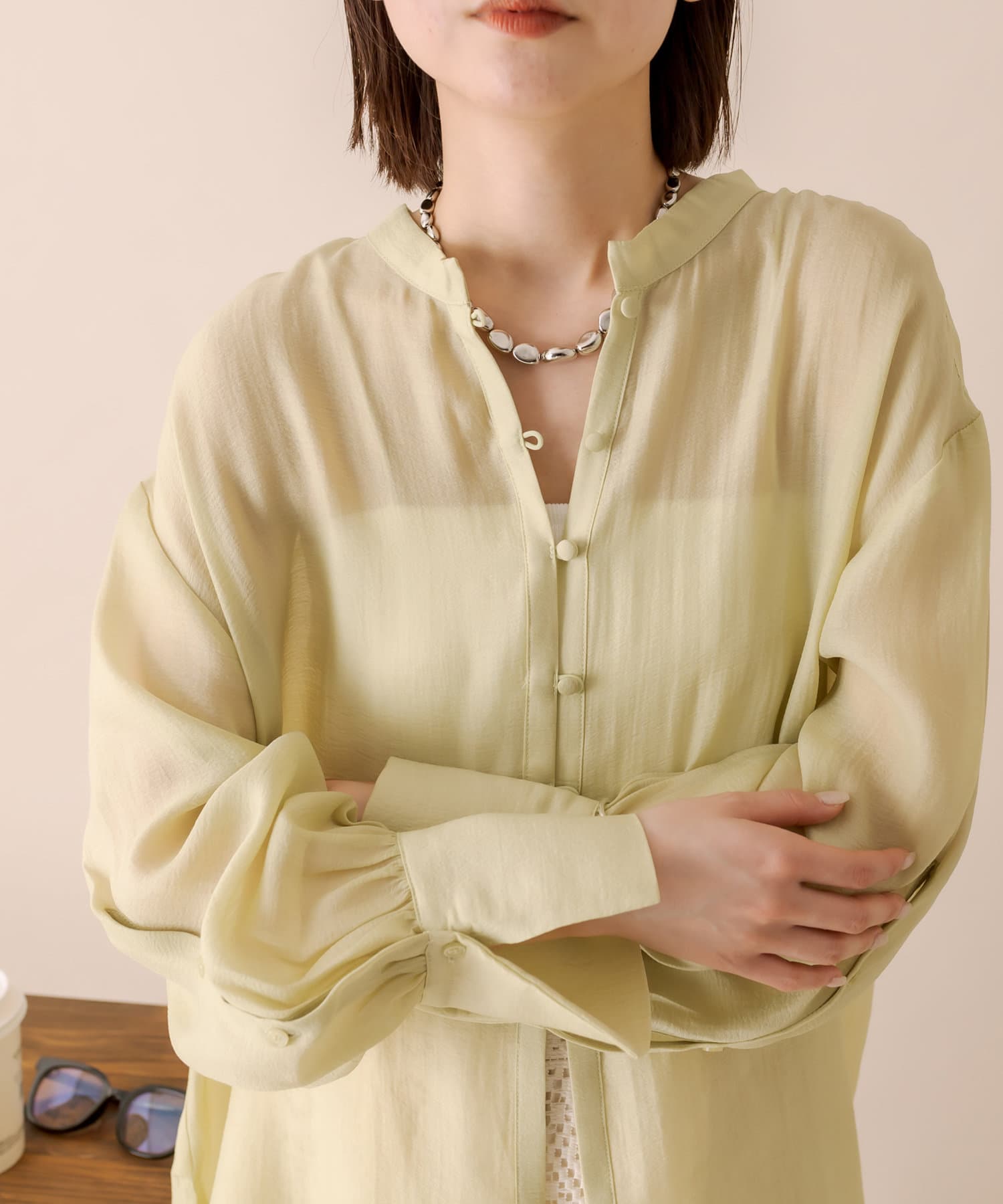 【大人気リバイバルアイテム】[mline]アームボタンシアーシャツ