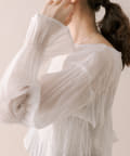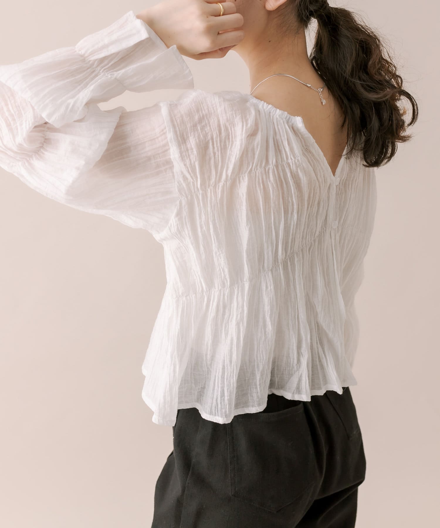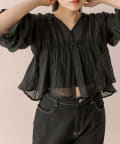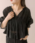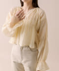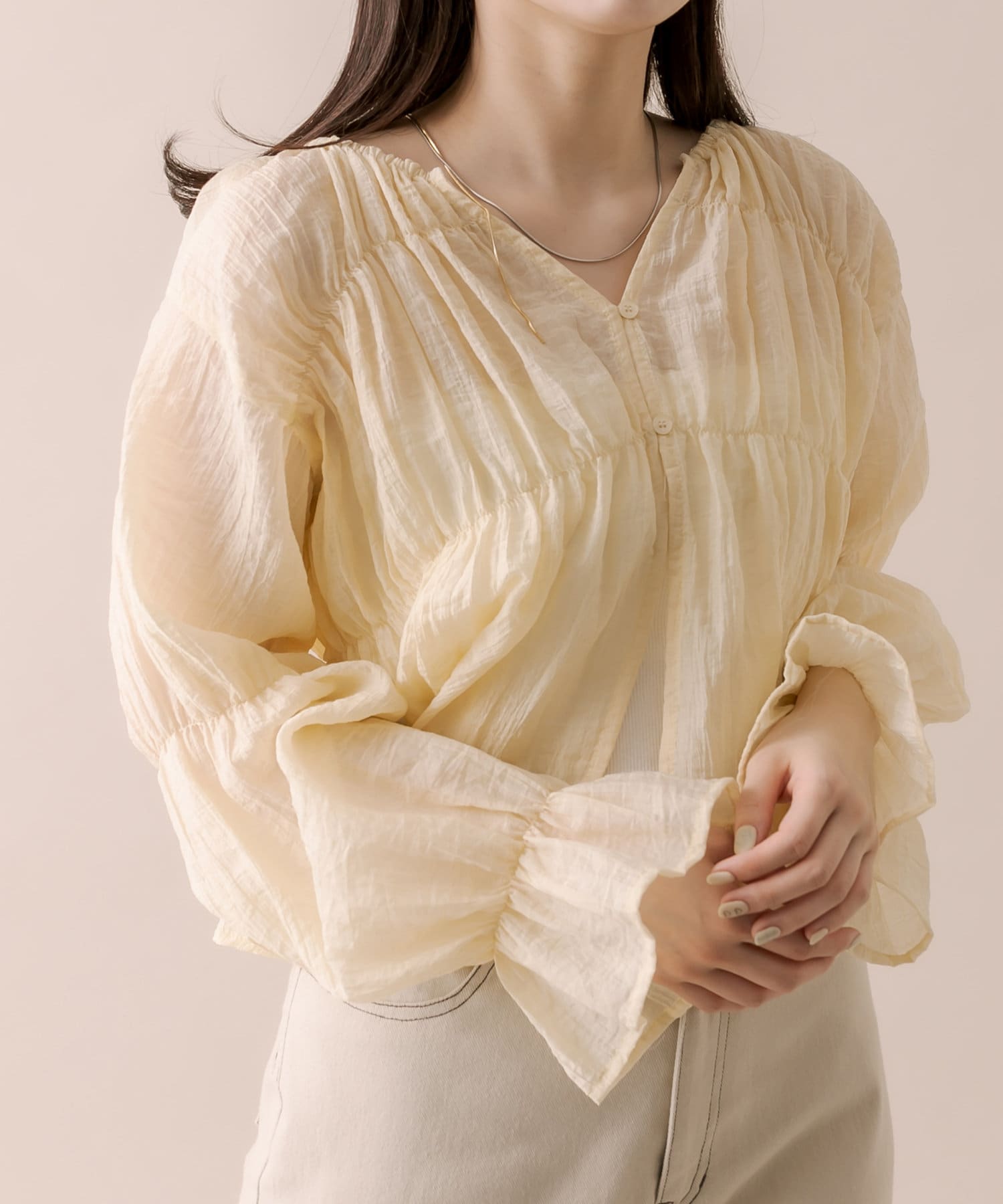 ・全体にギャザーがたっぷり入った春らしい華やかのブラウスが登場。