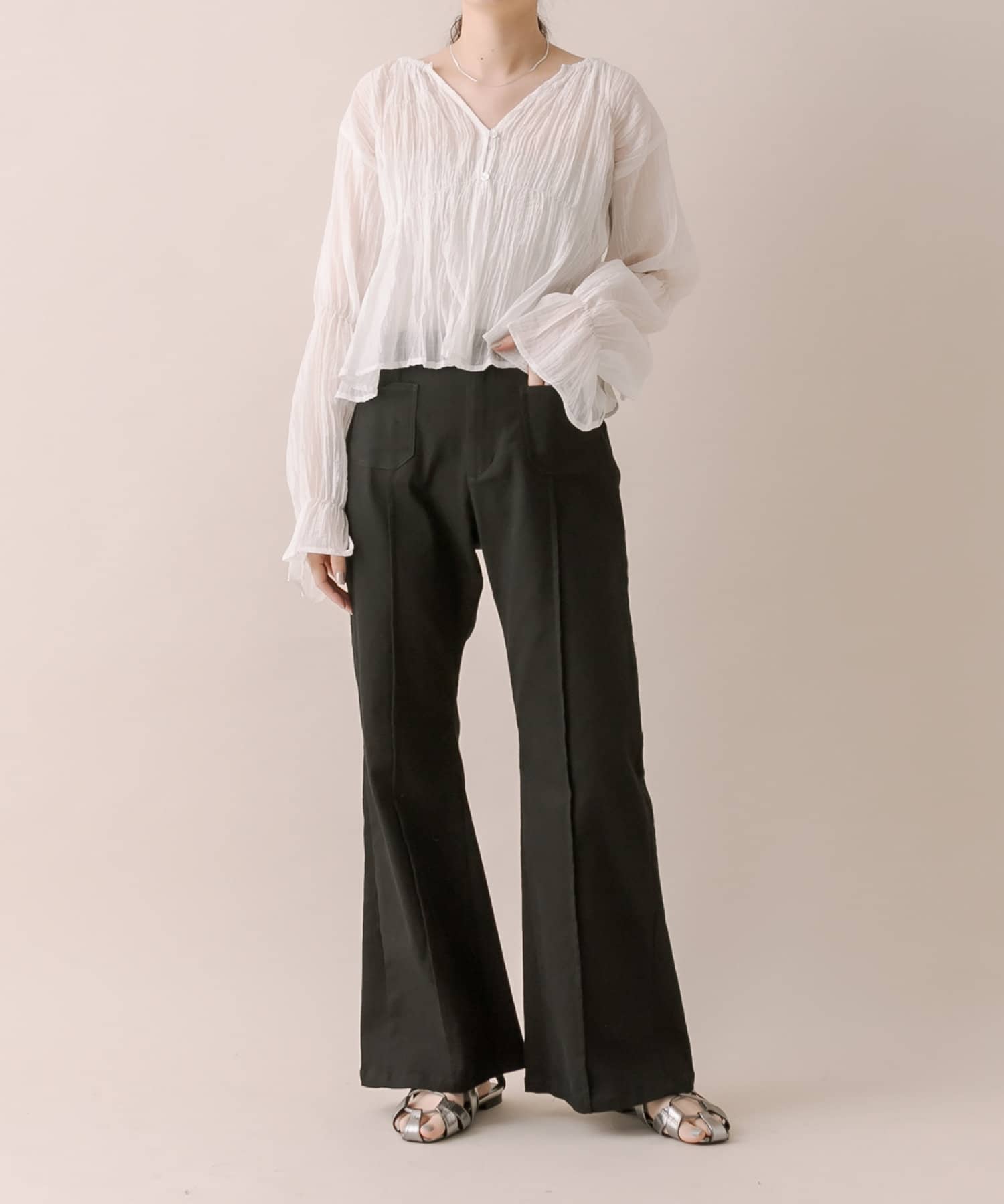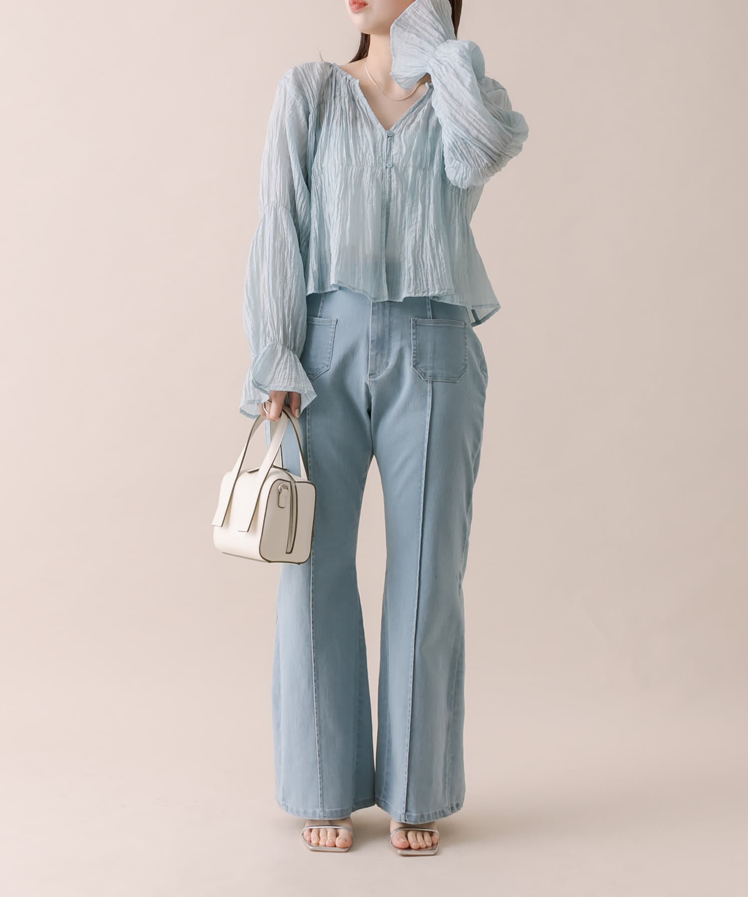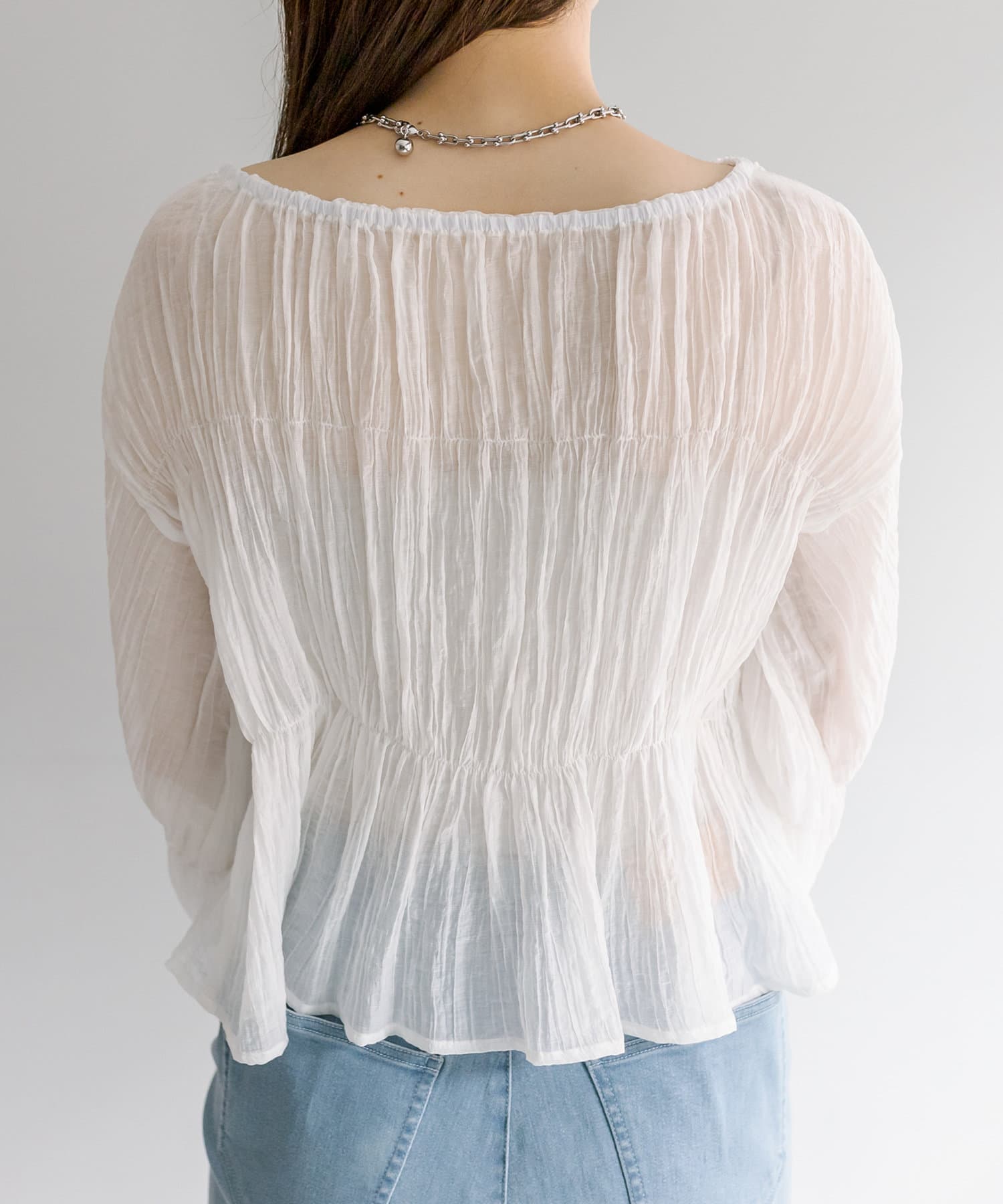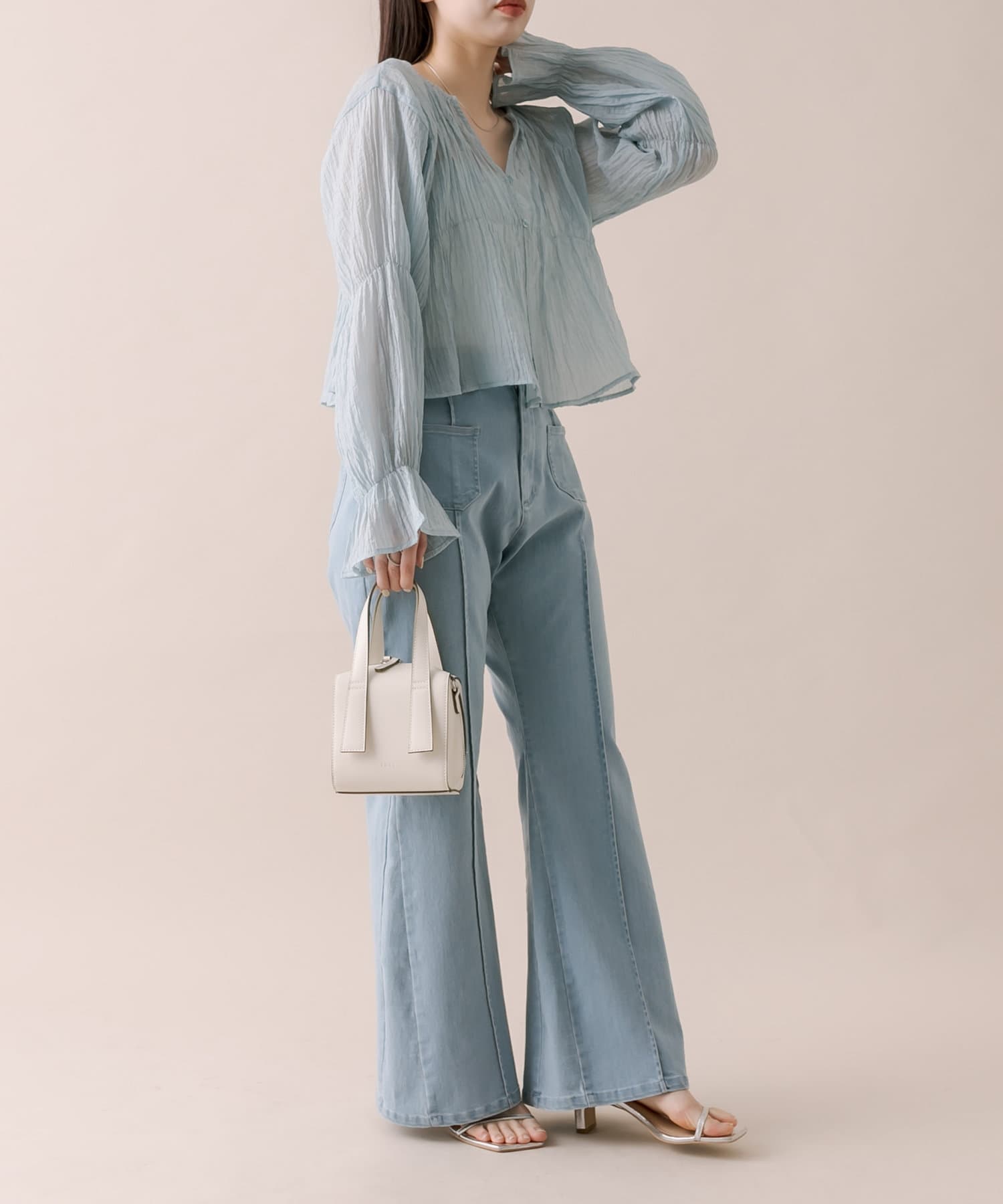 ・長めの袖感ですがシアー素材なので軽やかに着用していただけます。