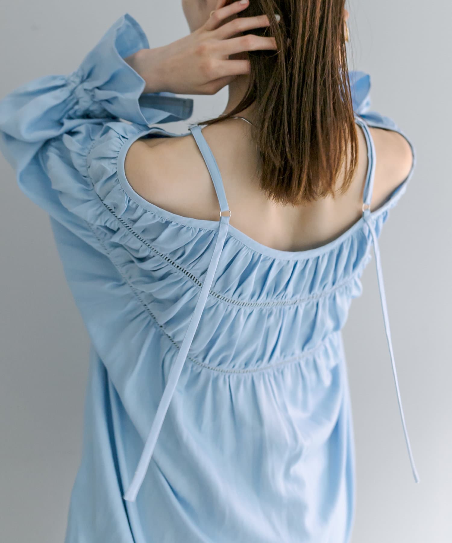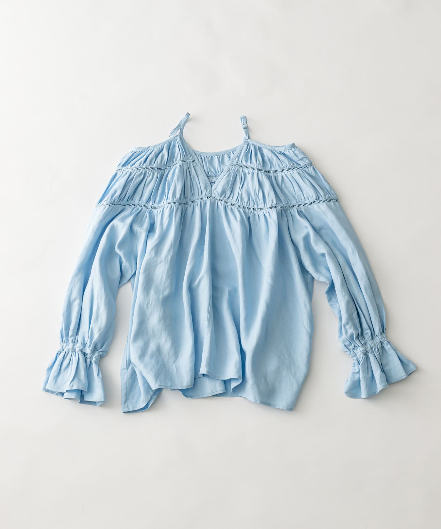 ・ハシゴレースとたっぷりのギャザーが入ったボリュームブラウス。