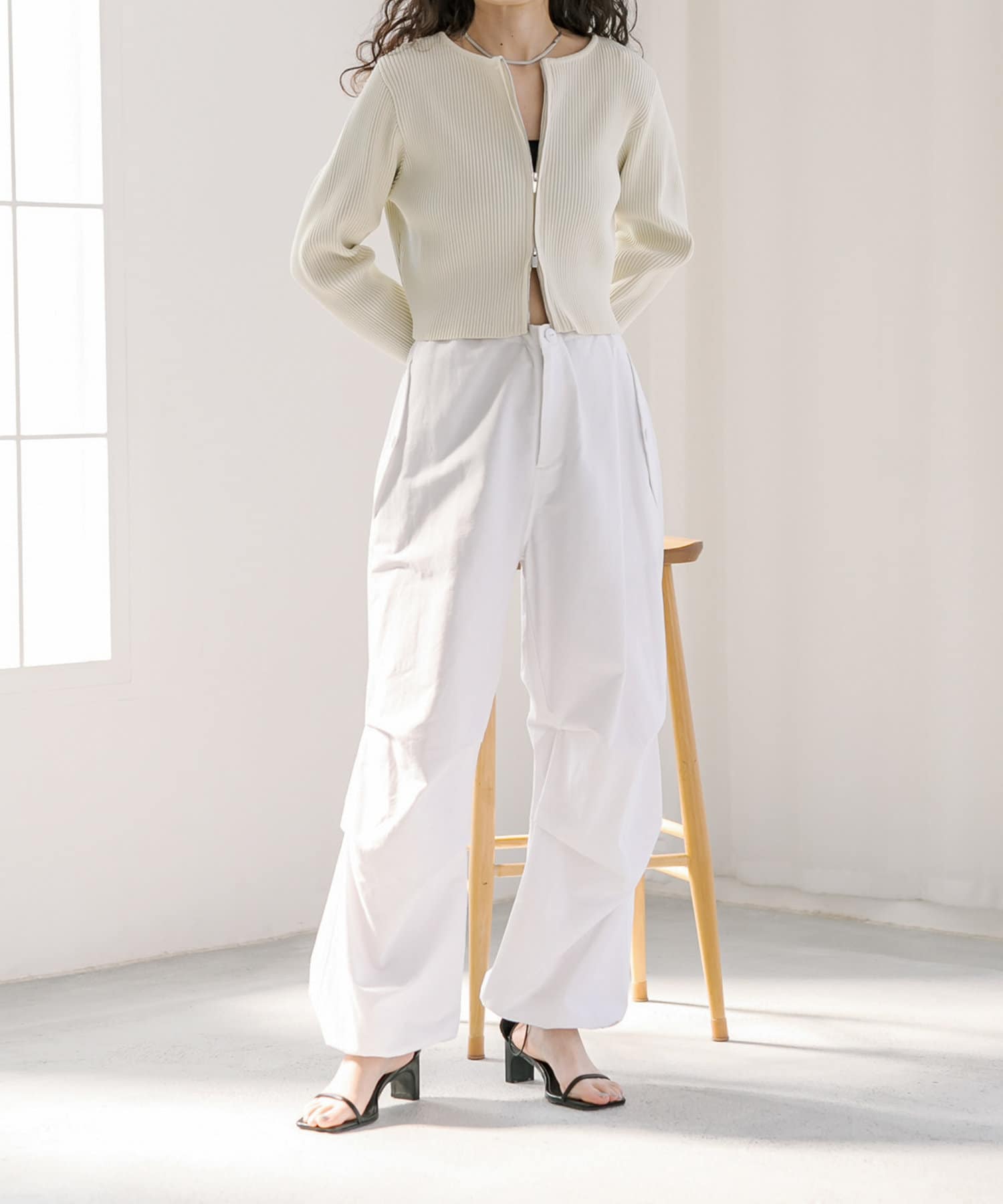 購入場所:パルクローゼット丈が短めで、ワイドなボトムスに合わせやすい!ジップも可愛いです。