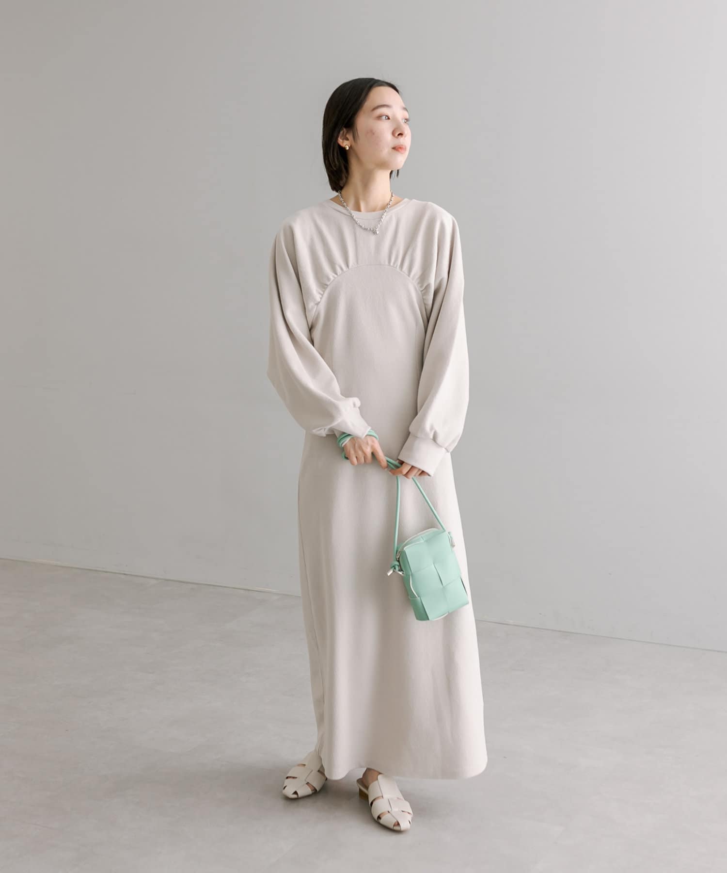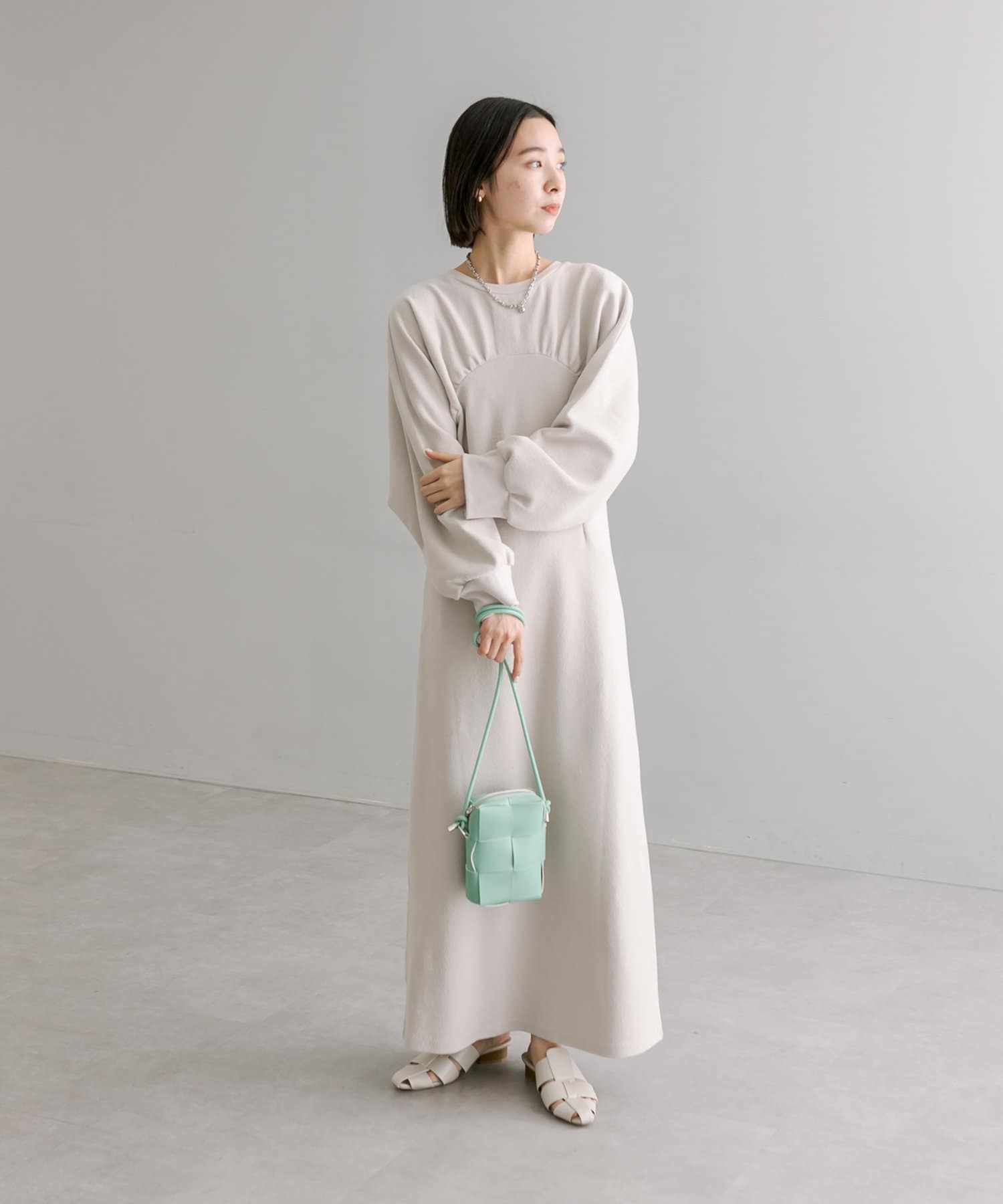 女性らしいボリューム感と切り替えデザインがポイントのワンピース