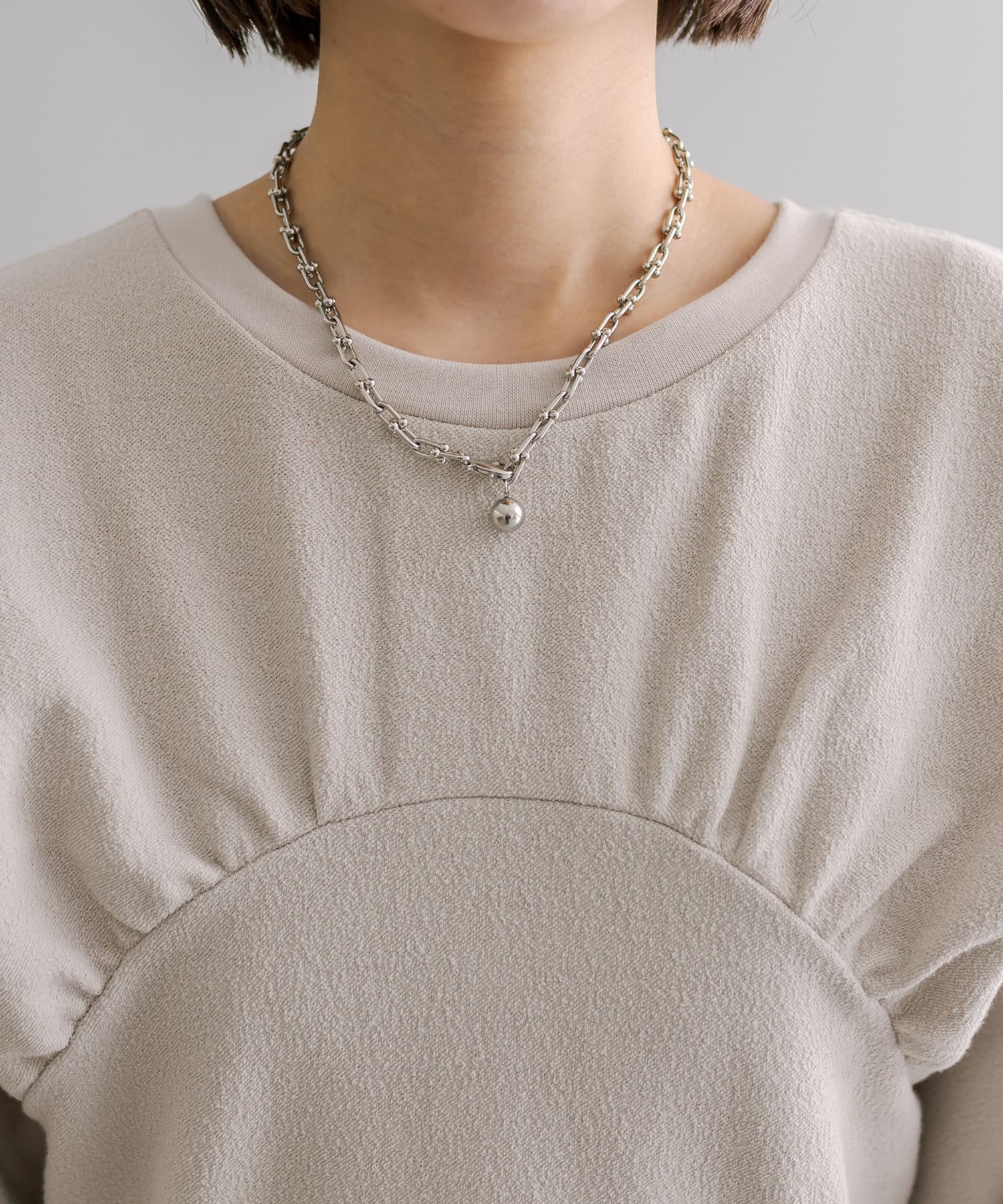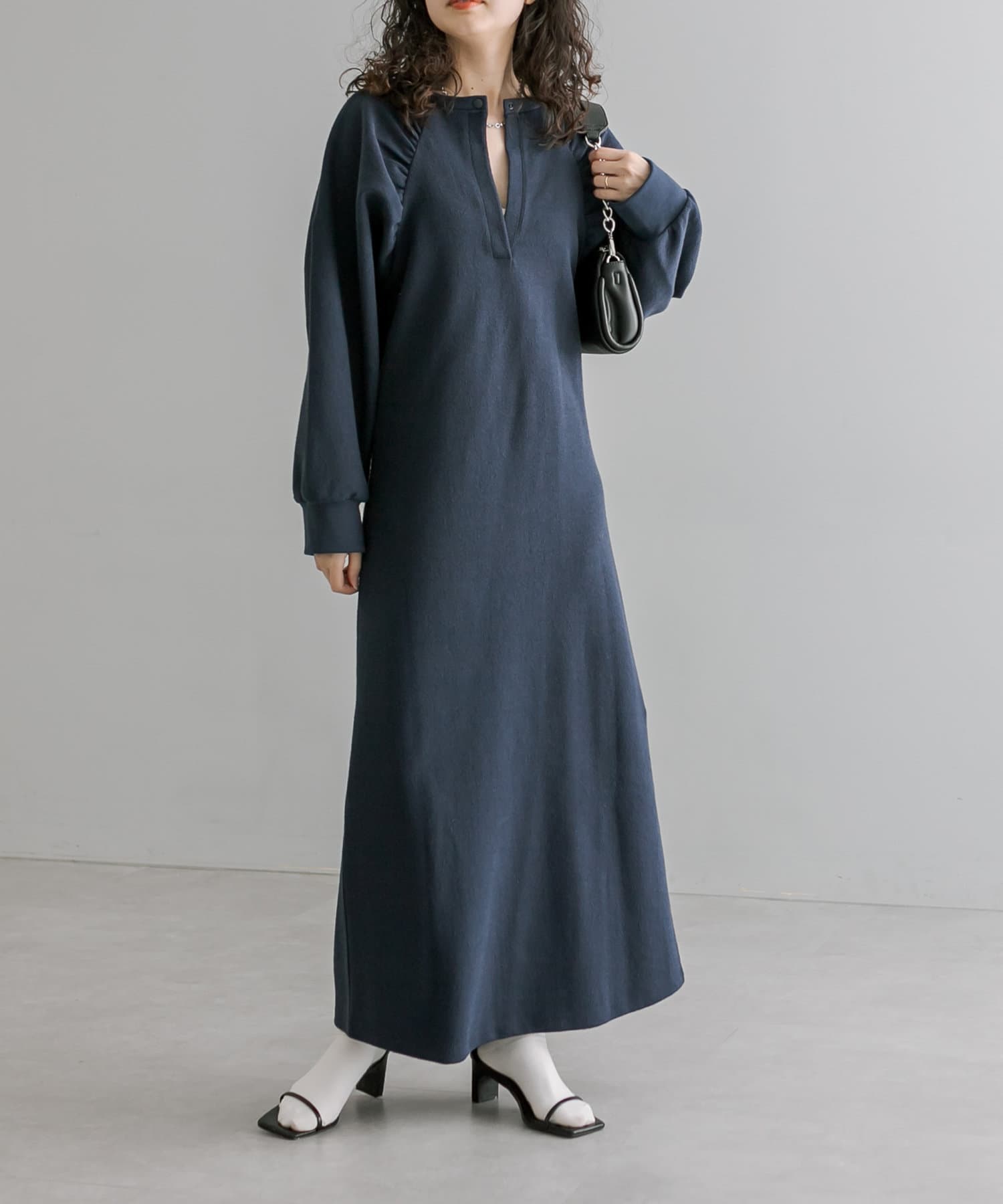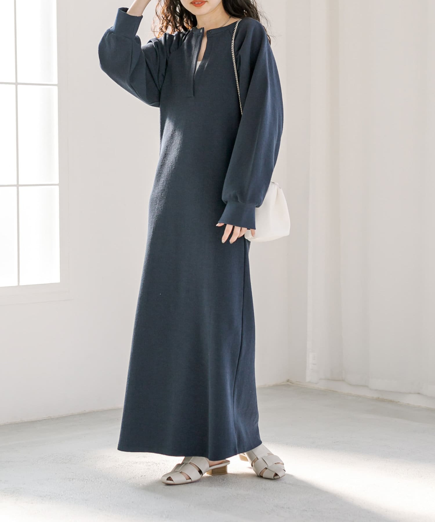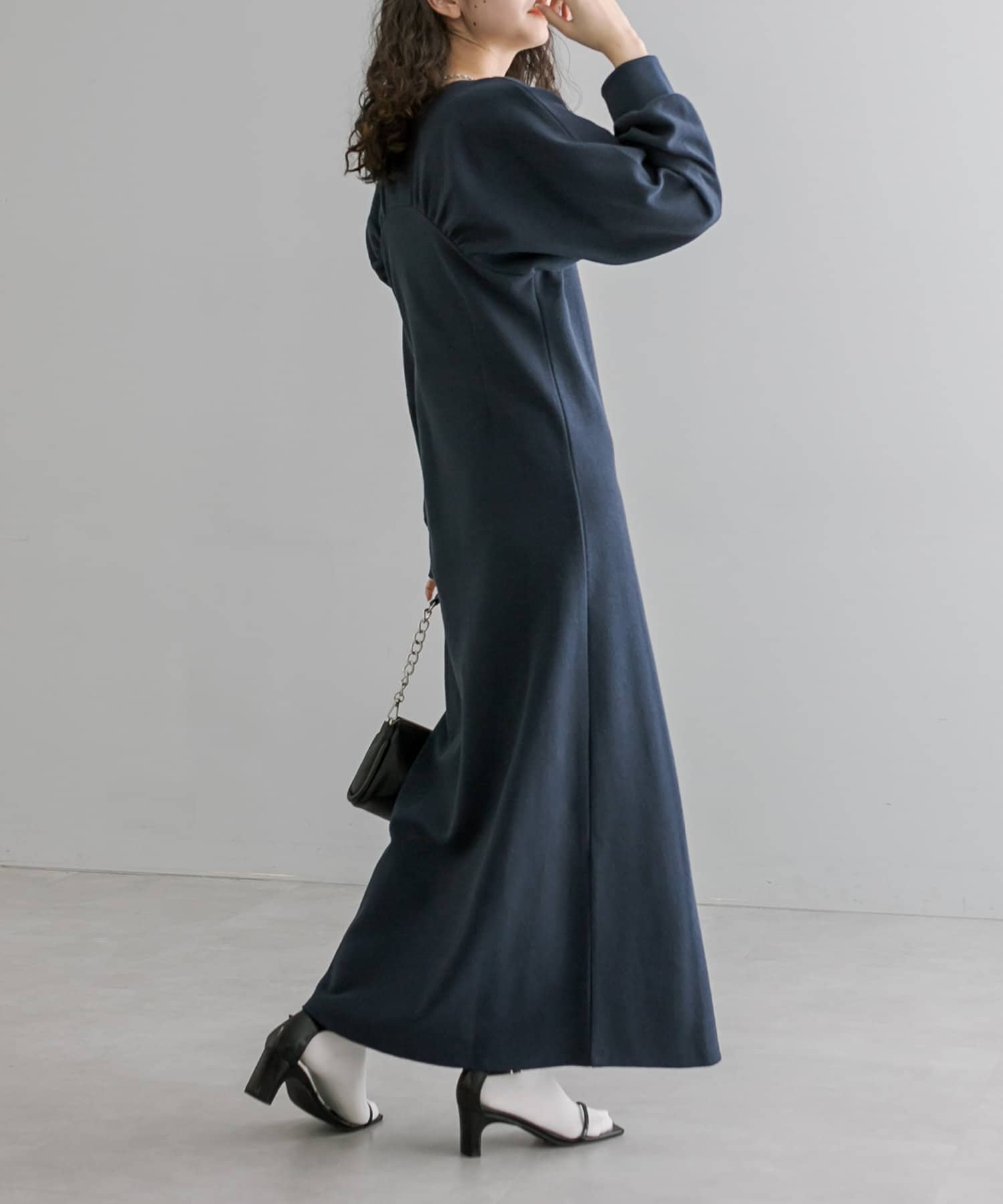 ・1枚でスタイリングが完成します。ロングネックレスを合わせて華やかさをプラス◎
