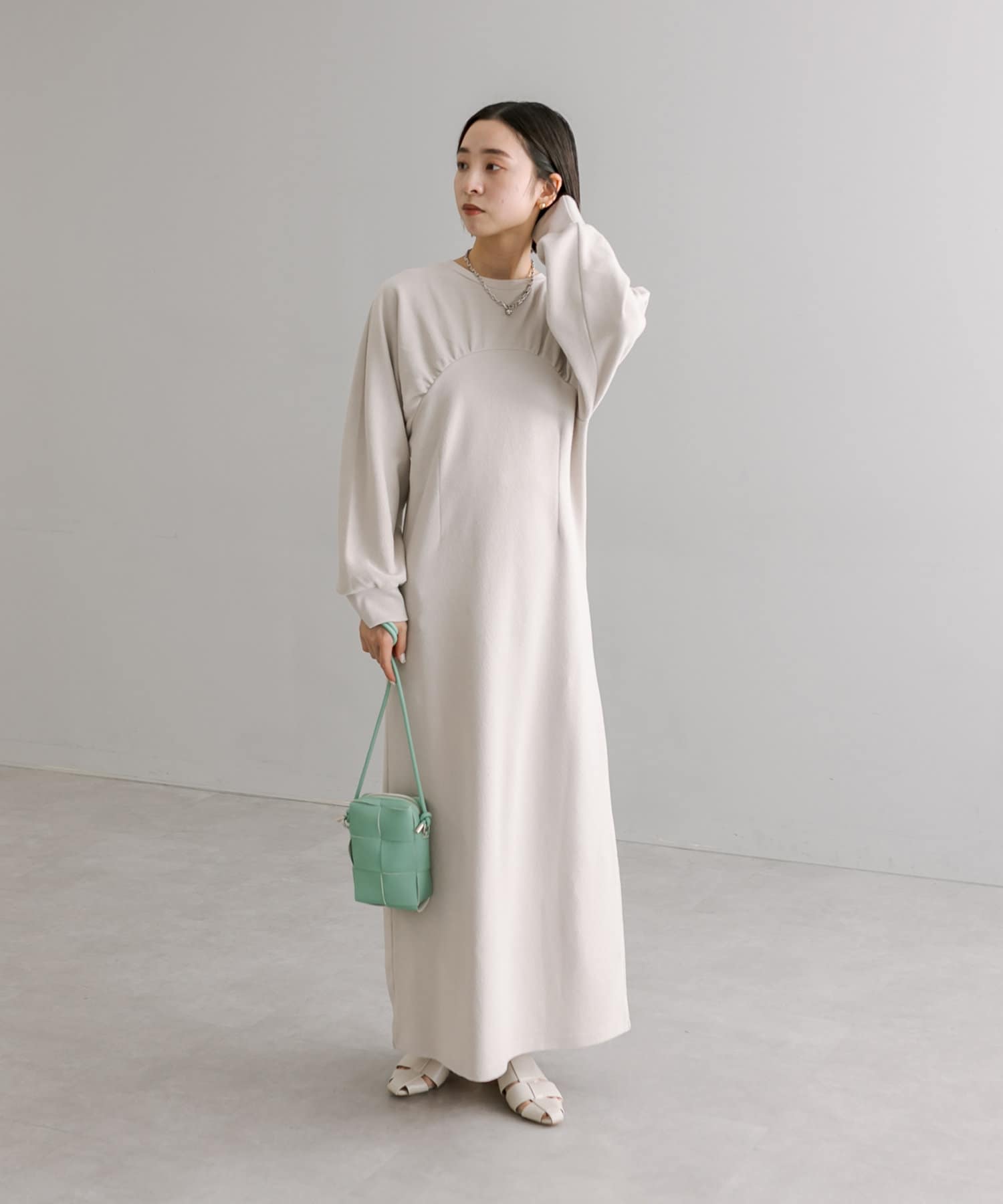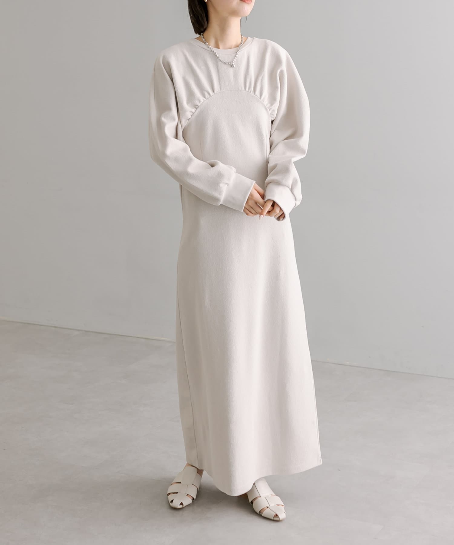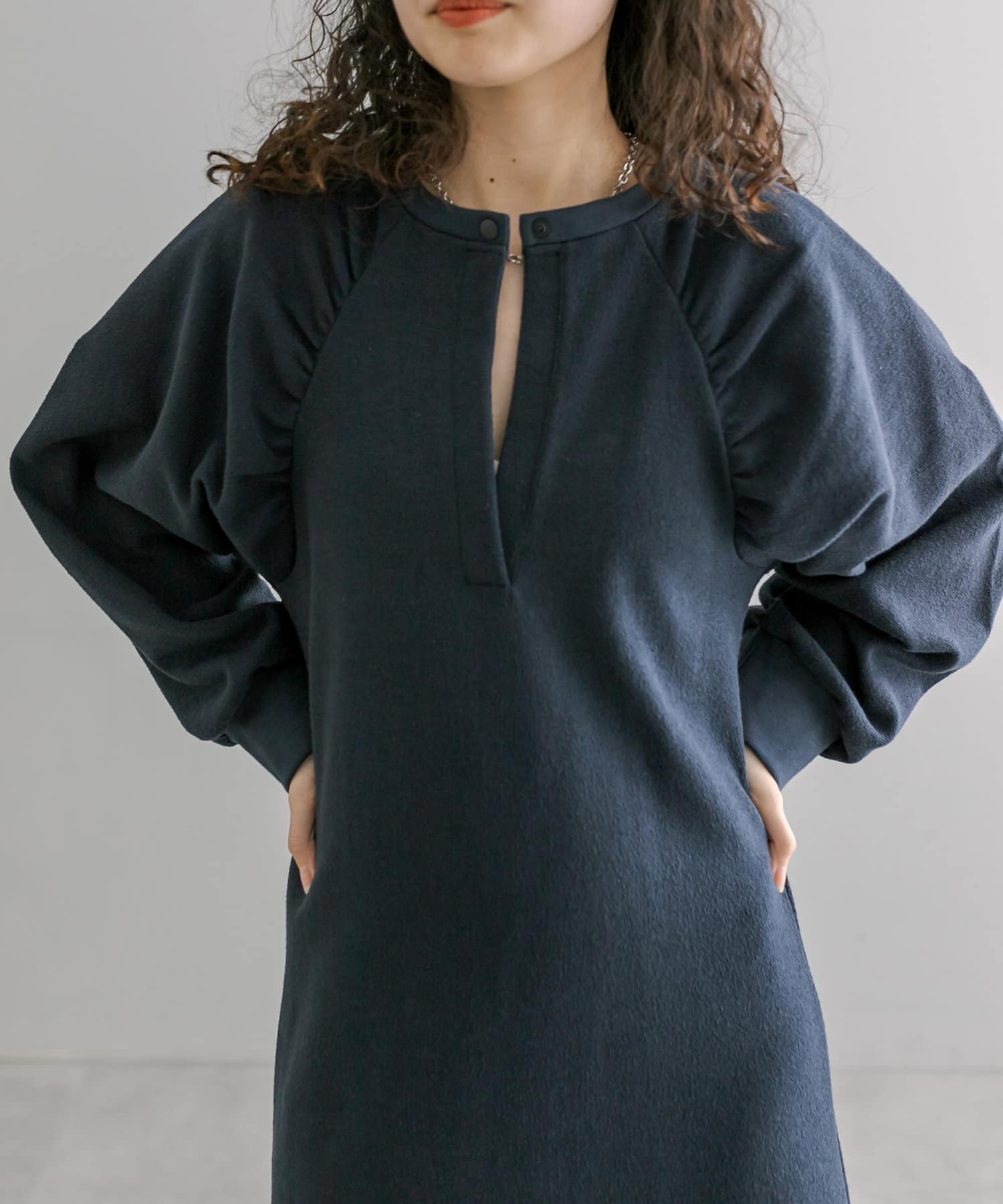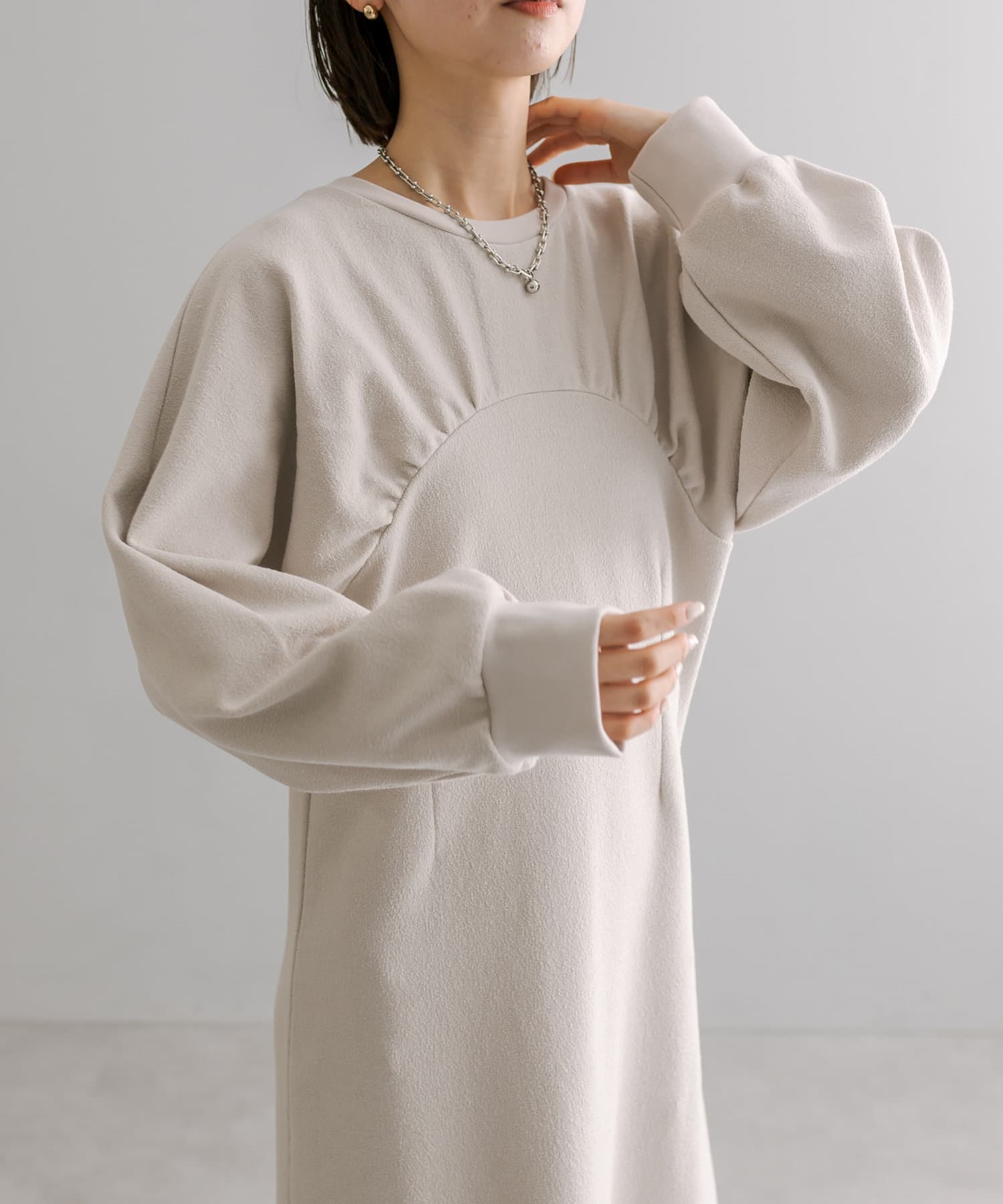 女性らしいボリューム感と切り替えデザインがポイントのワンピース