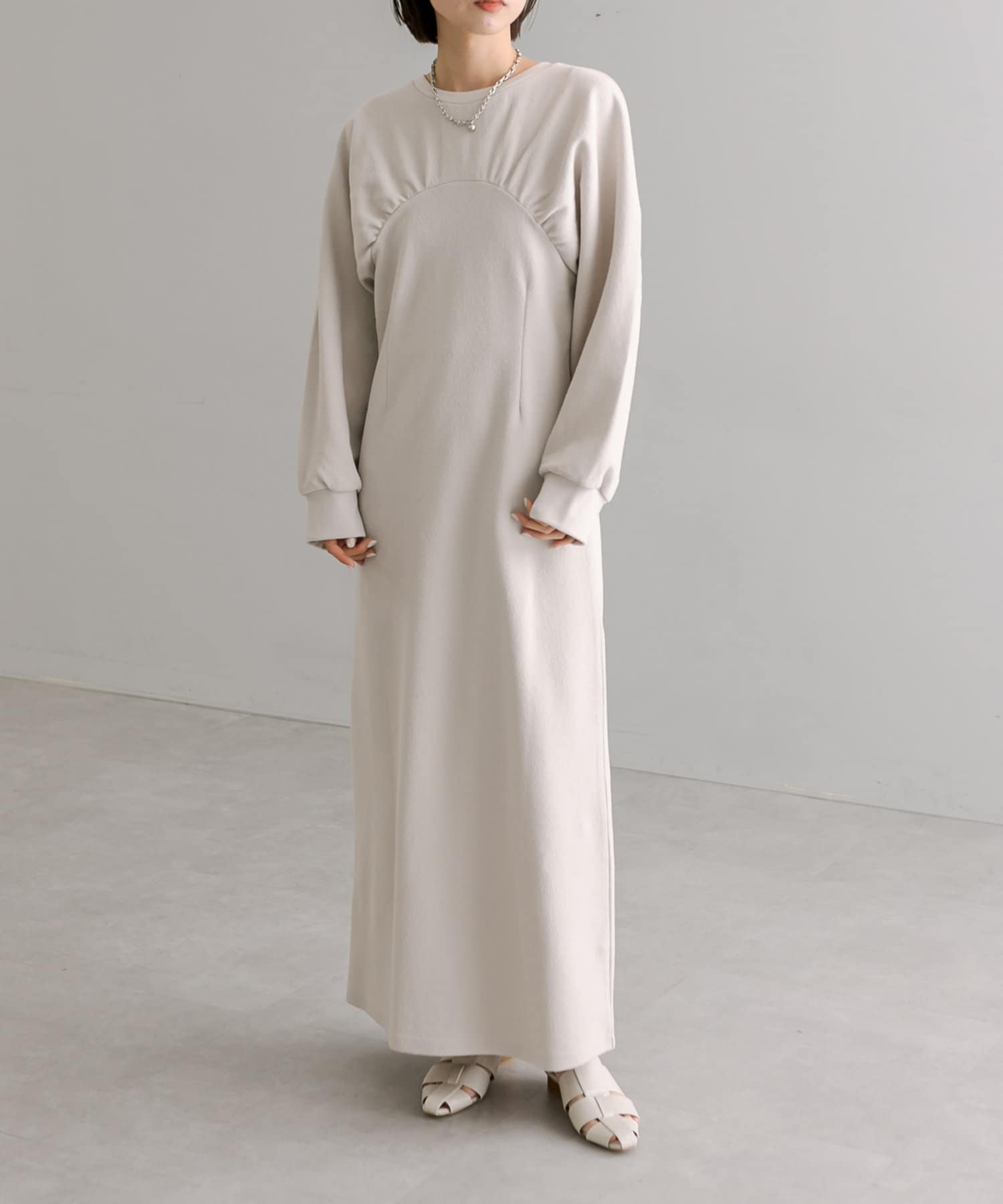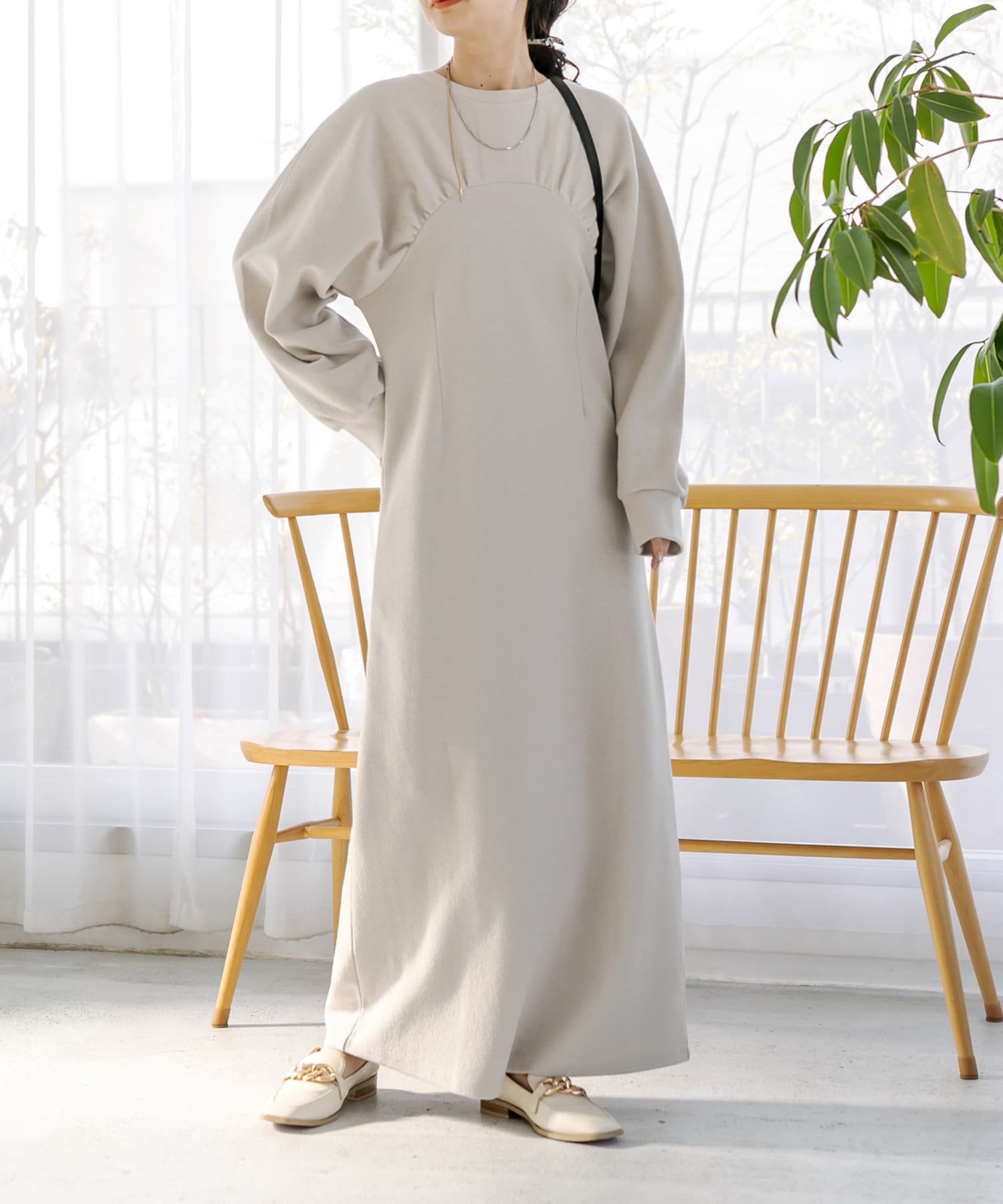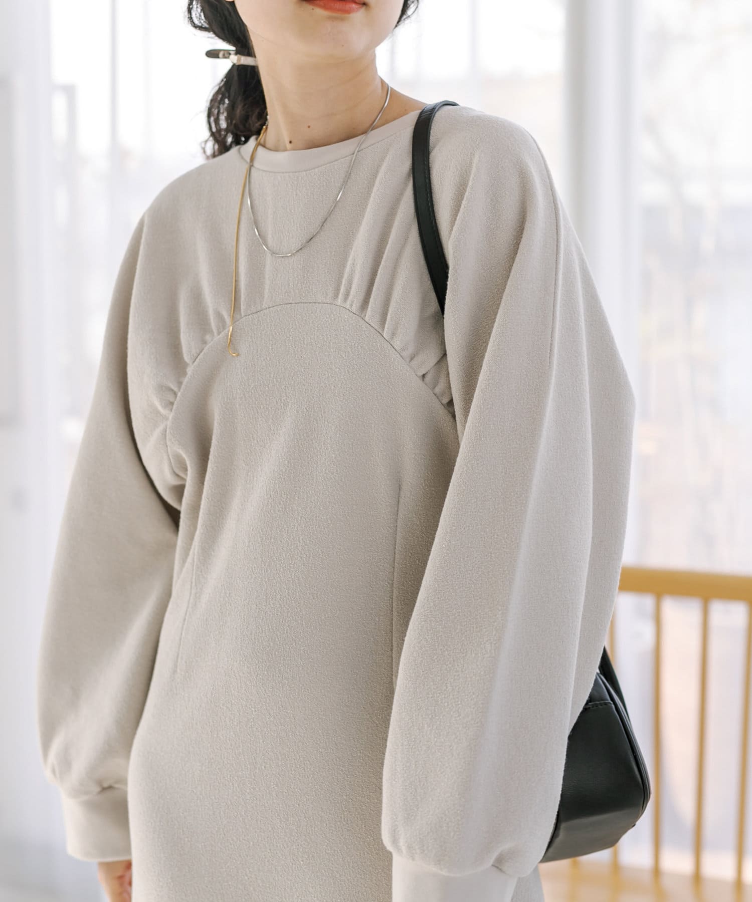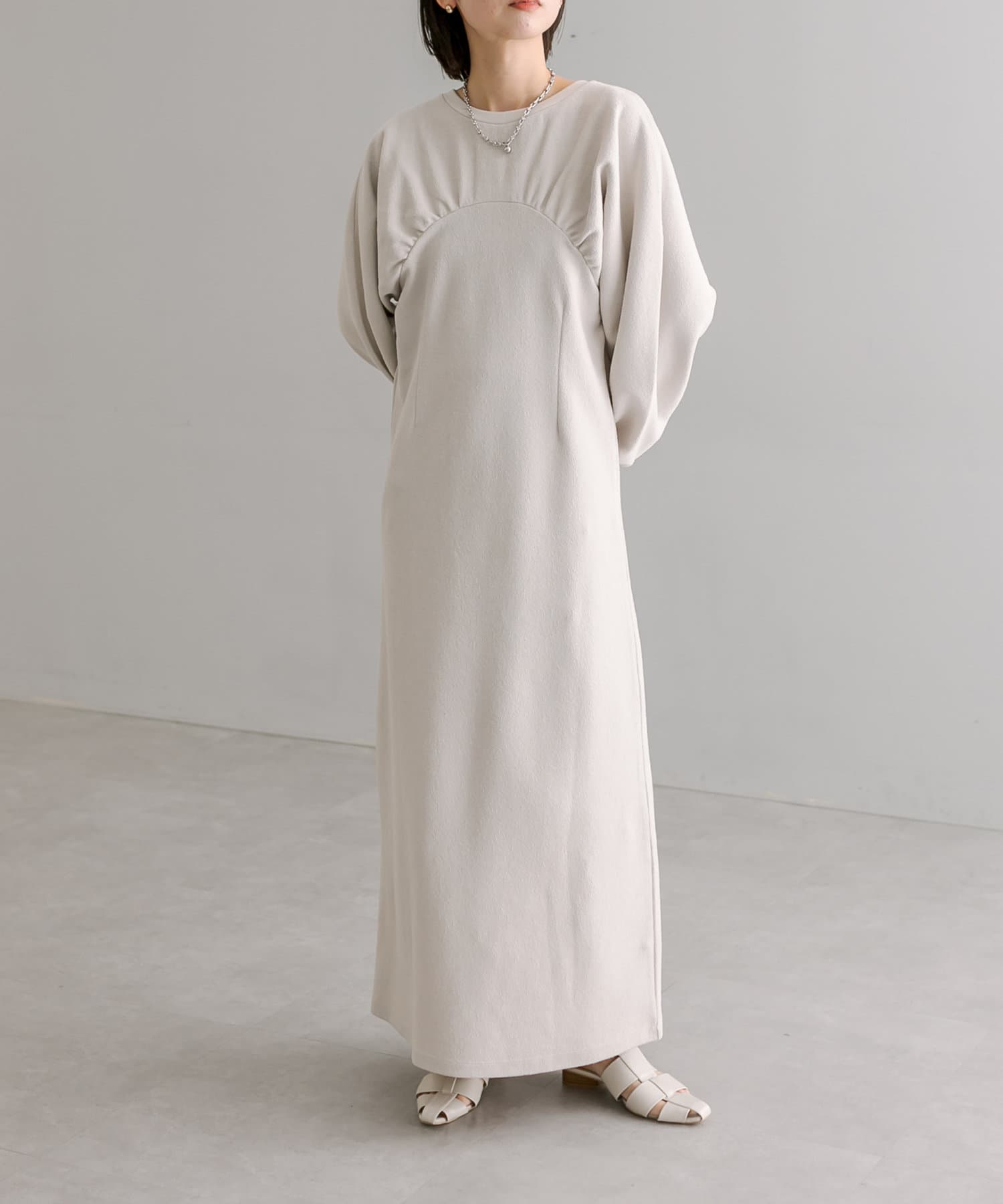 女性らしいボリューム感と切り替えデザインがポイントのワンピース