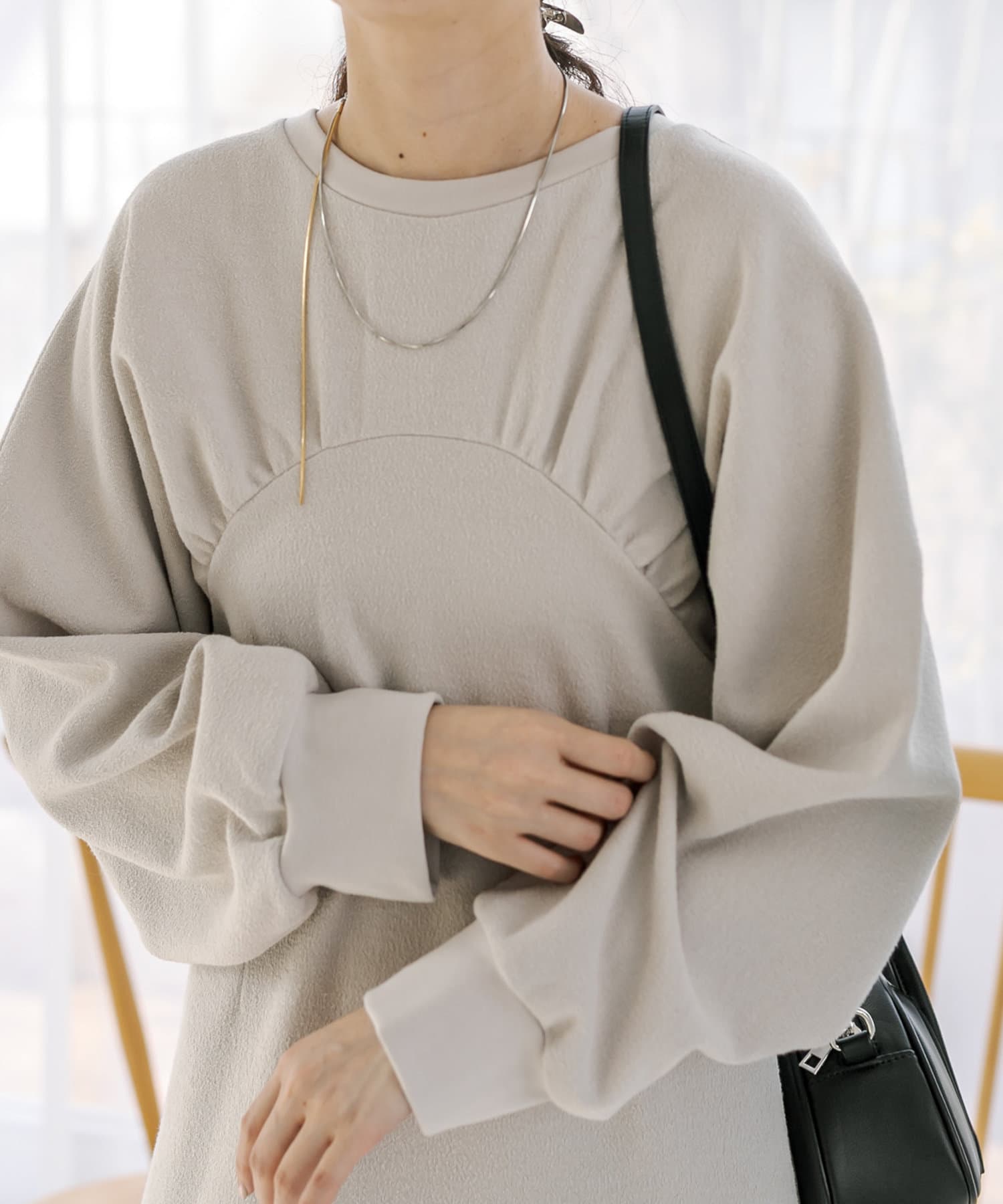 ・袖のボリューム感が女性らしい印象に。
