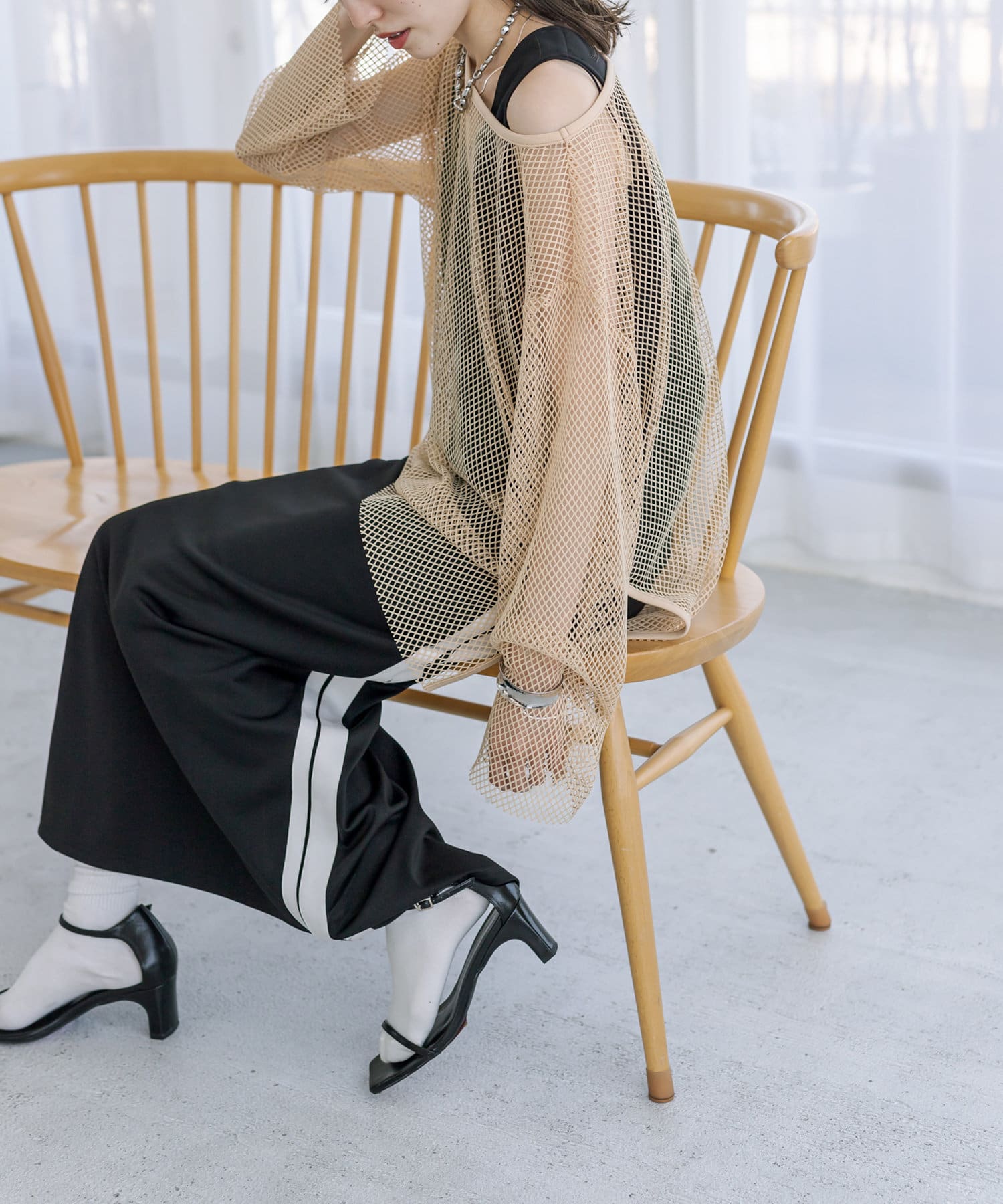 ・メッシュニットやチュールTOPSをレイヤードして頂くのも◎