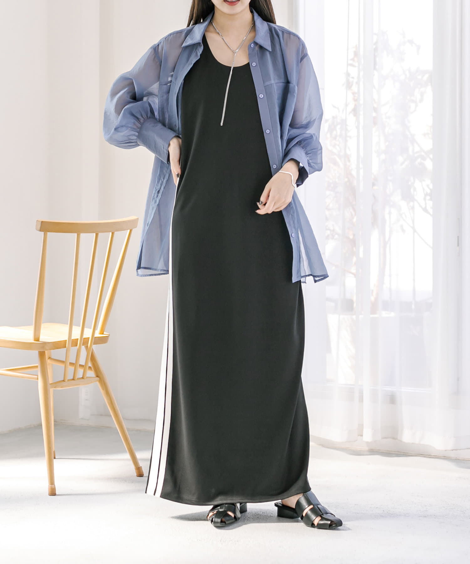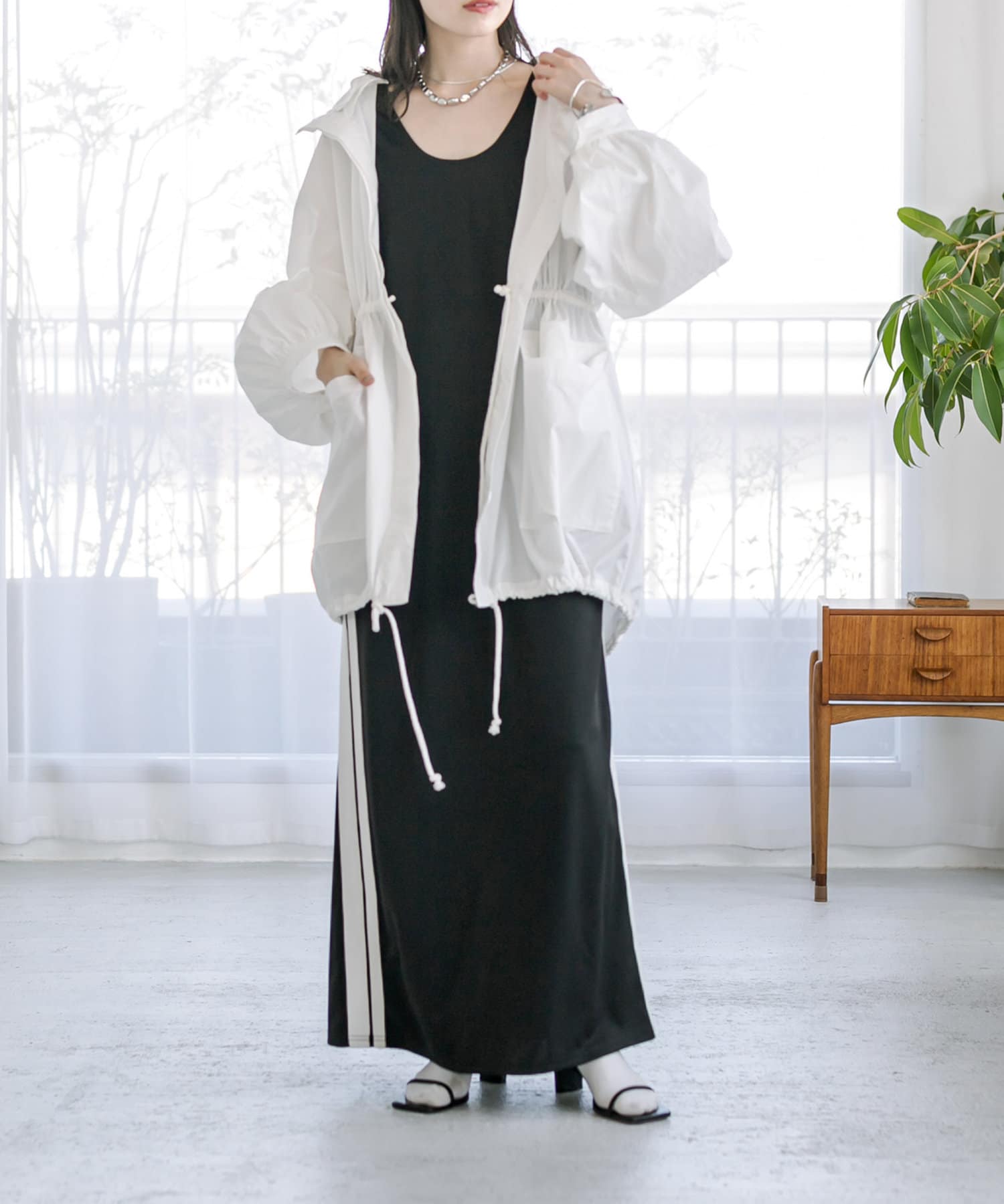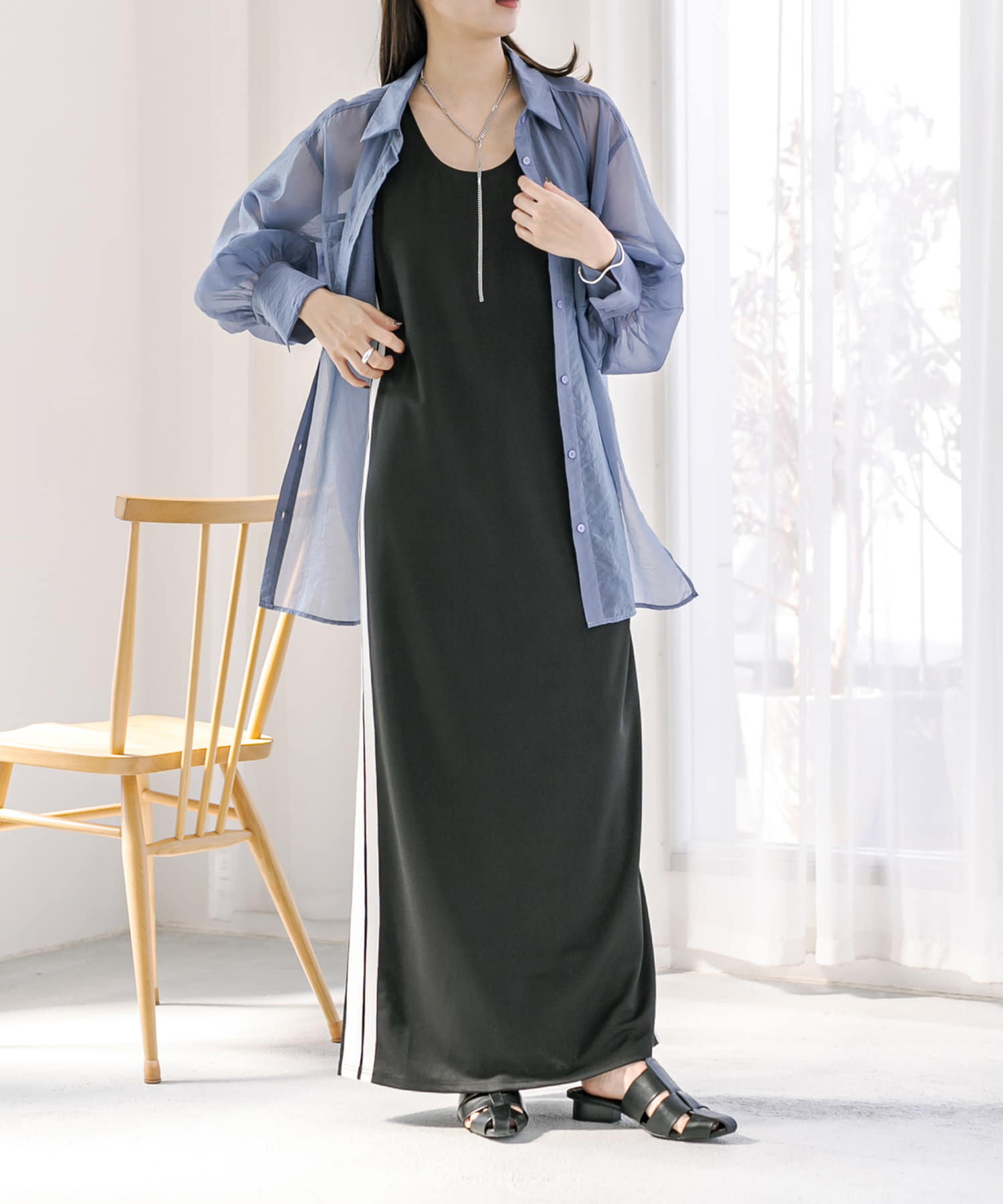 ・Ⅰラインで落ち感のあるシルエットがポイントのワンピース。