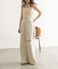 ・ハイウエストなのでクロップドトップスやショート丈カーディガンと相性抜群!