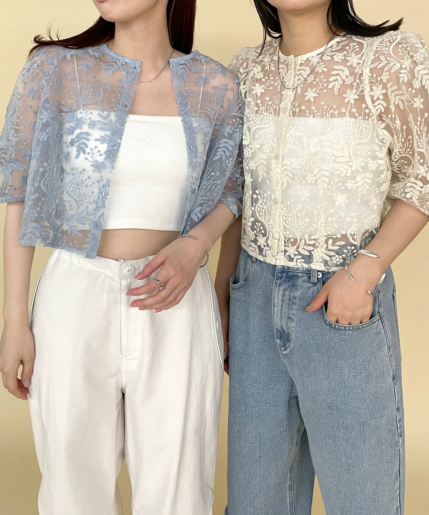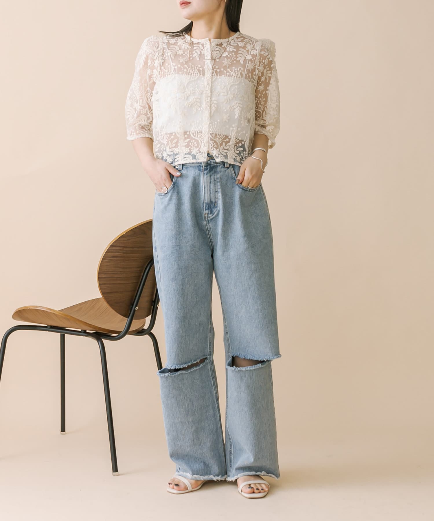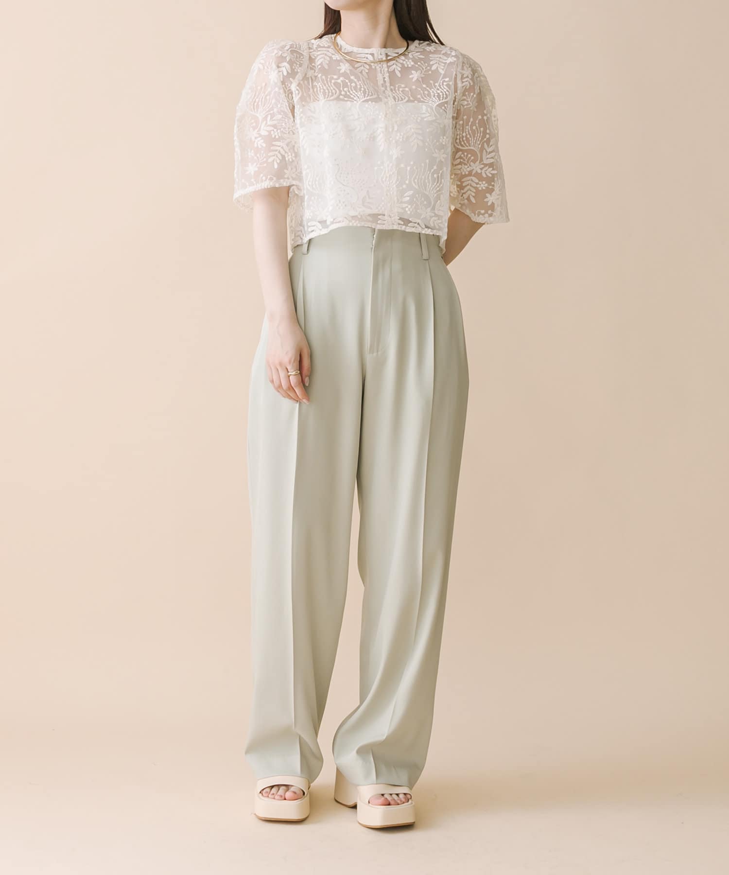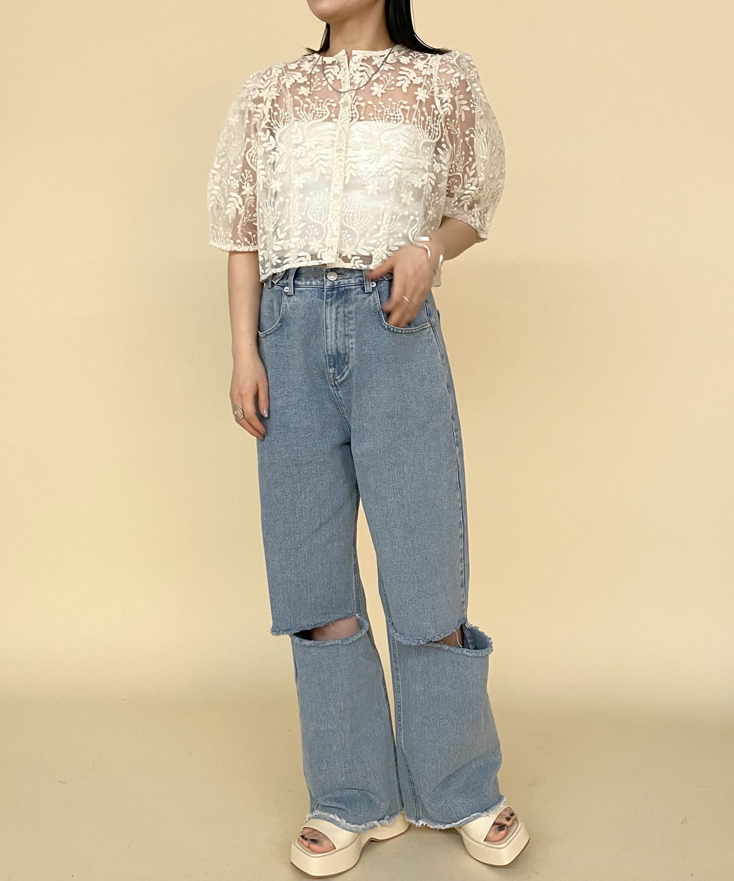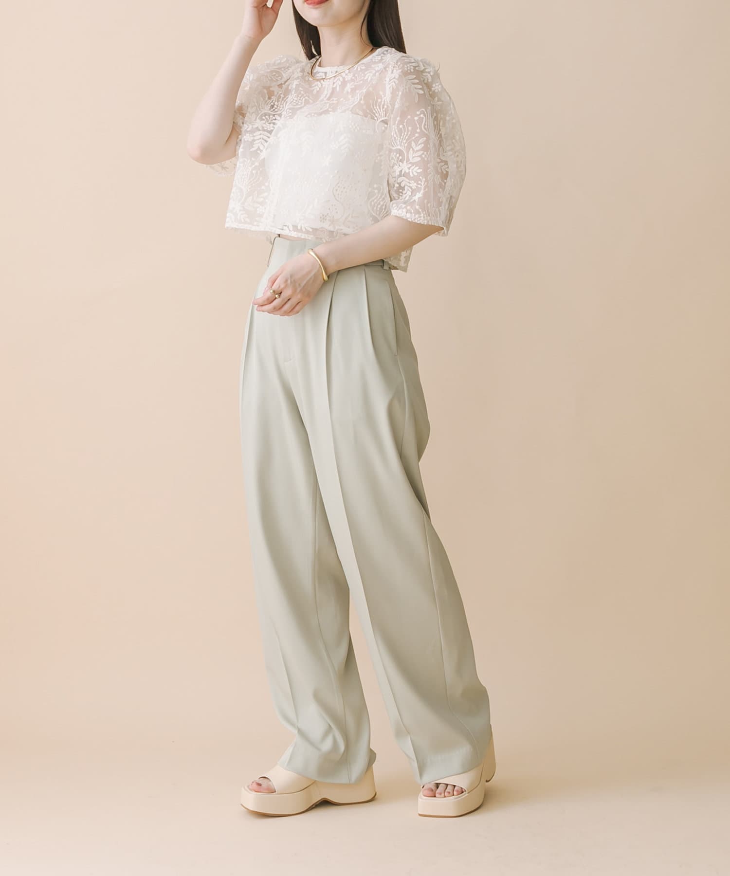 ・透け感のある素材感なのでパット付きキャミソールと合わせて頂くのがおすすめ◎