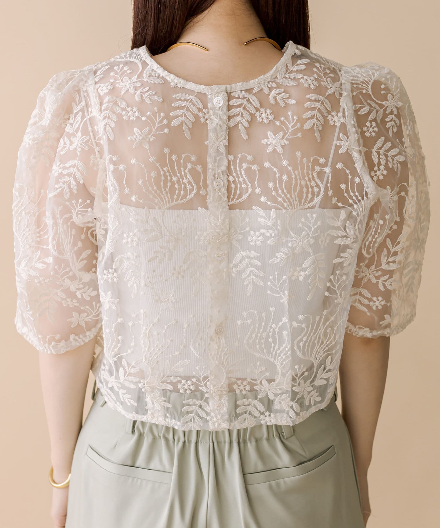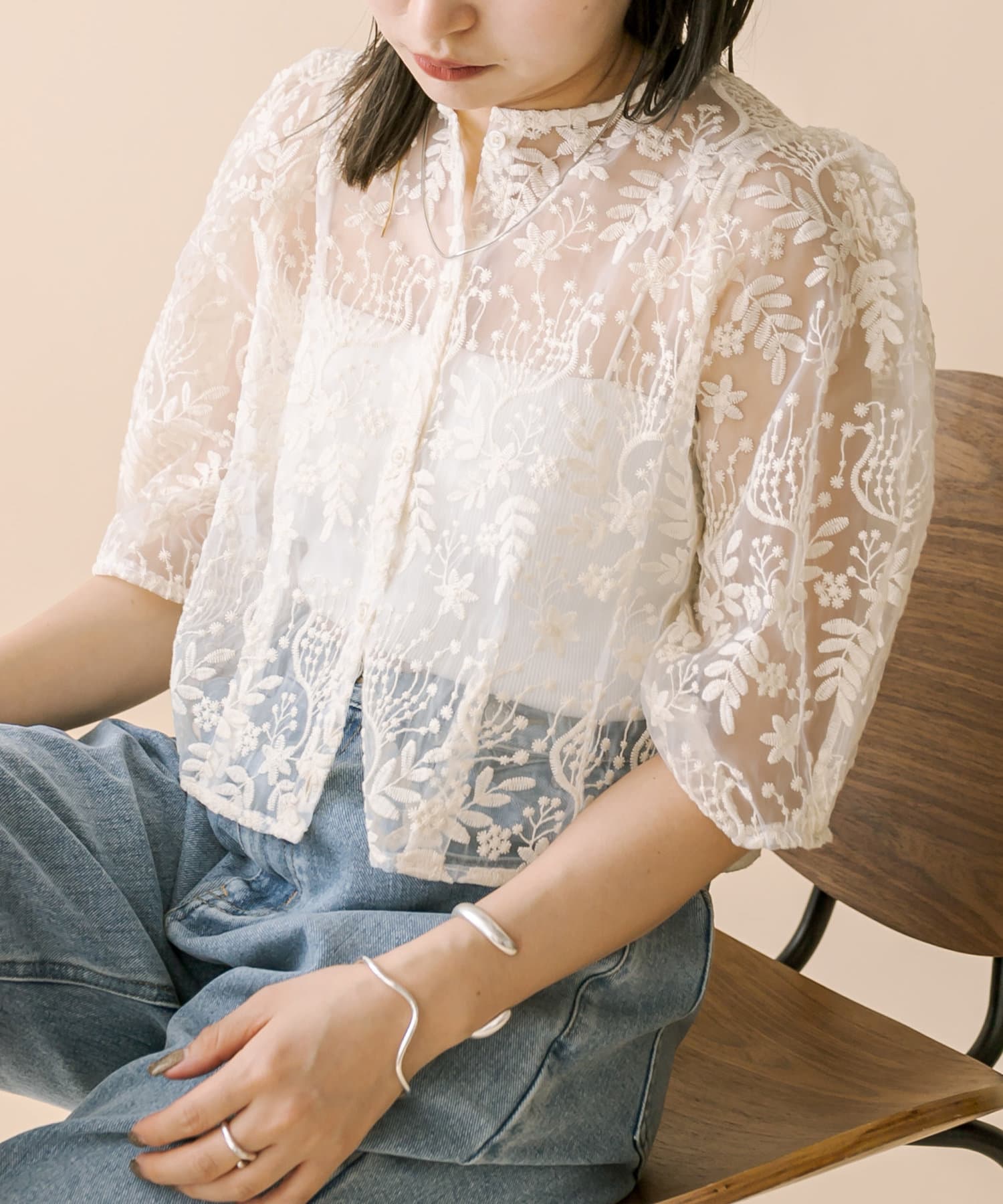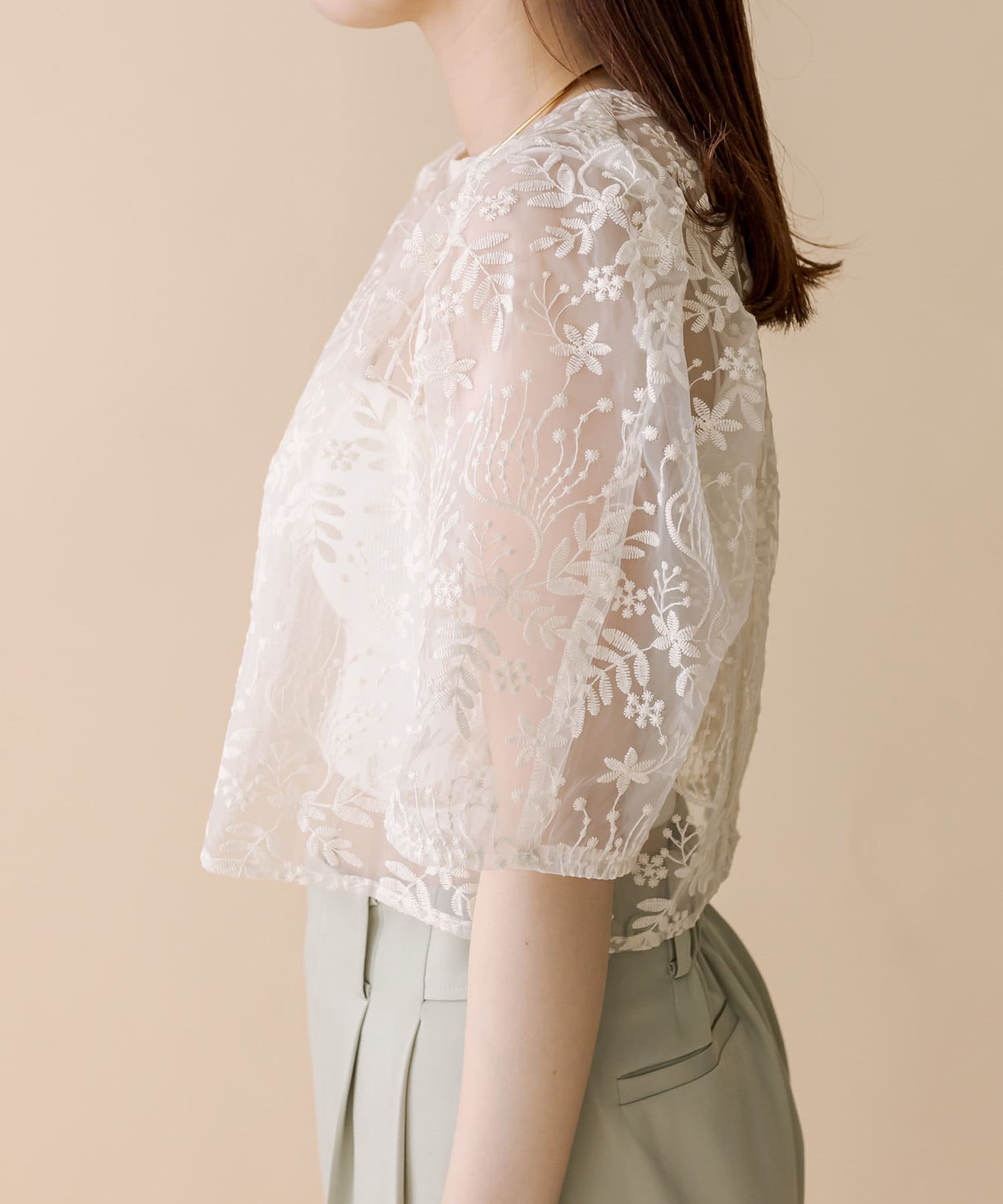 [mline]刺繍オーガンジーブラウス