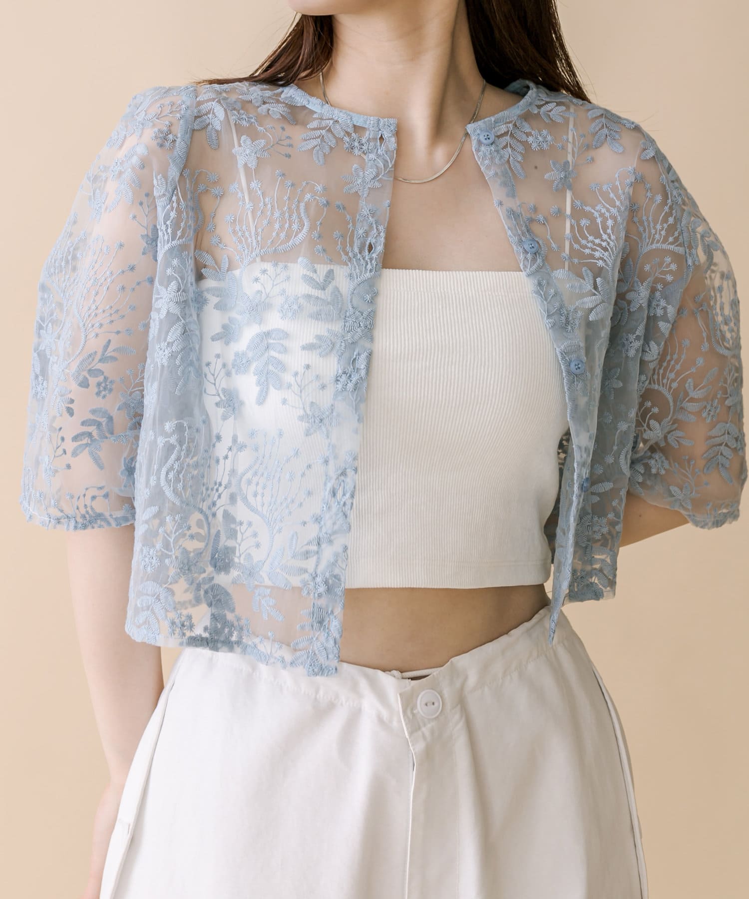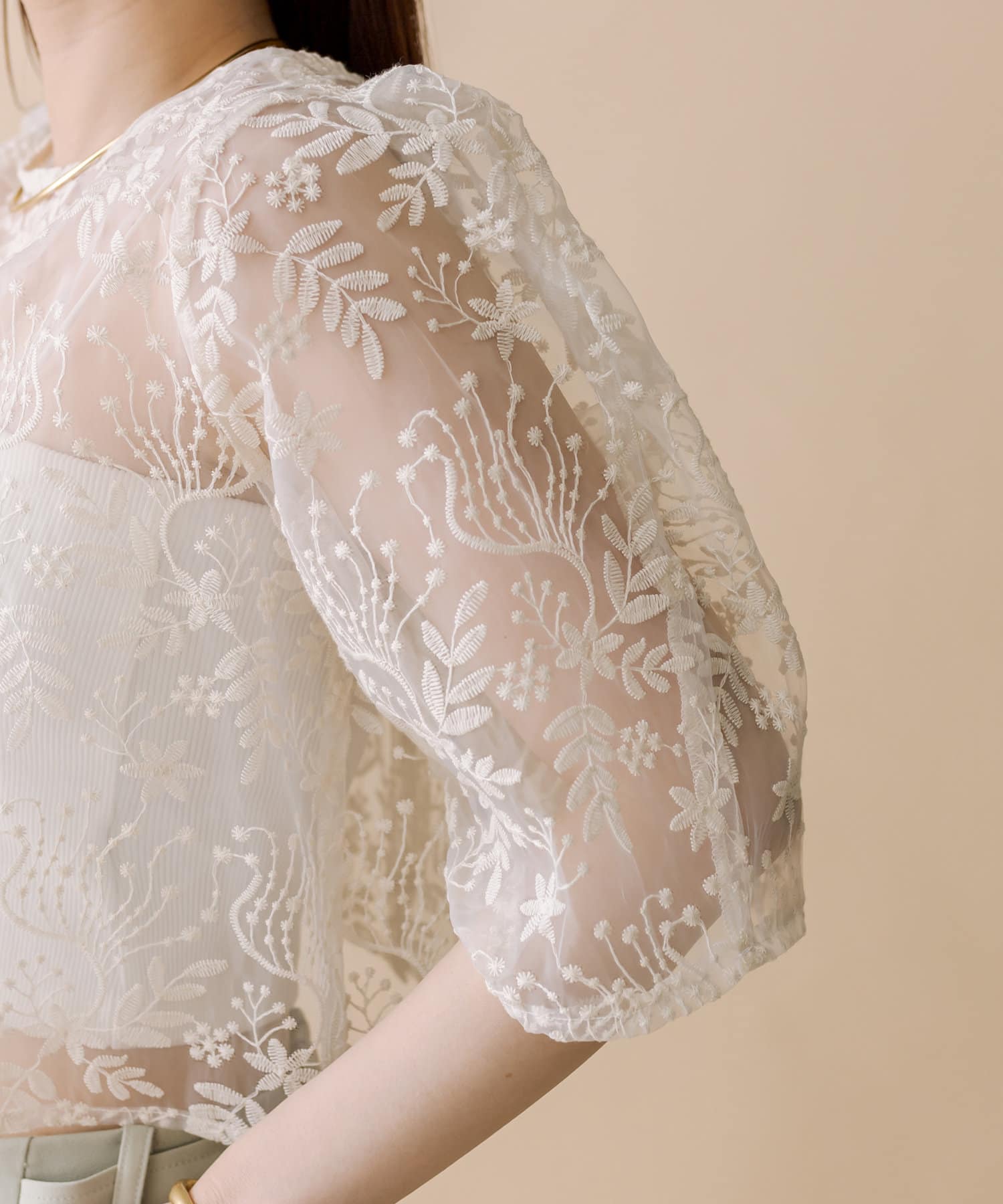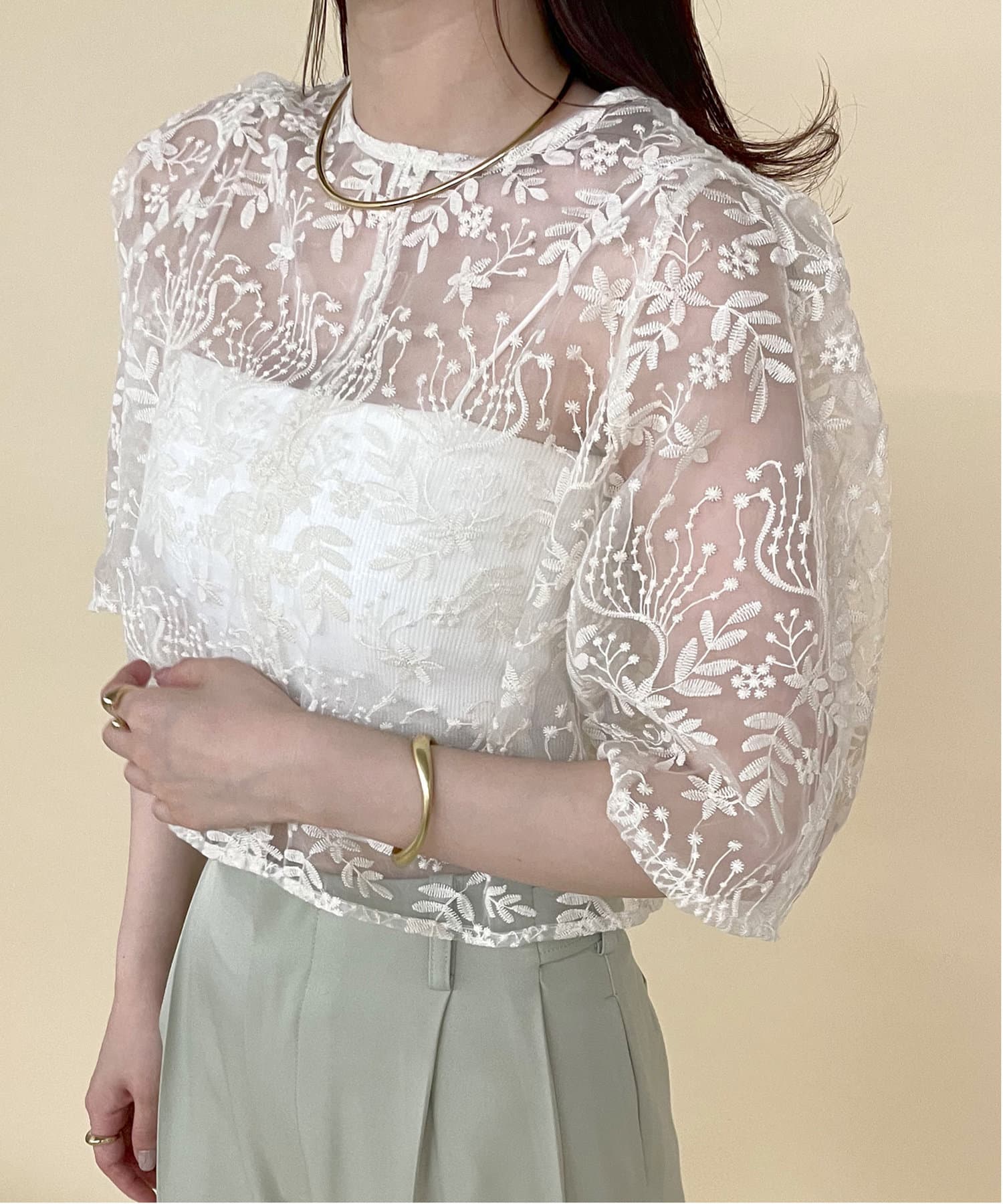 ・涼しげなオーガンジー素材と刺繍柄が目を惹くブラウス。