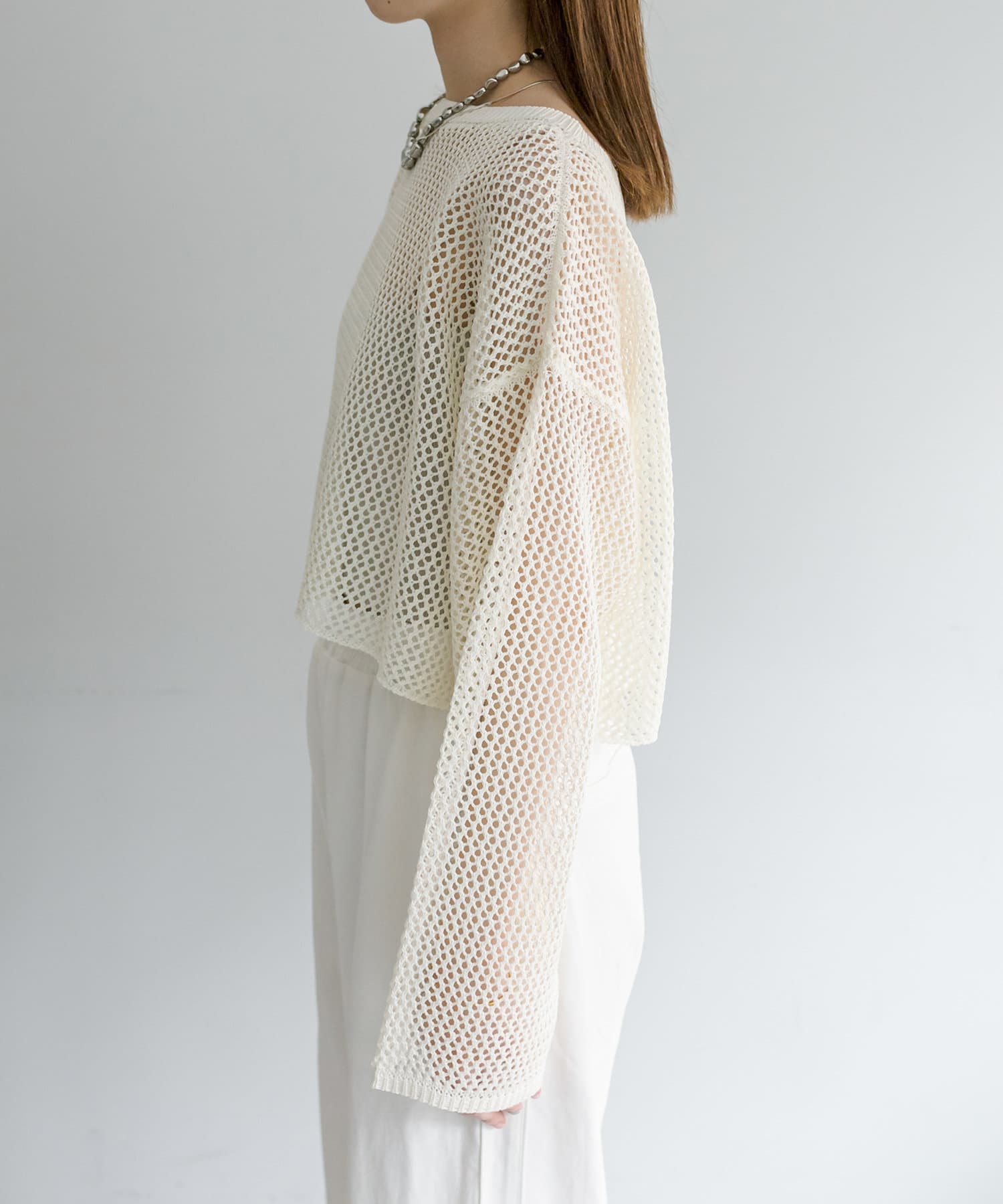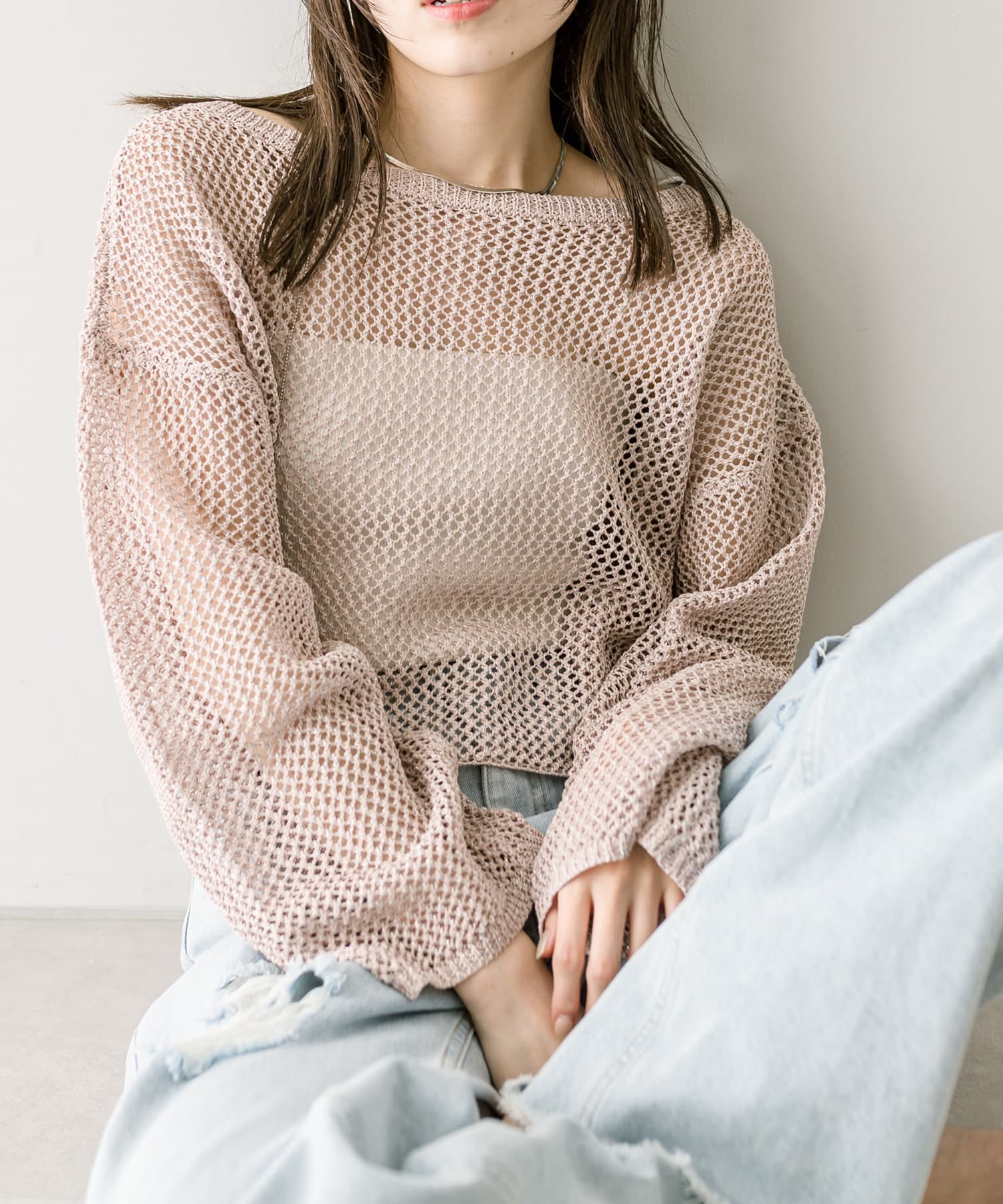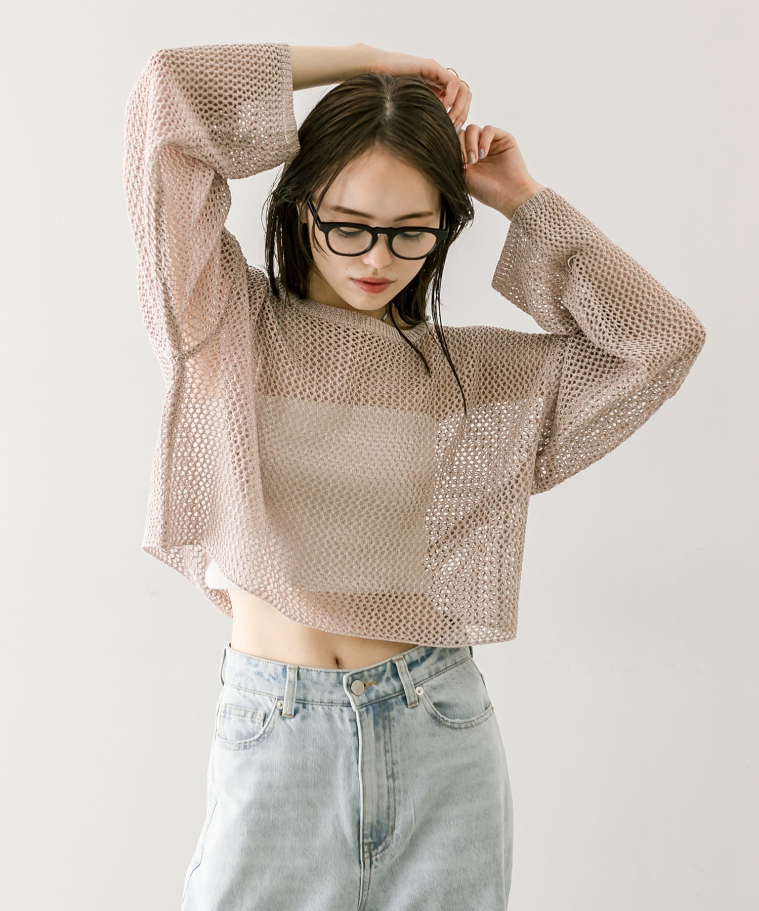 ・春から夏にかけて着れるメッシュ素材のコンパクトトップス。