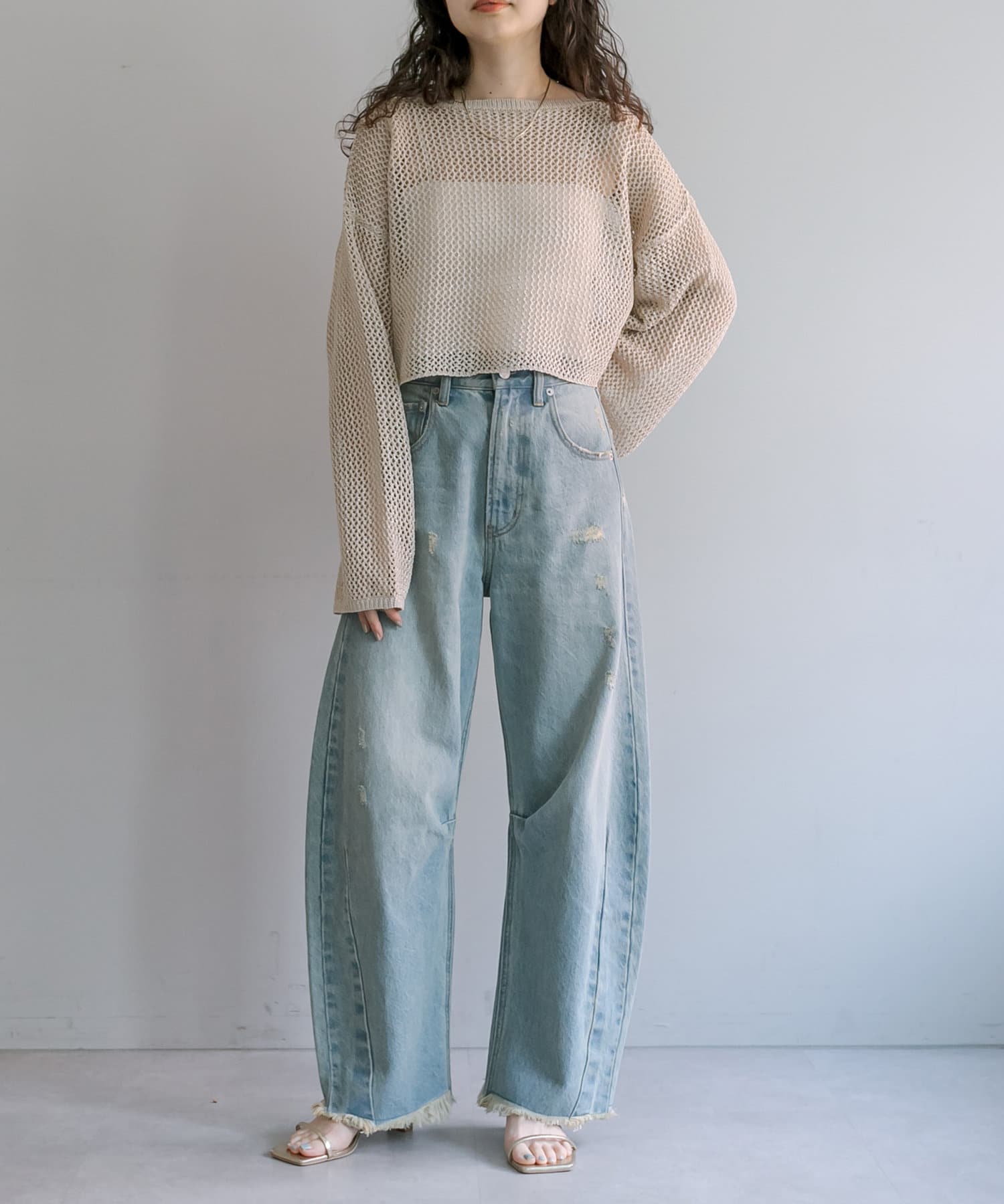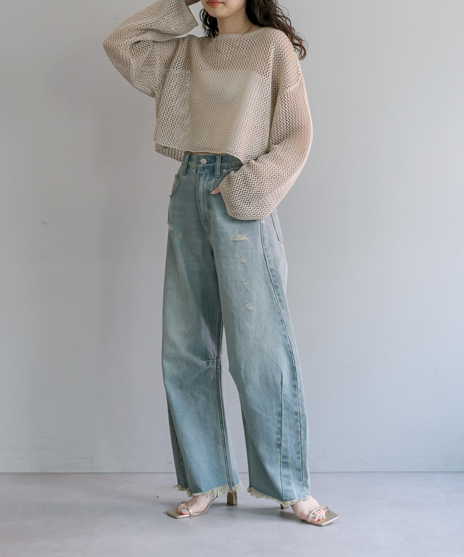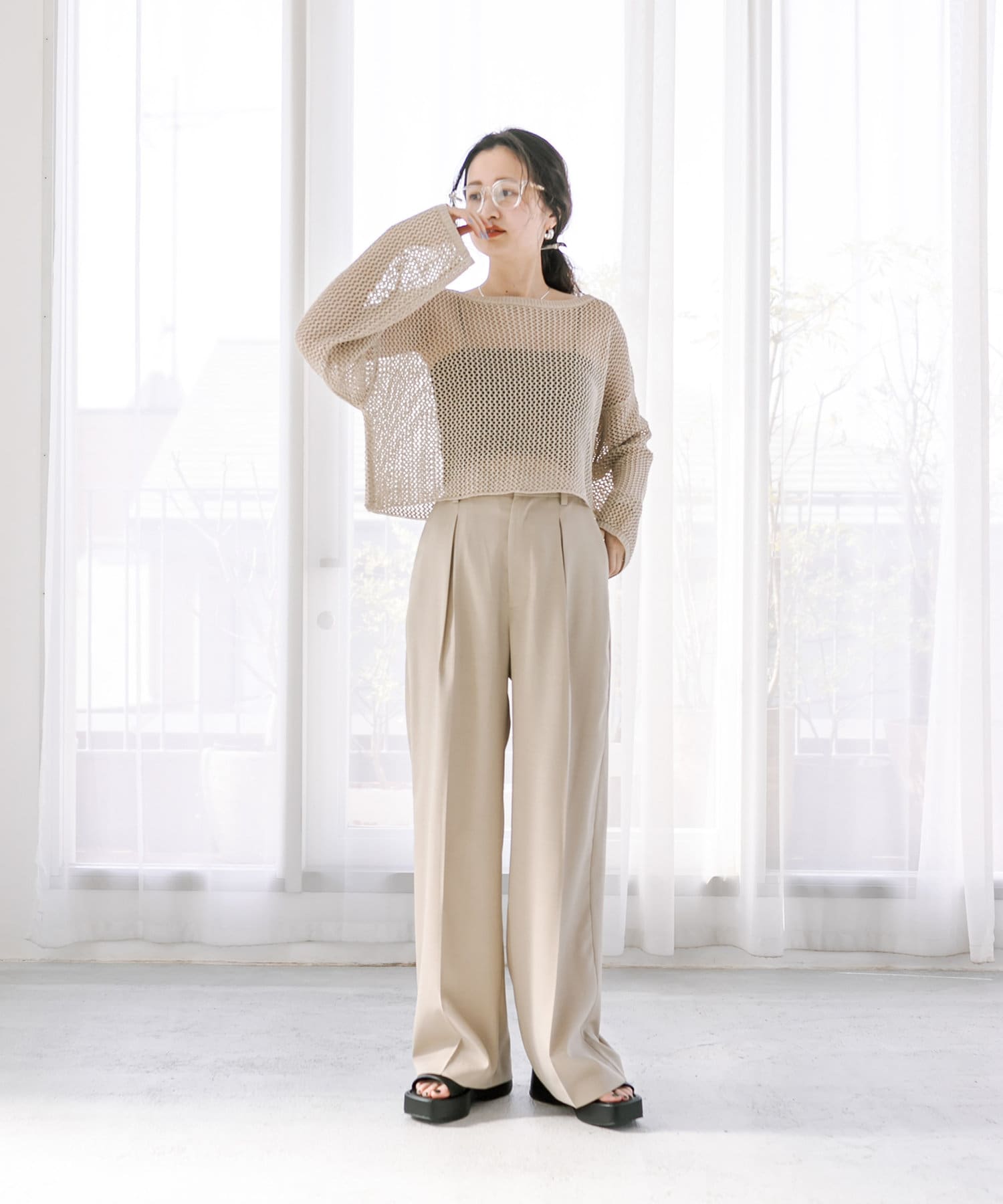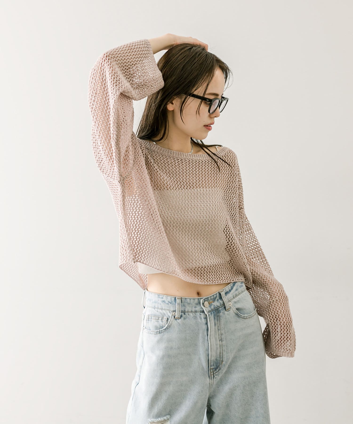 ・春から夏にかけて着れるメッシュ素材のコンパクトトップス。