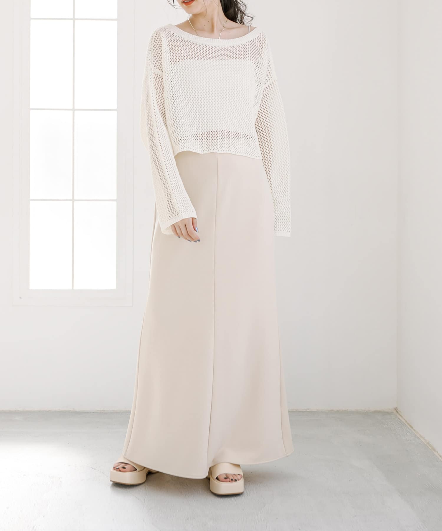 着てみると全然チクチクしなくて、インナーのカラーを変えて雰囲気を楽しめるし、スカート、パンツ、キャミワンピ、オールインワンなんでも合わせられる、万能さんでした!コーデ組みやすい、着やすい一枚です。