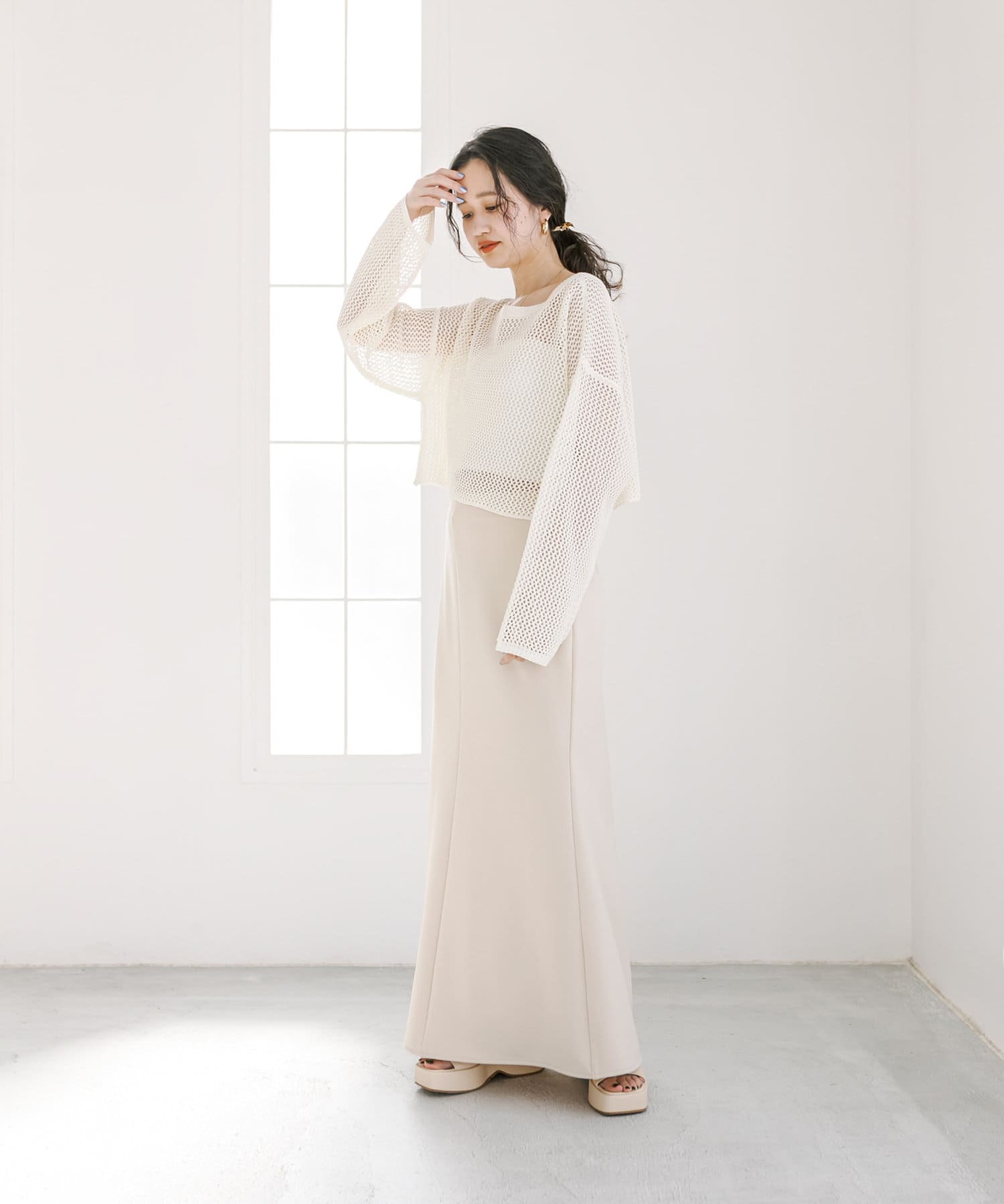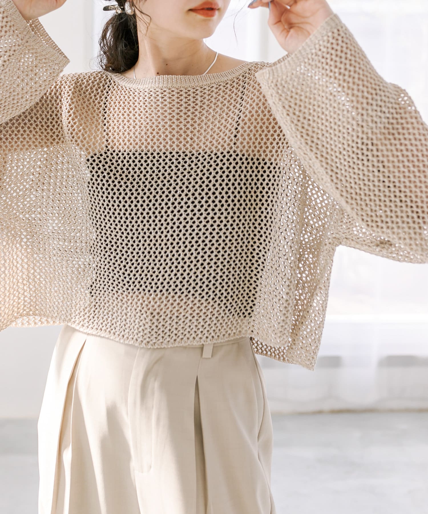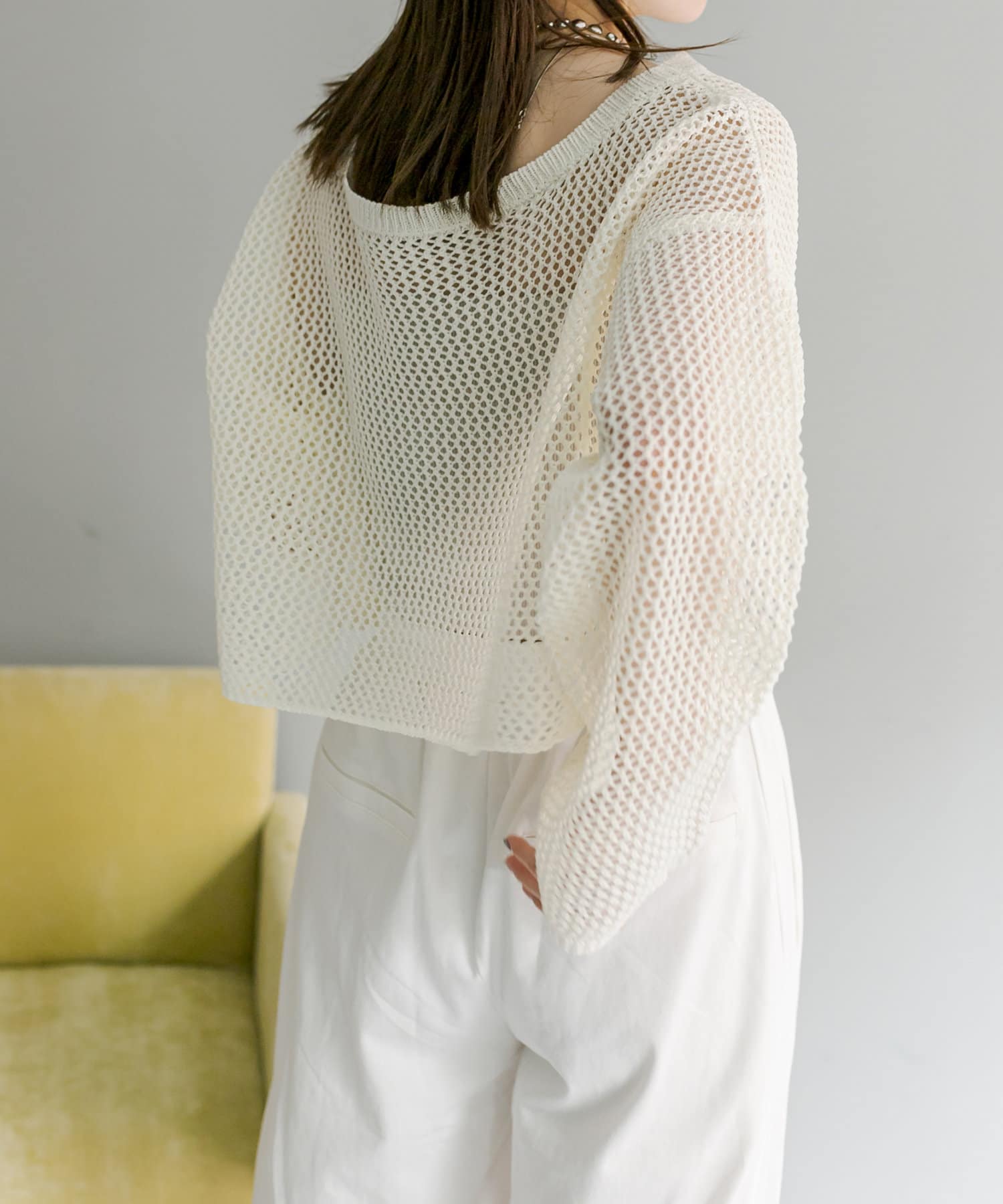 ・春から夏にかけて着れるメッシュ素材のコンパクトトップス。