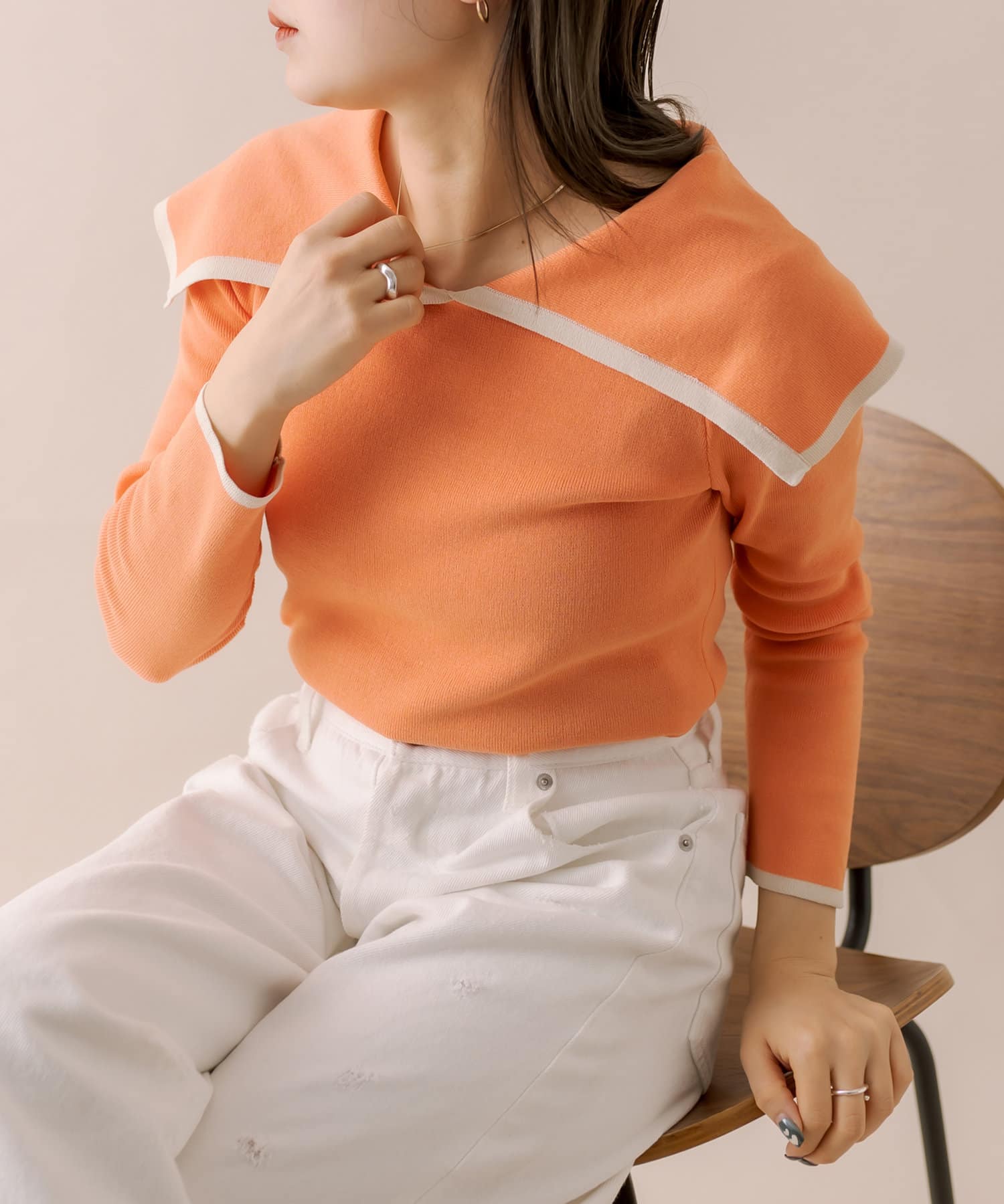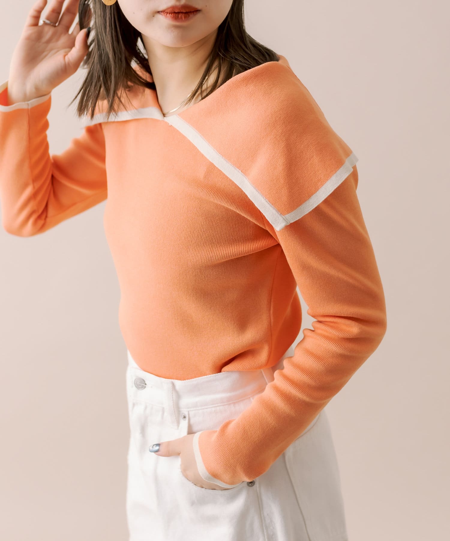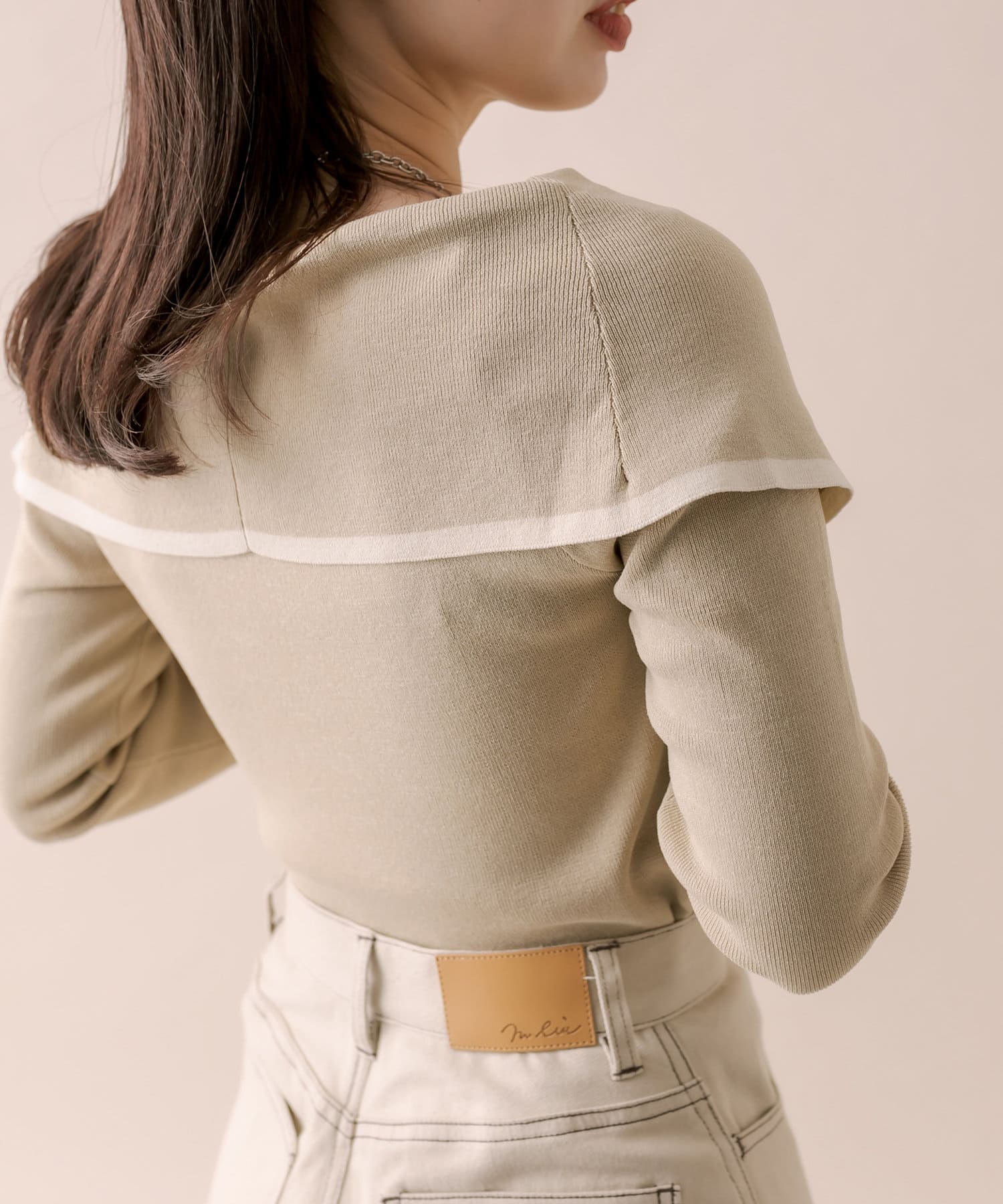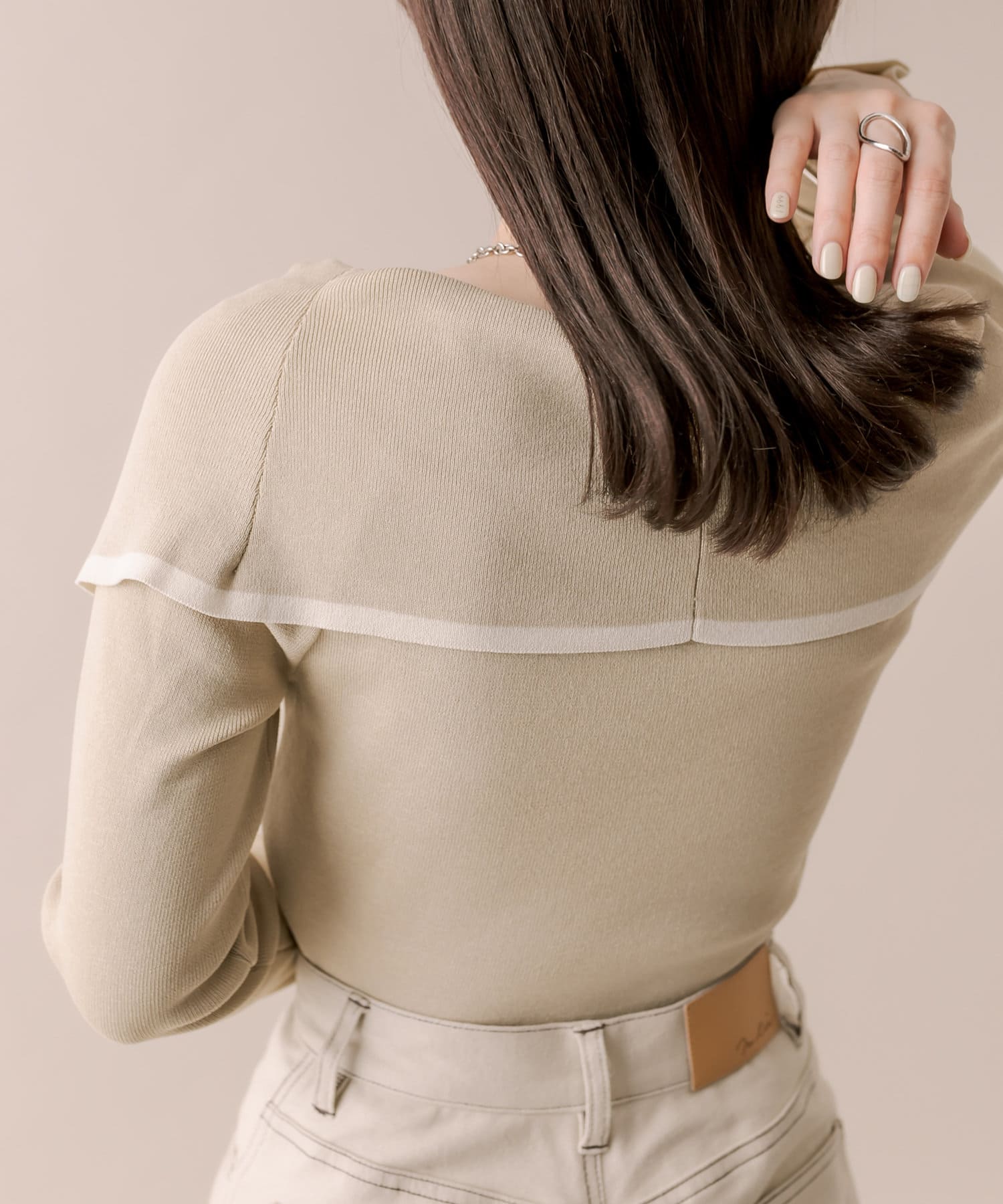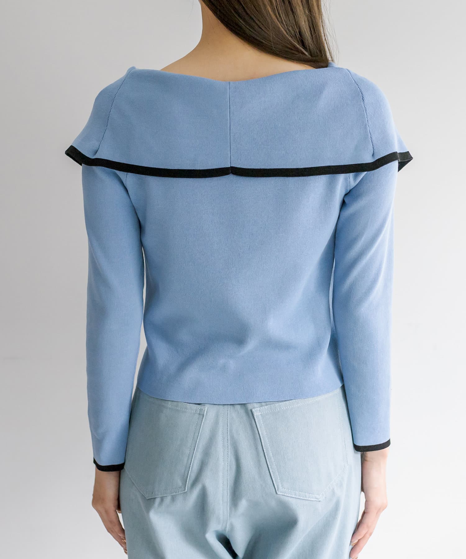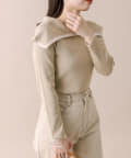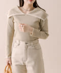 ・コンパクトな衿とパイピングデザインに注目の春ニット。