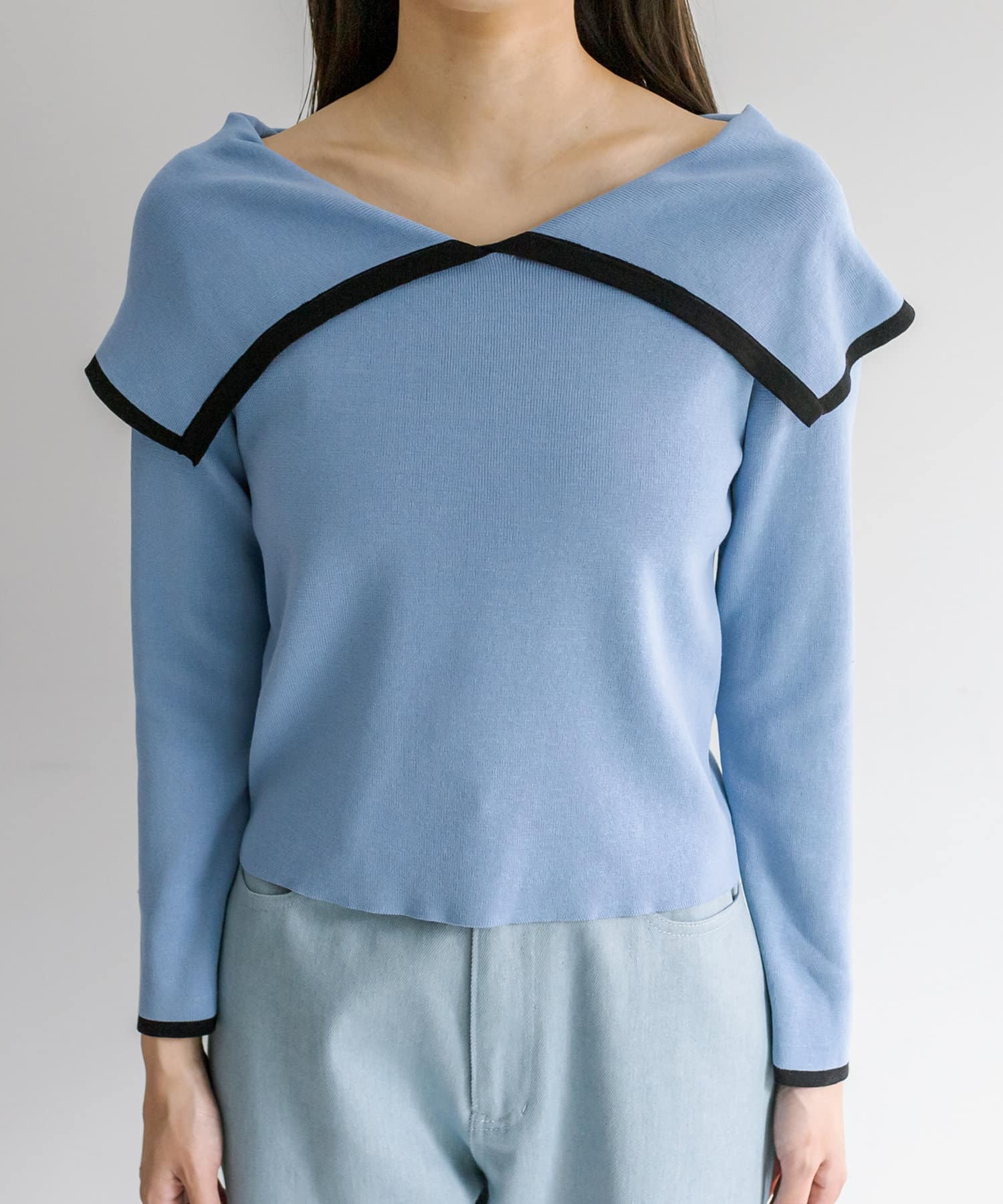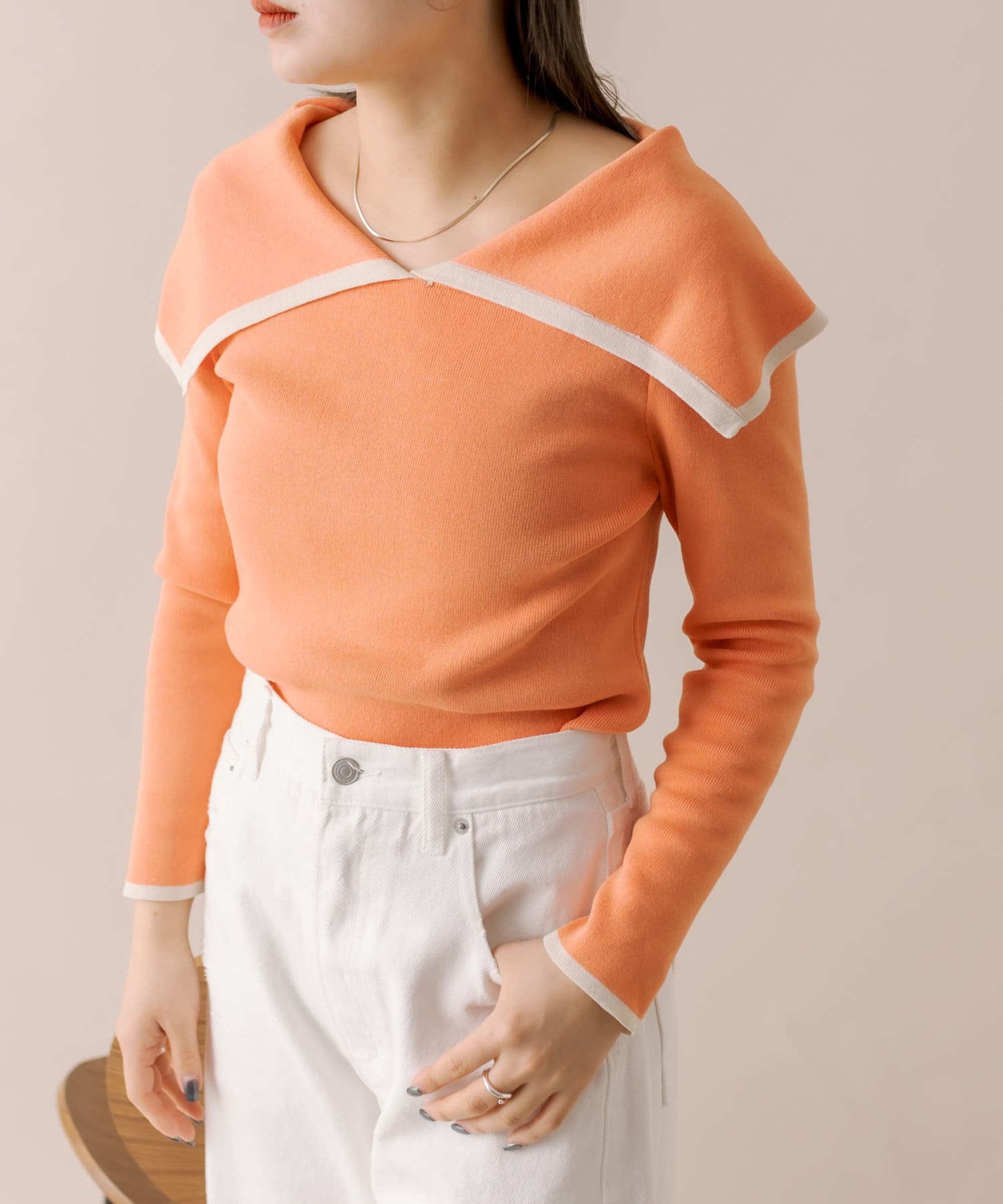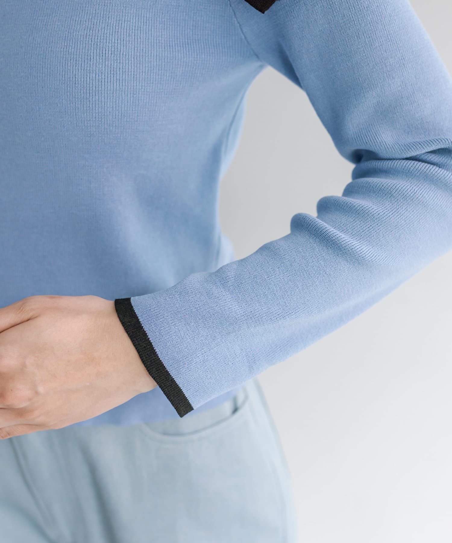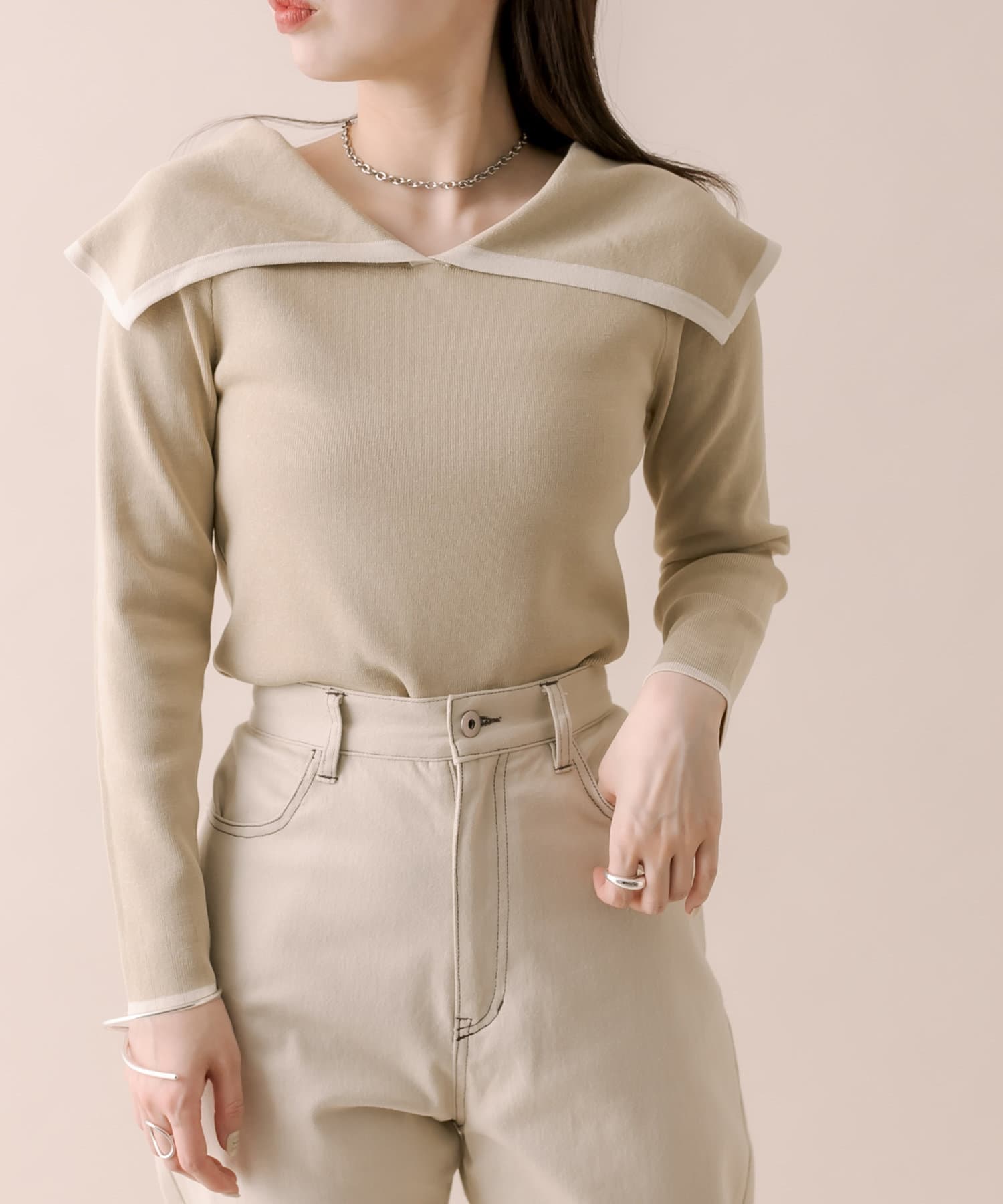 ・コンパクトな衿とパイピングデザインに注目の春ニット。