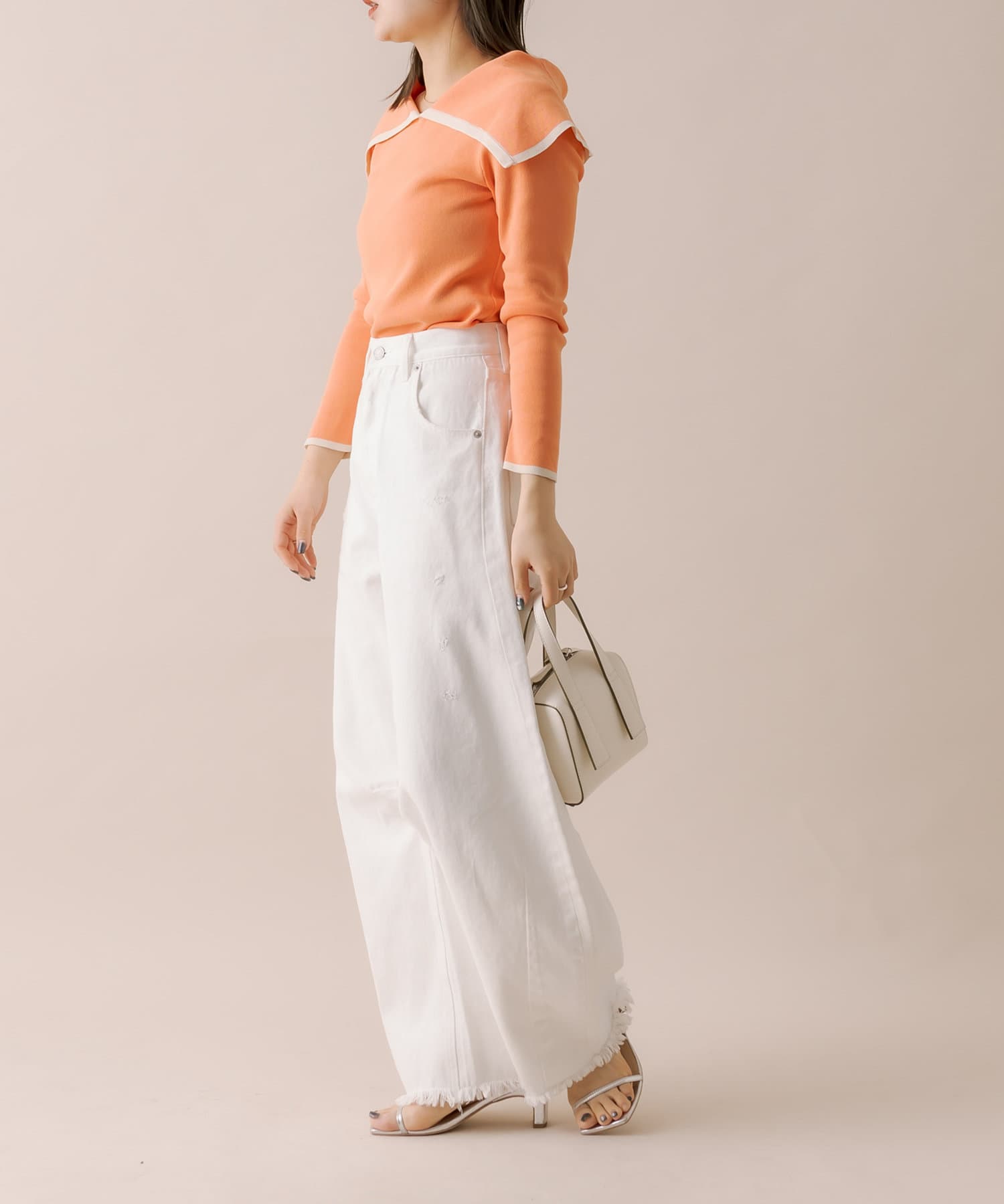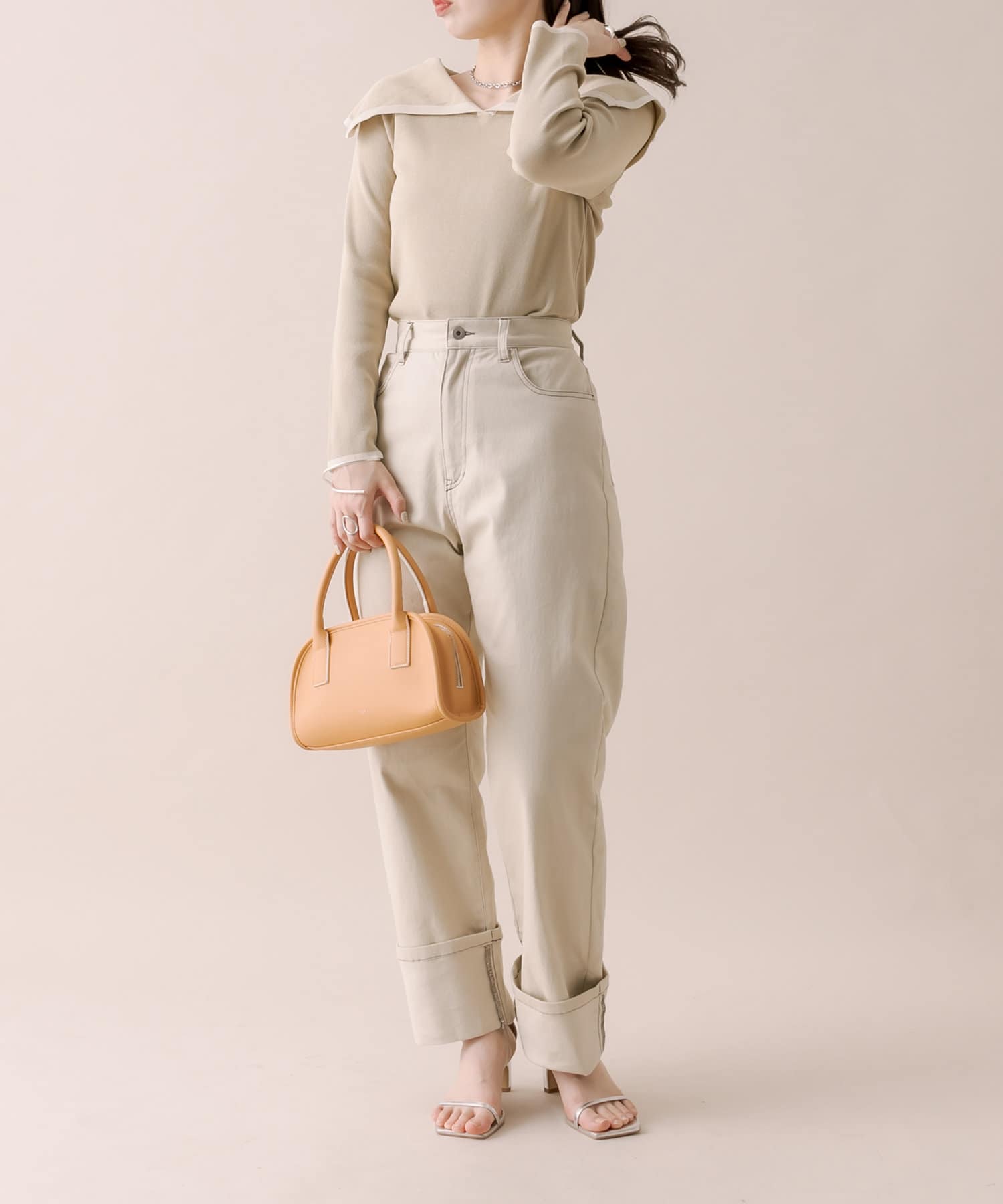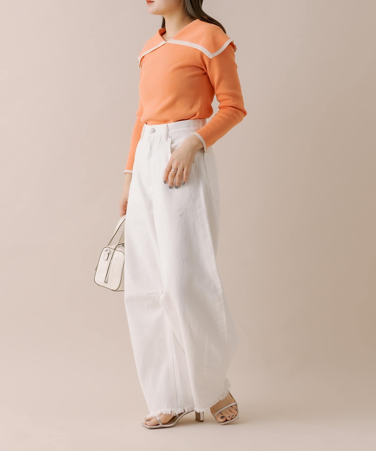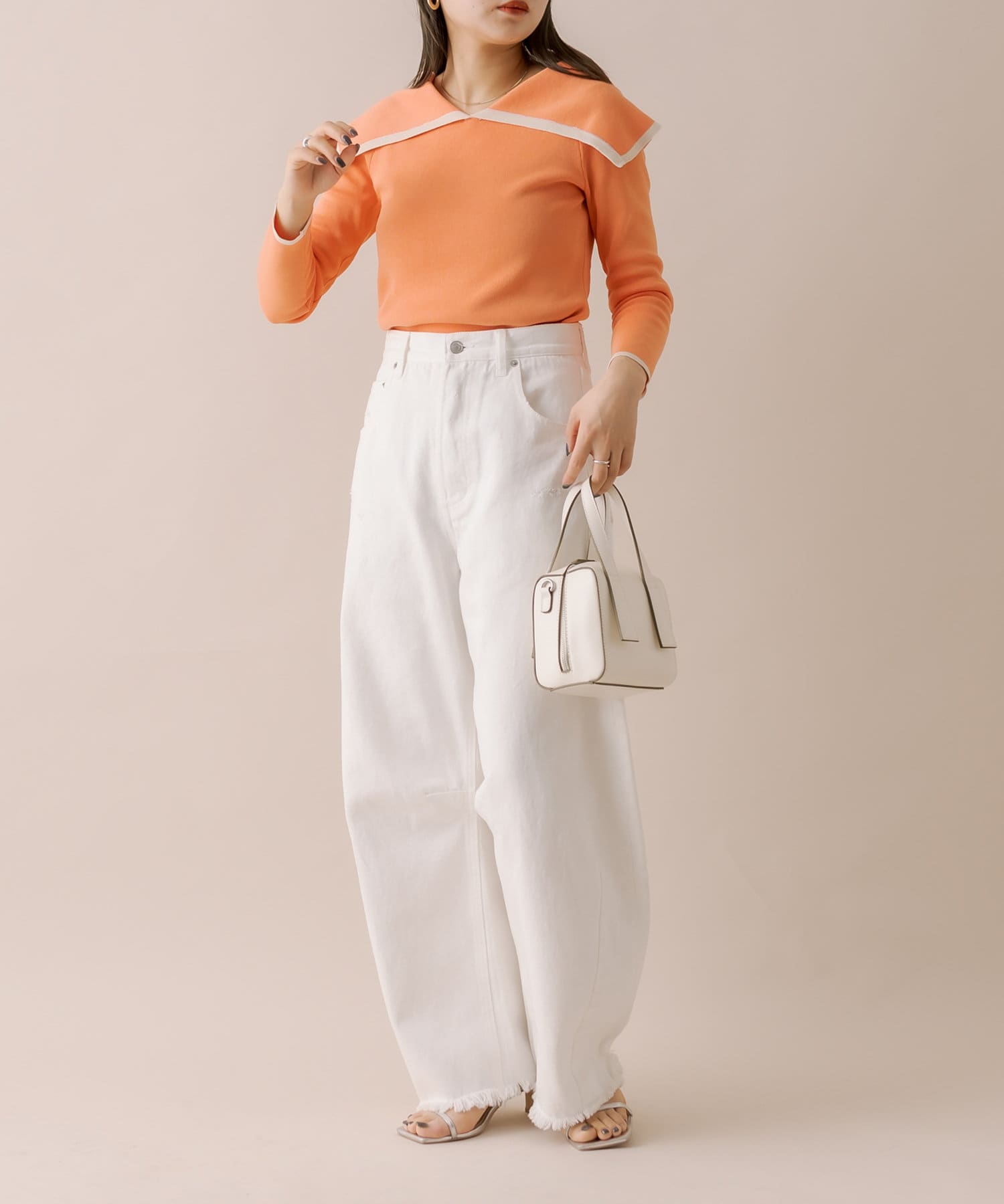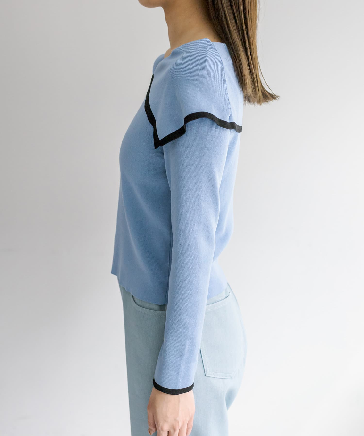 ・コンパクトな衿とパイピングデザインに注目の春ニット。