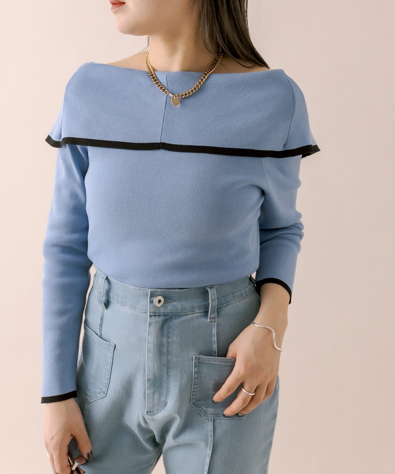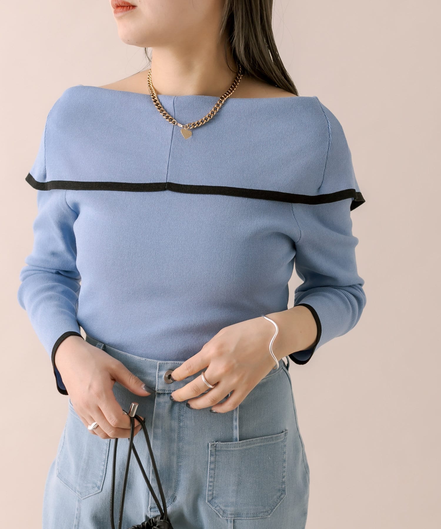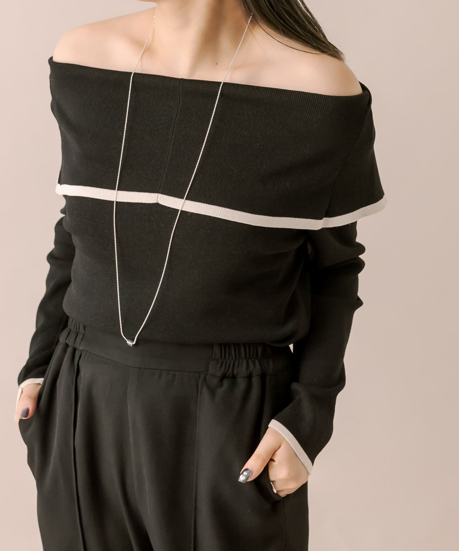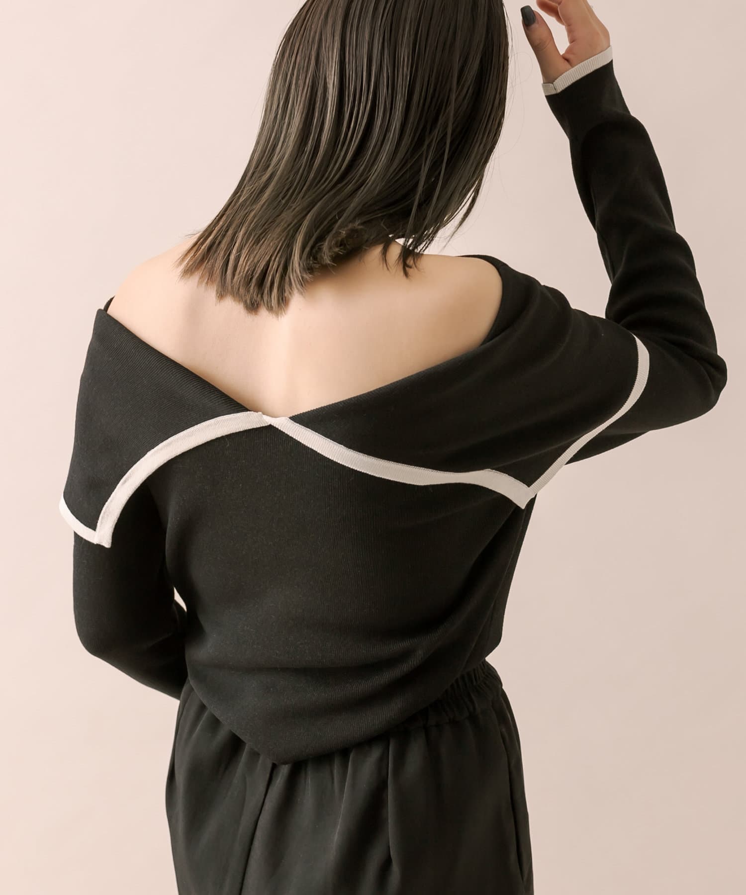 ・前後両前で着用でき、肩を落としてオフショルニットとしてもお使い頂けます!