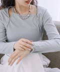 ・首元はシンプルなアクセサリー使いで華やかな印象に。