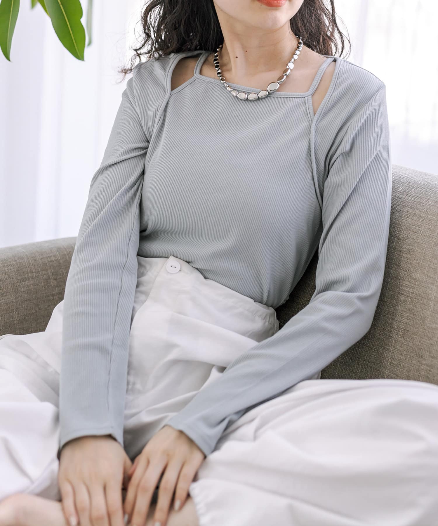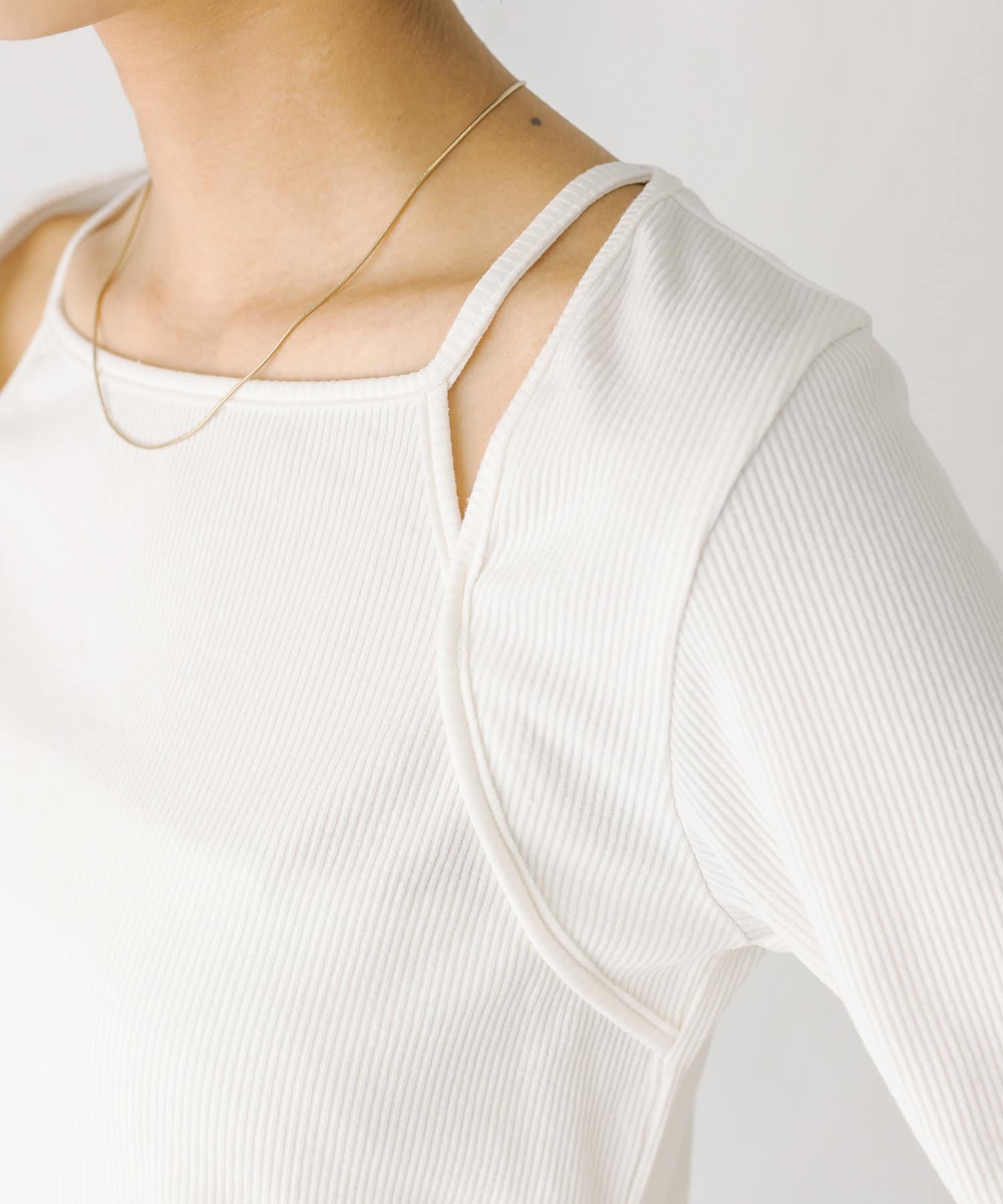 ・肩のスリットデザインがポイントのカットソー。