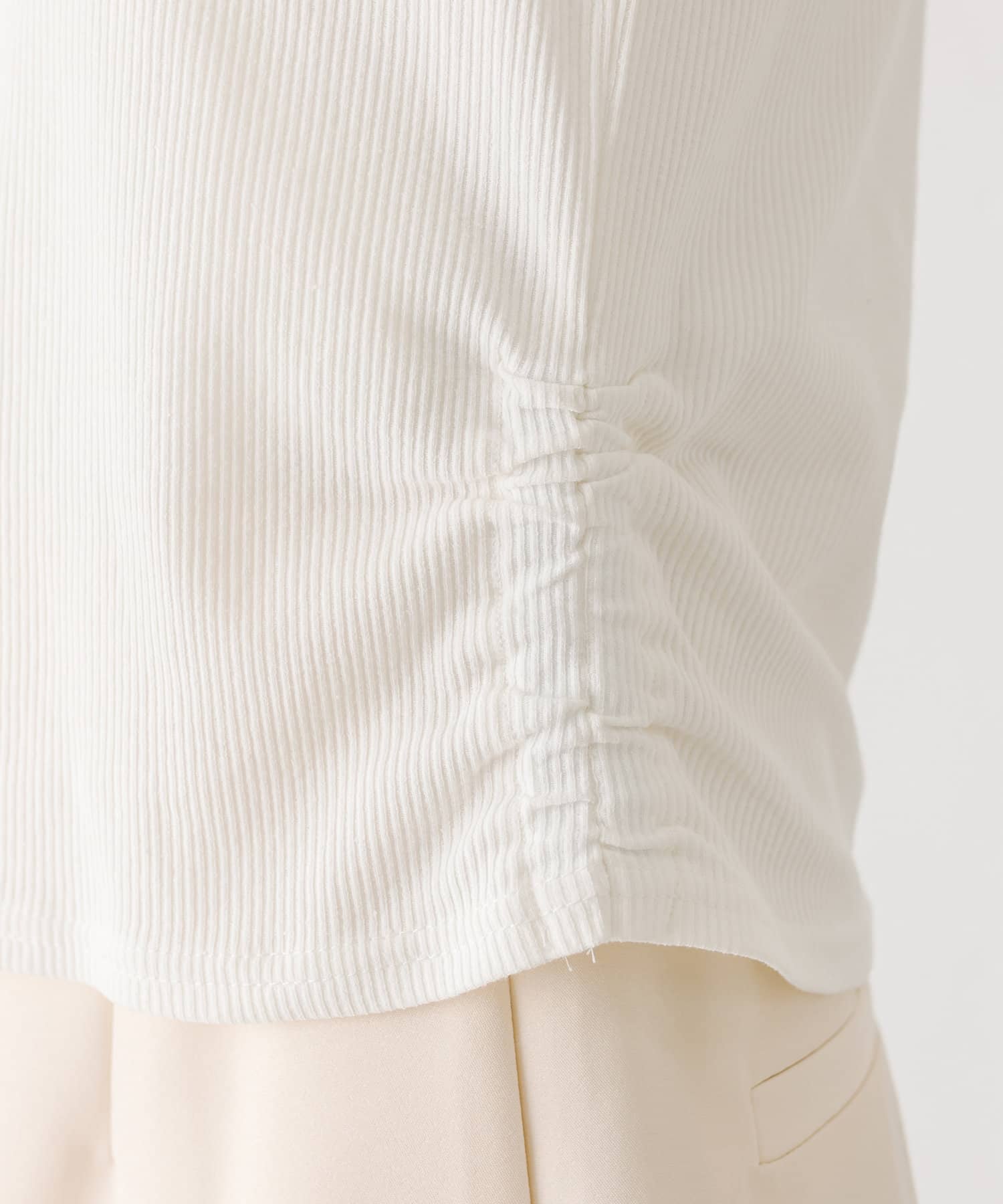 ・サイドのギャザーデザインが女子感をプラス◎