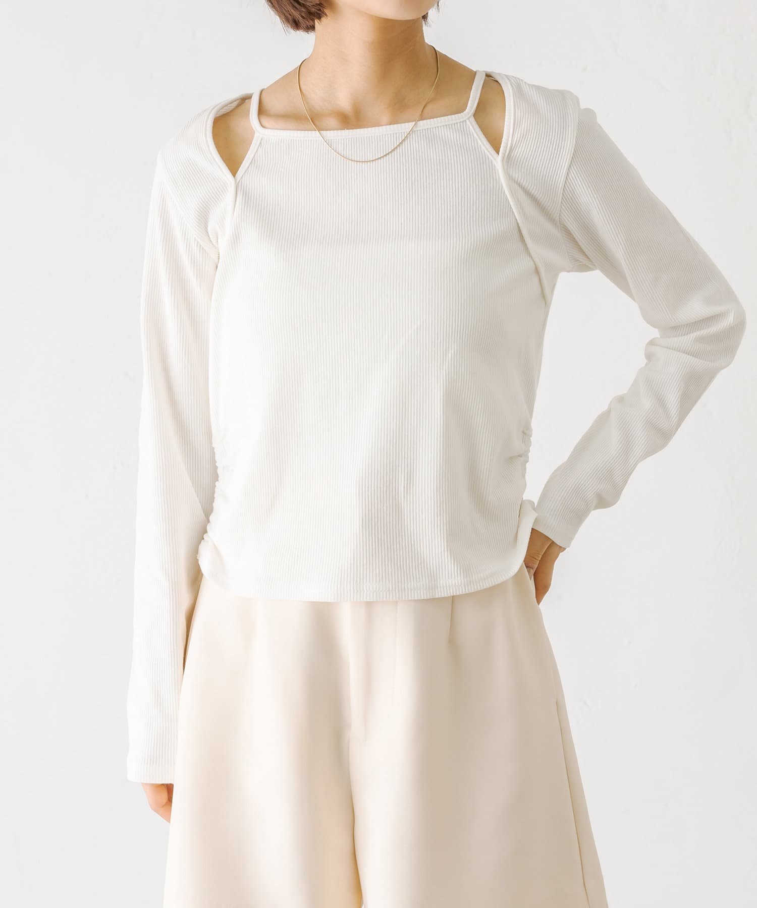 1枚で決まる!華奢見え抜群のコンパクトトップス!