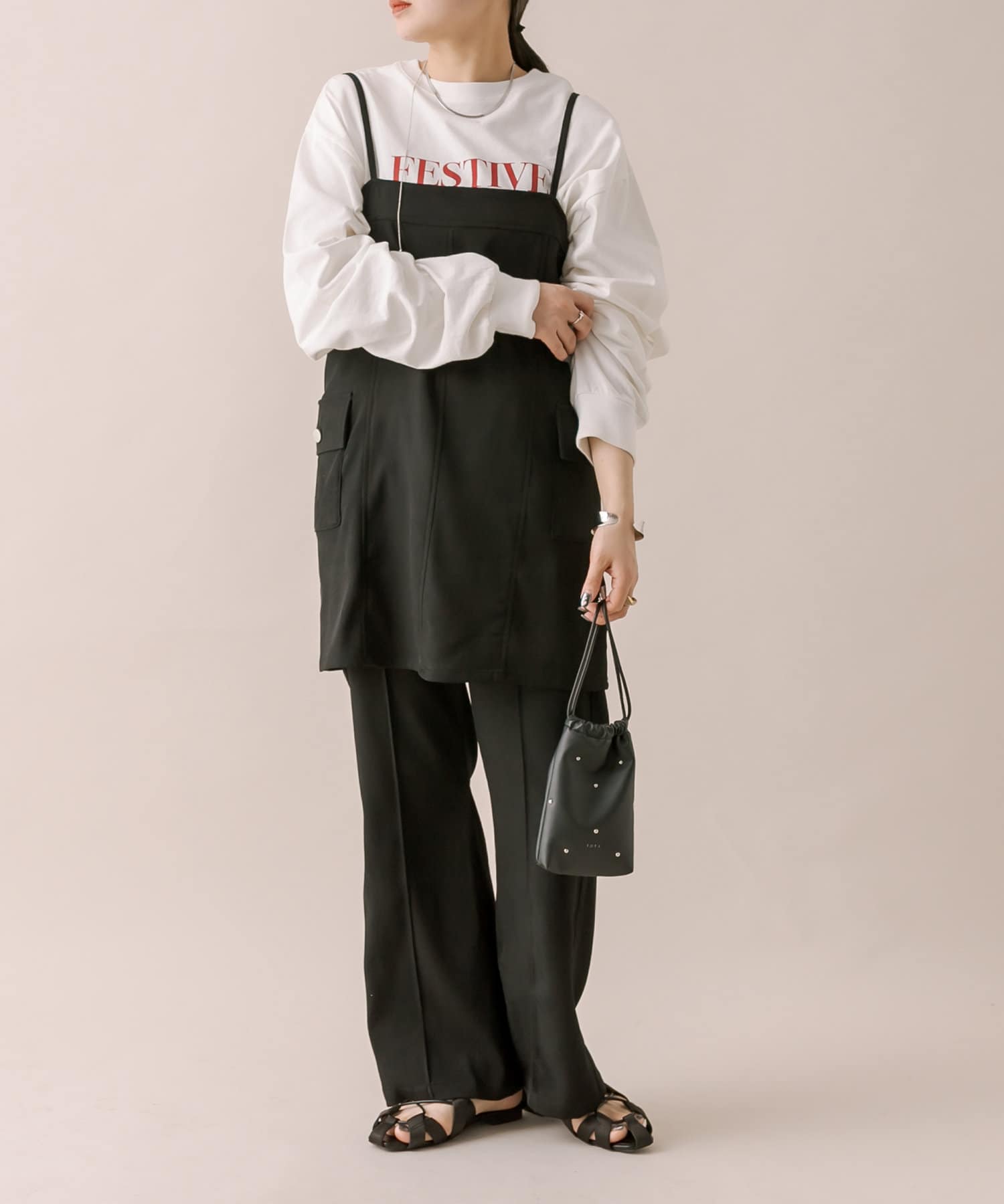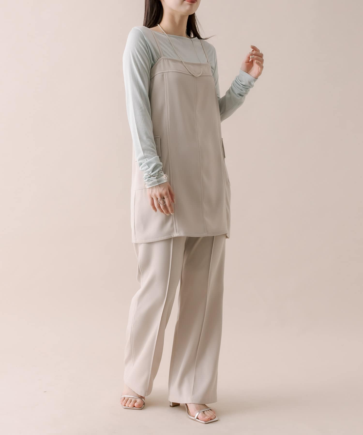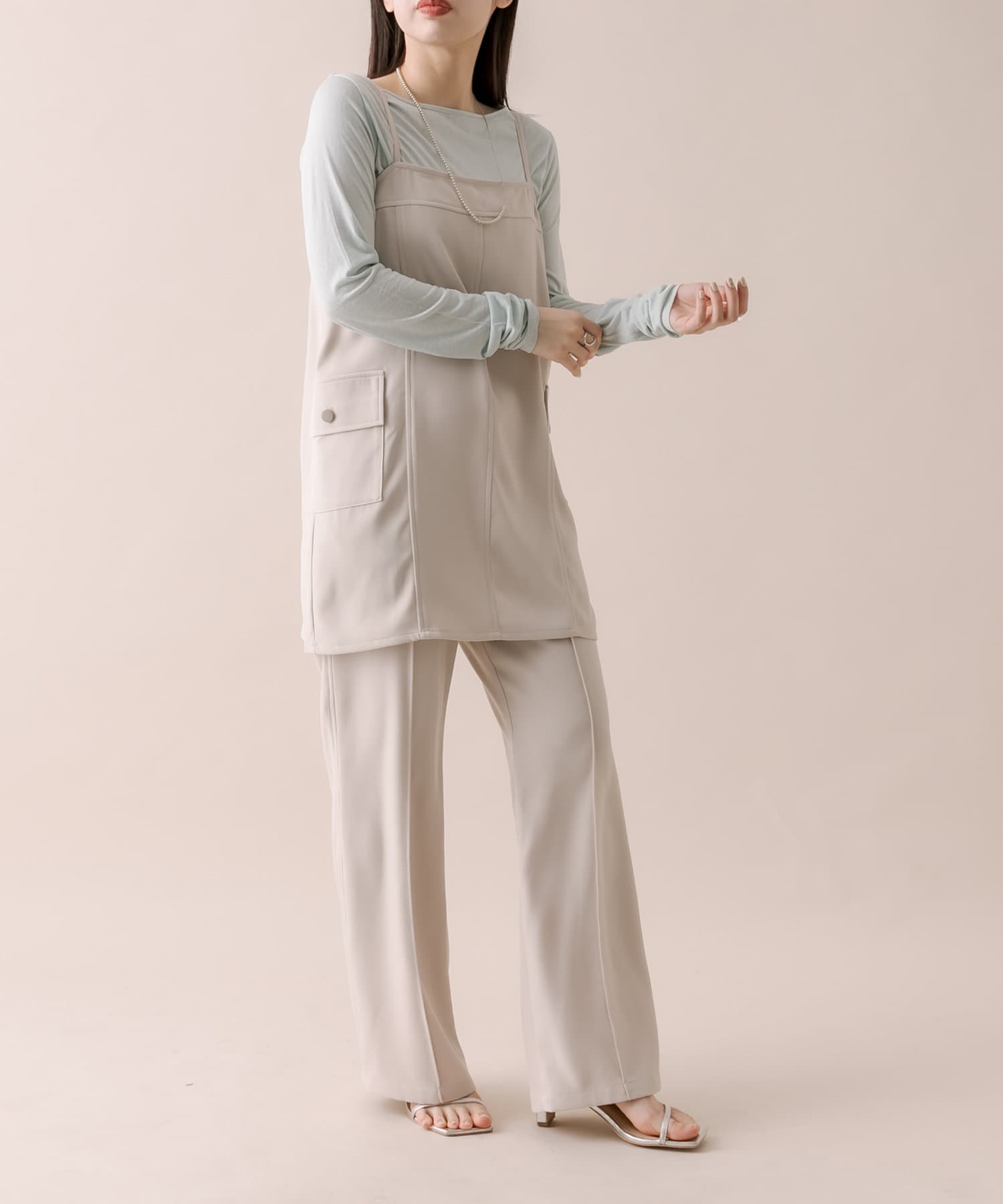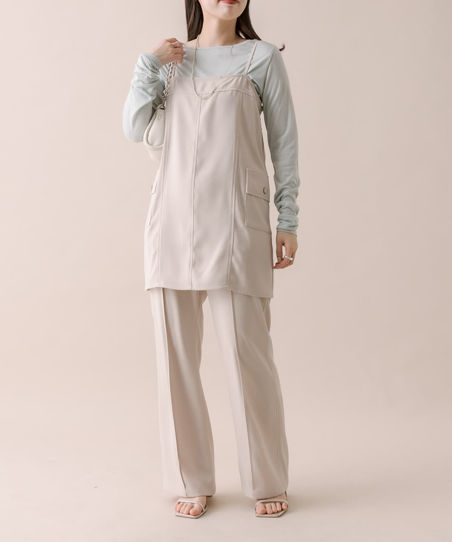 ・キャミワンピとスラックスパンツがセットの大人カジュアルなセットアップ。