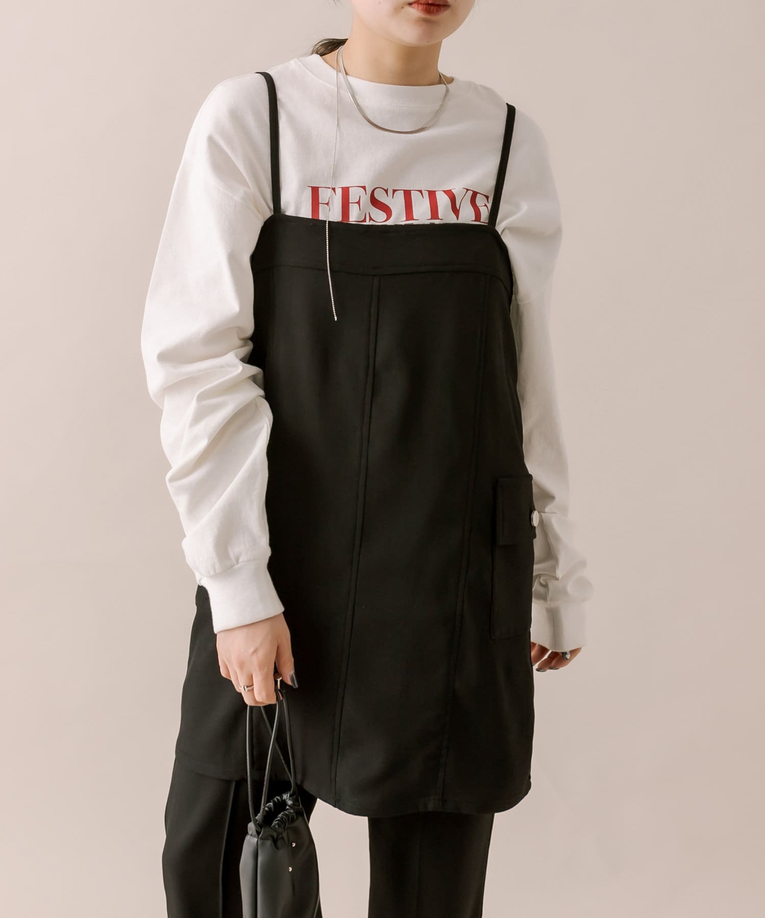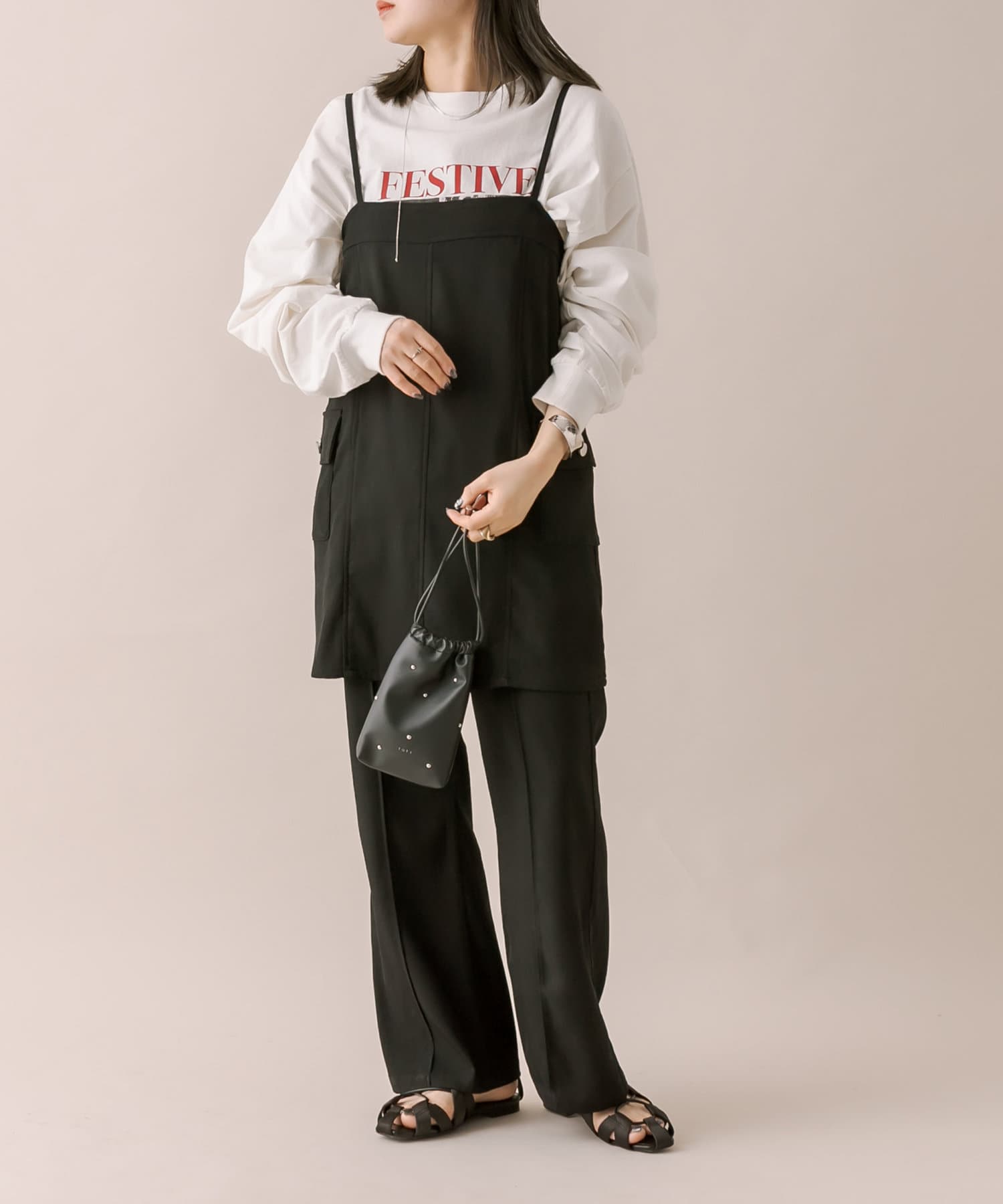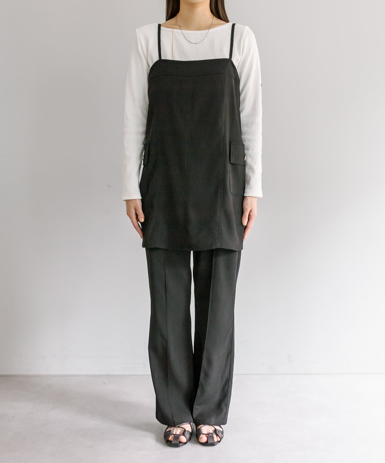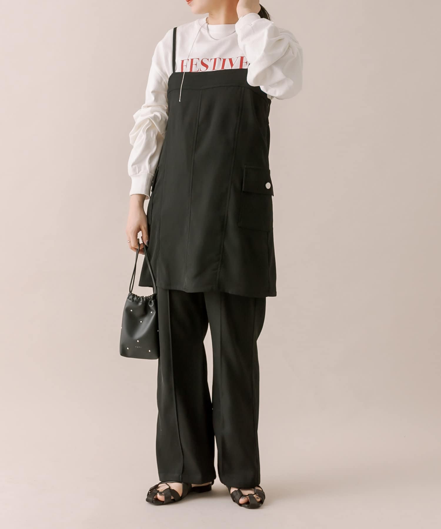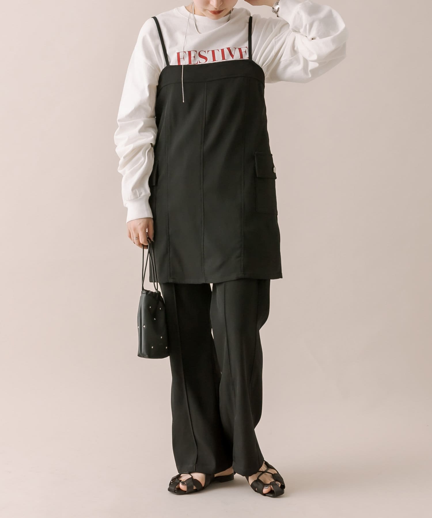 ・キャミワンピとスラックスパンツがセットの大人カジュアルなセットアップ。