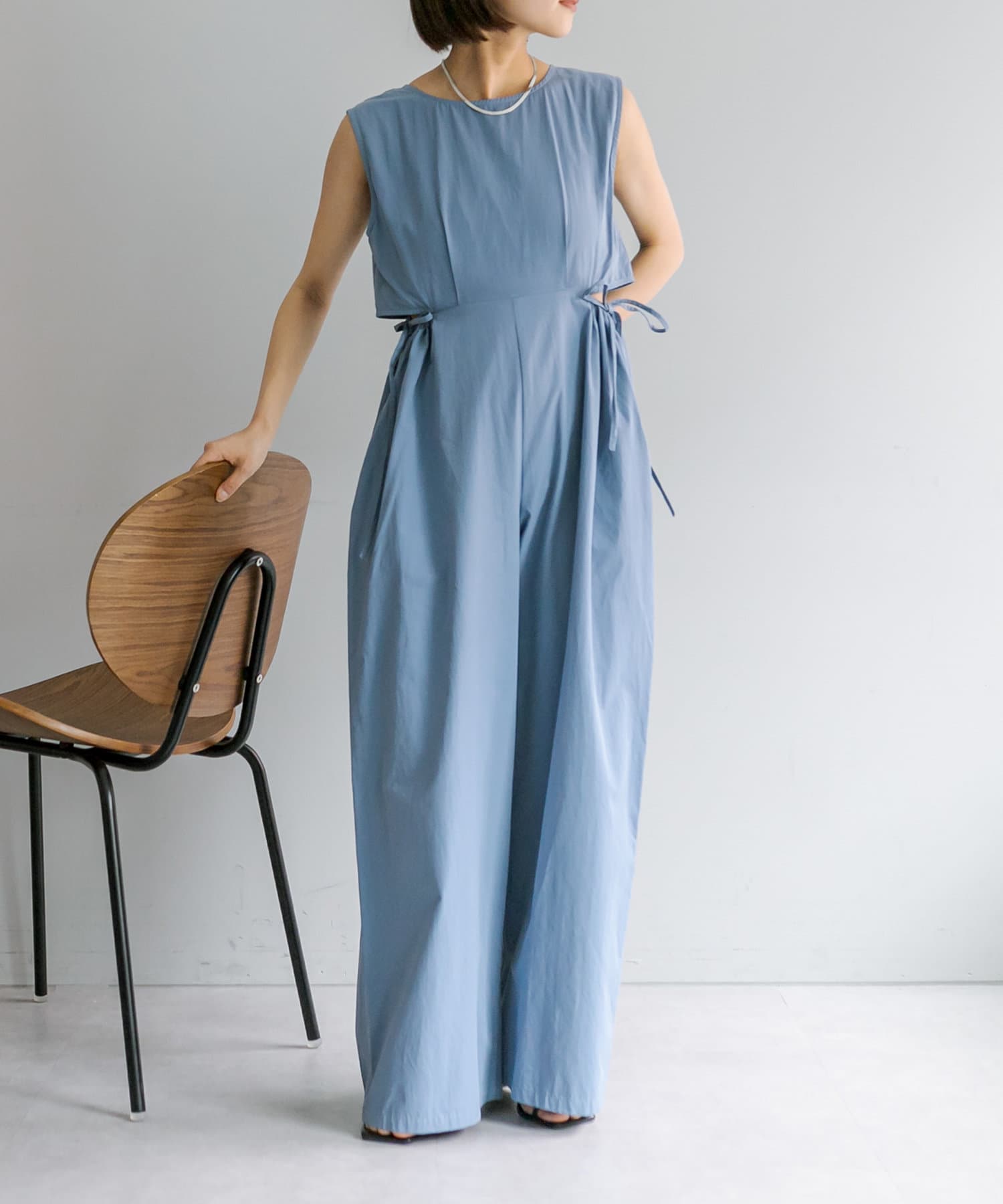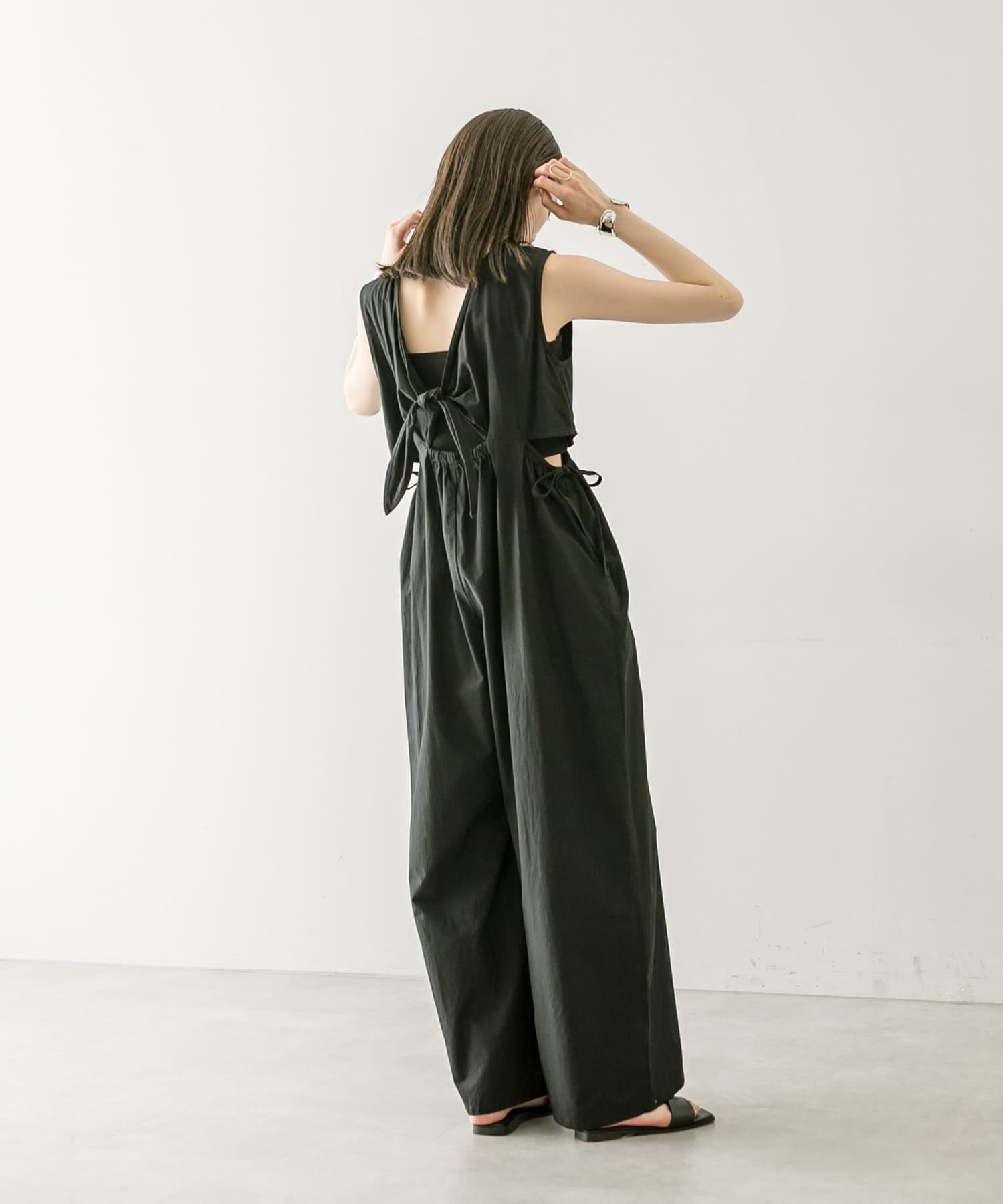 ・サイドのスリットデザインとバックシャンデザインがポイントのオールインワン。