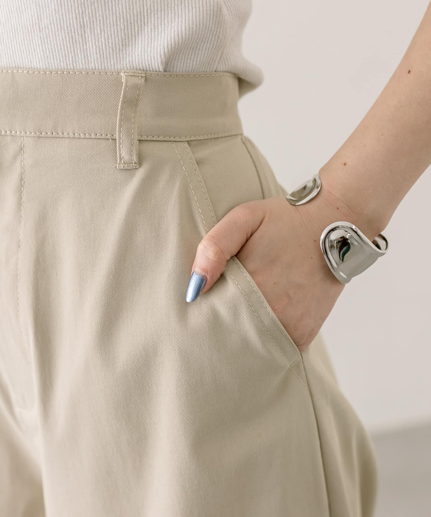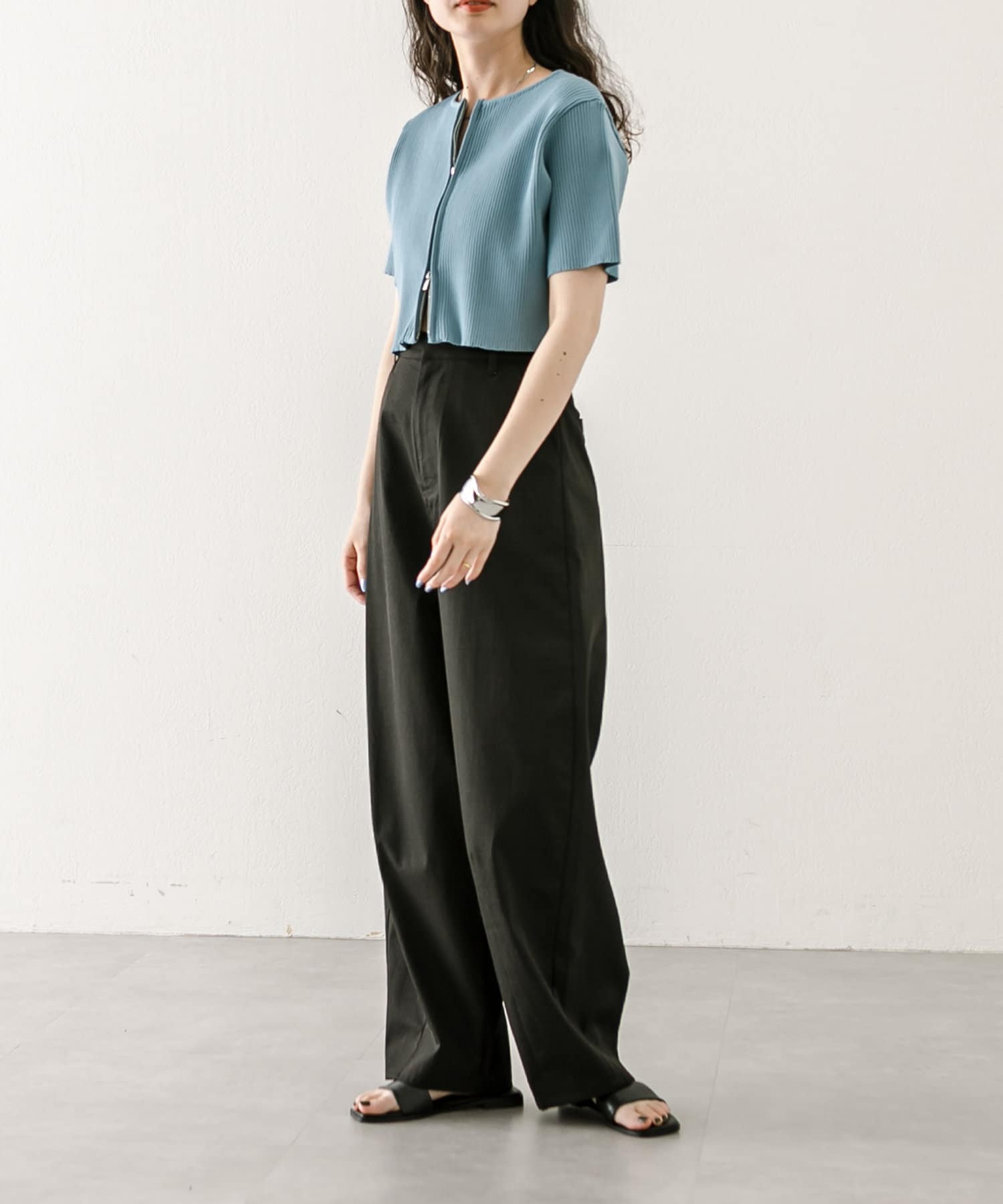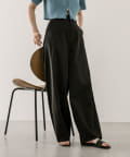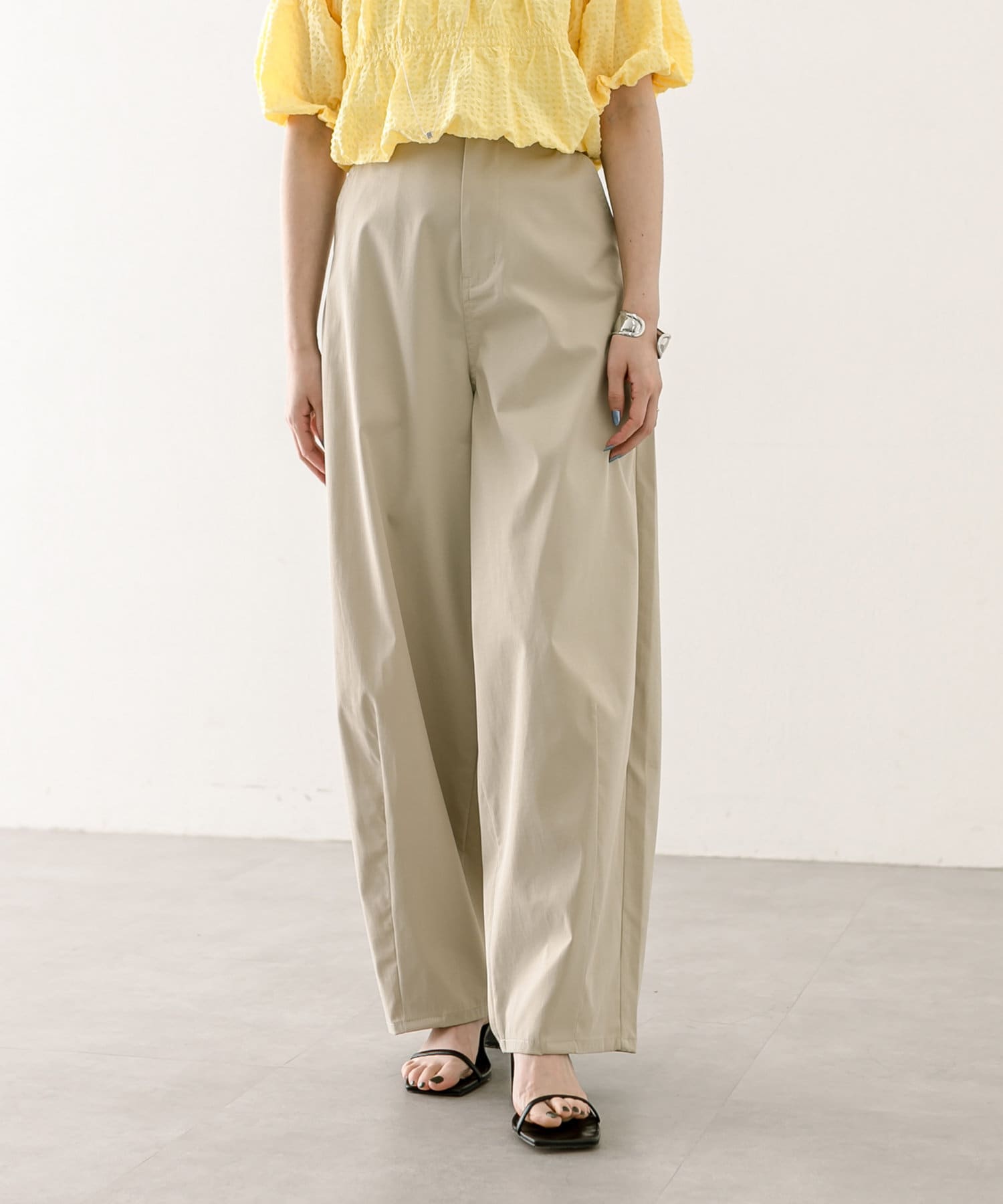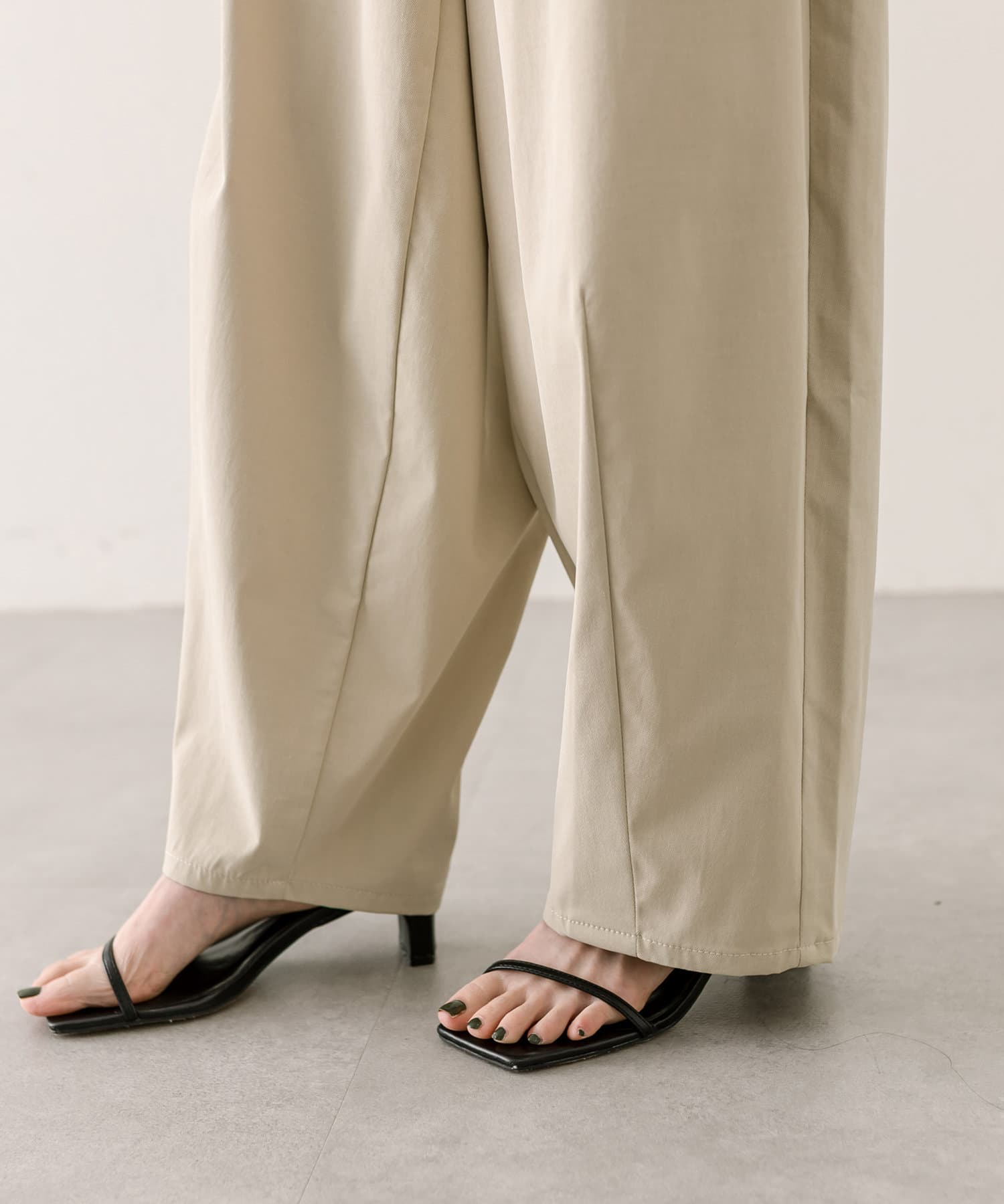 ・ワイドに広がる今っぽいシルエットながらも足元のタックがアクセントになり新鮮な一着です。
