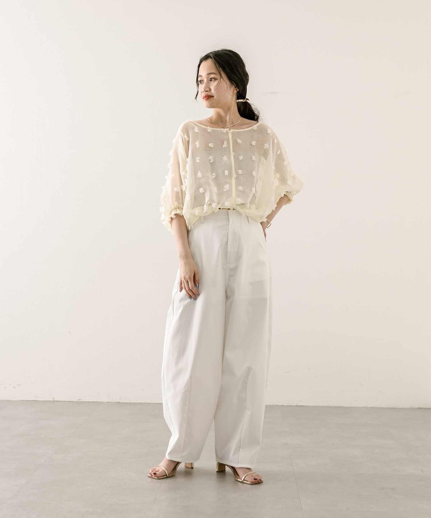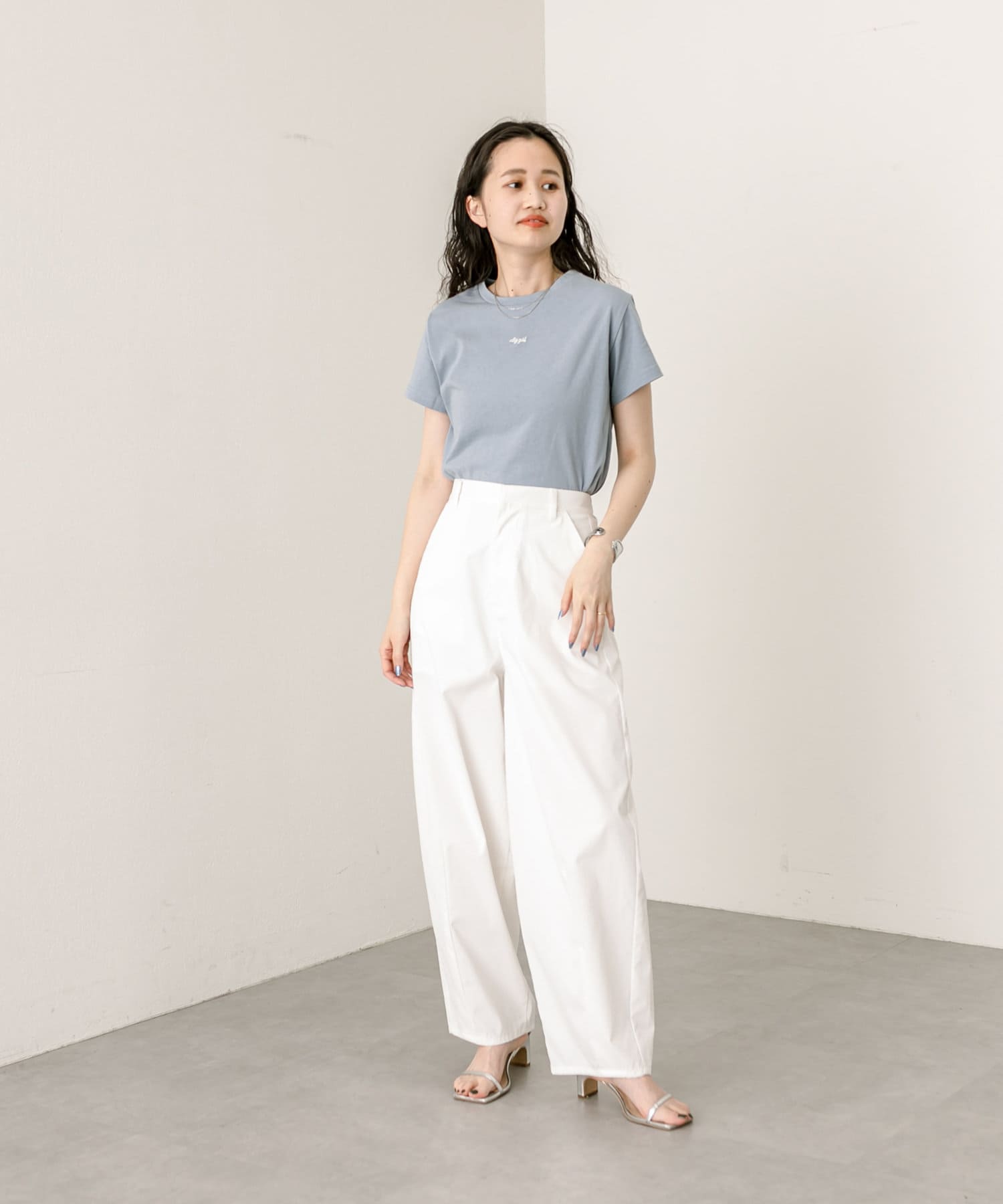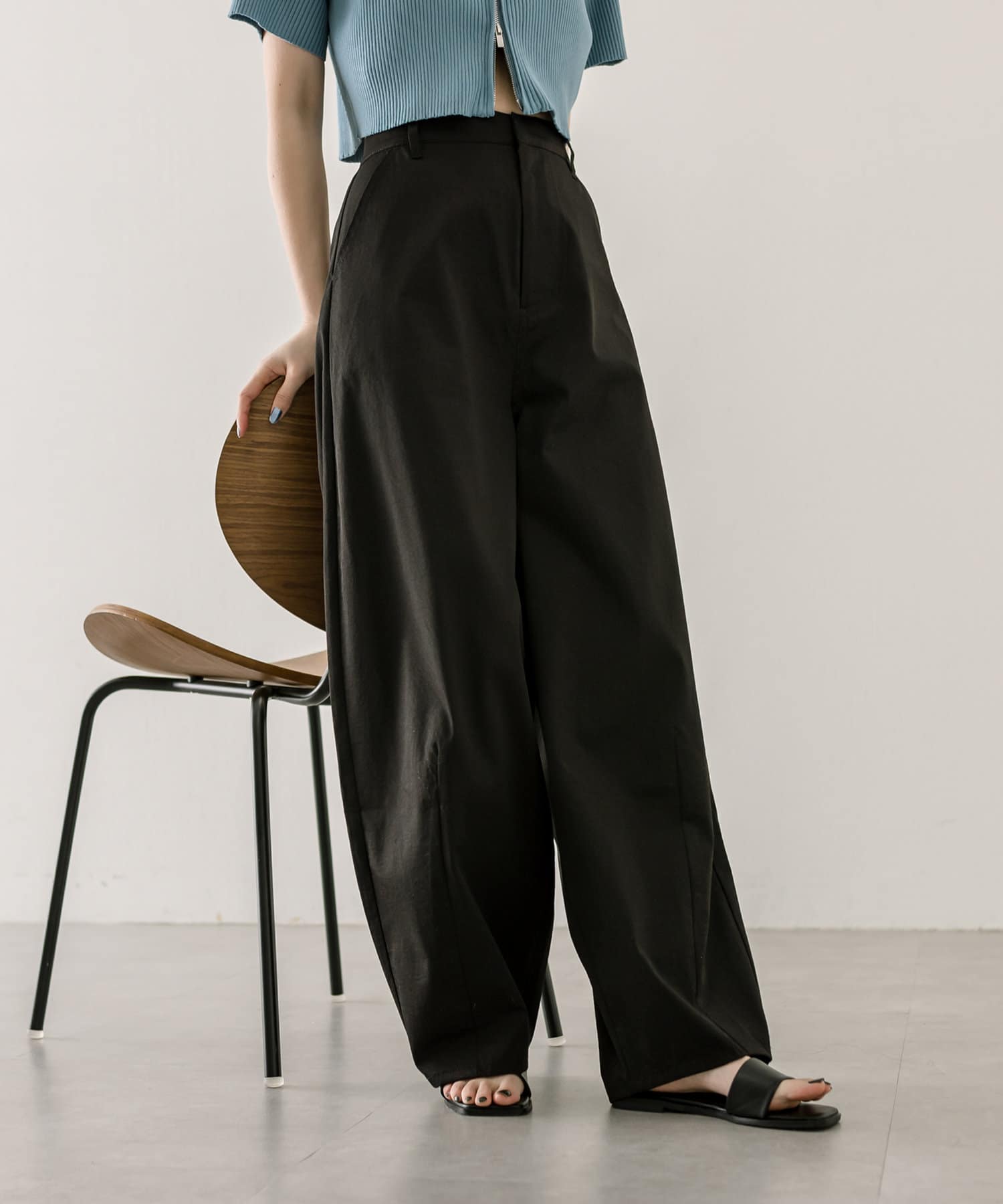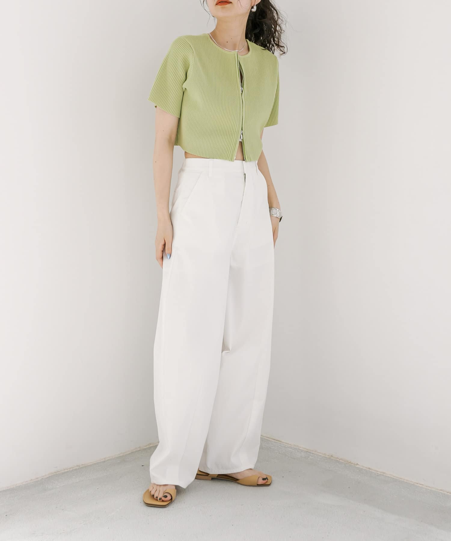 ・ワイドに広がる今っぽいシルエットながらも足元のタックがアクセントになり新鮮な一着です。