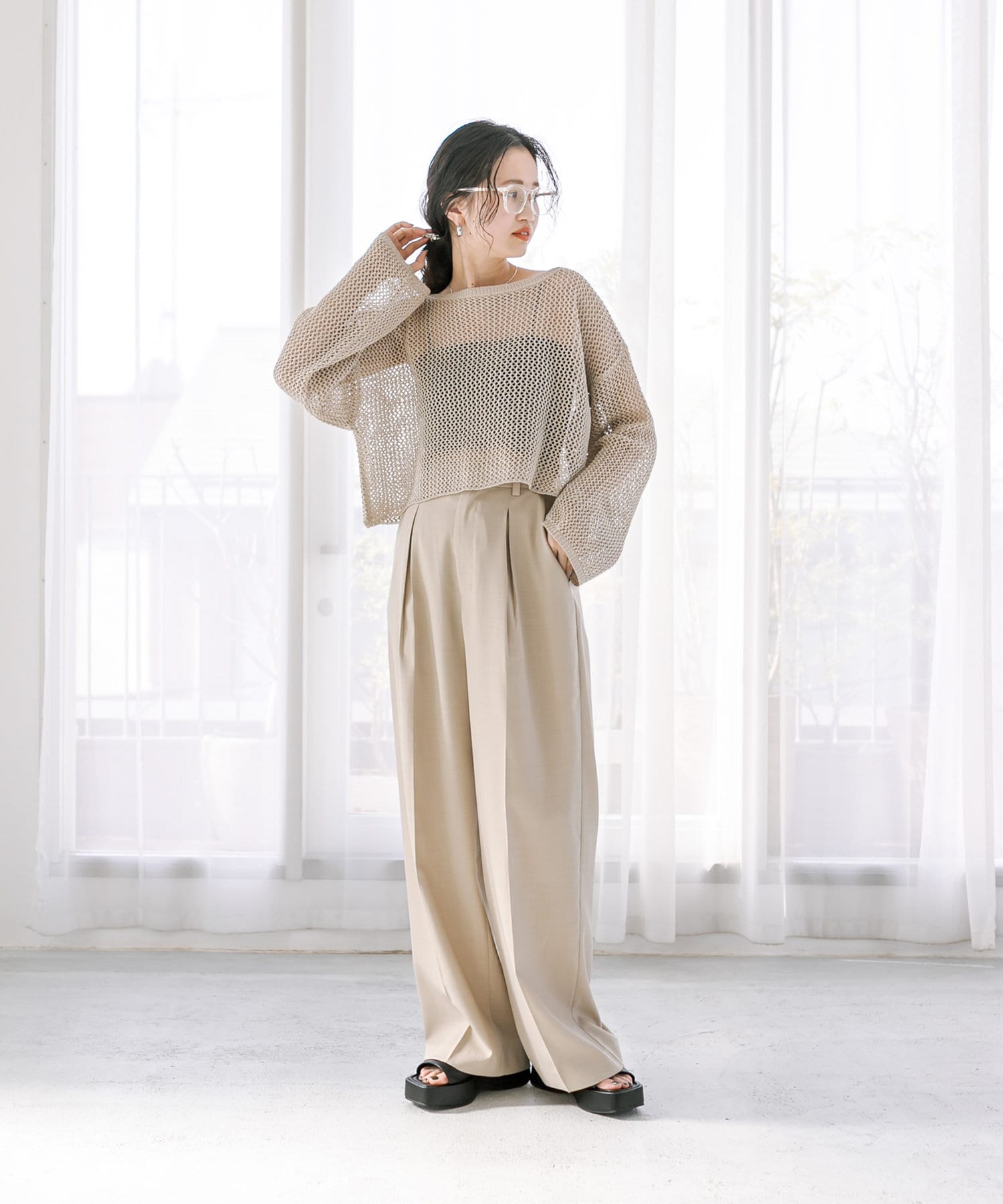 ・ゆるっとしたシルエットでありながら、フロントのタックがウエスト周りをすっきりと見せてくれる嬉しい一着。