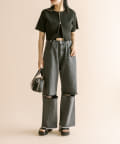 ・膝下の切りっぱなしデザインがポイントのワイドパンツ。
