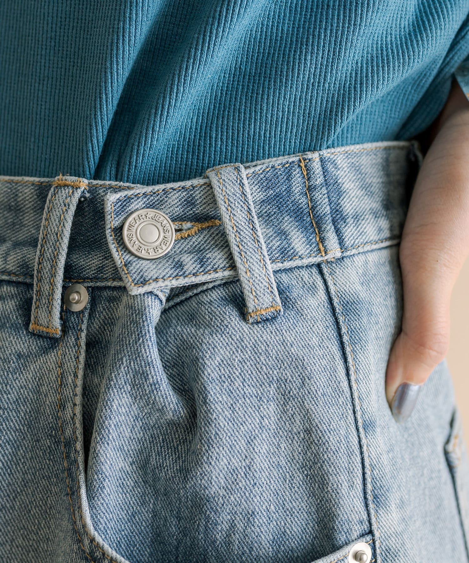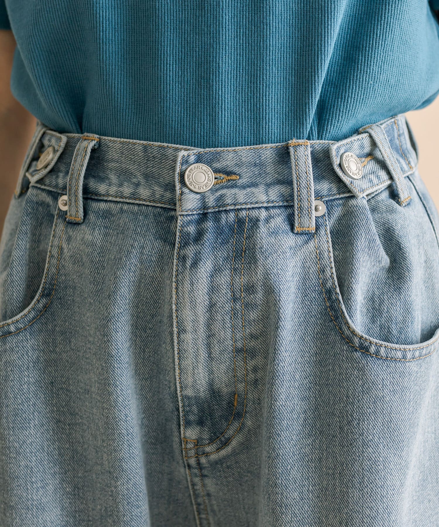 ・ウエスト部分は2つのボタンがついており、好みのサイズ感に変えて着用して頂けます。