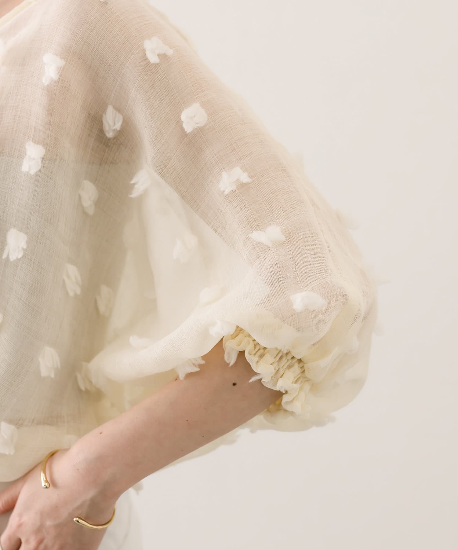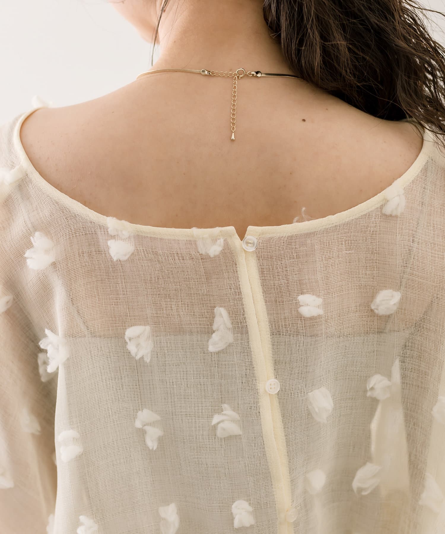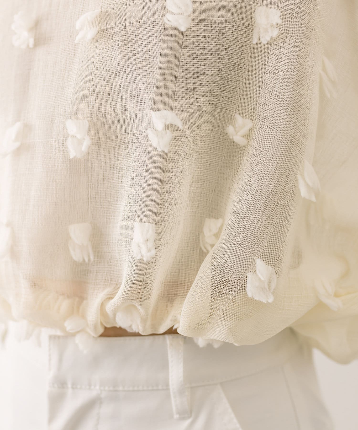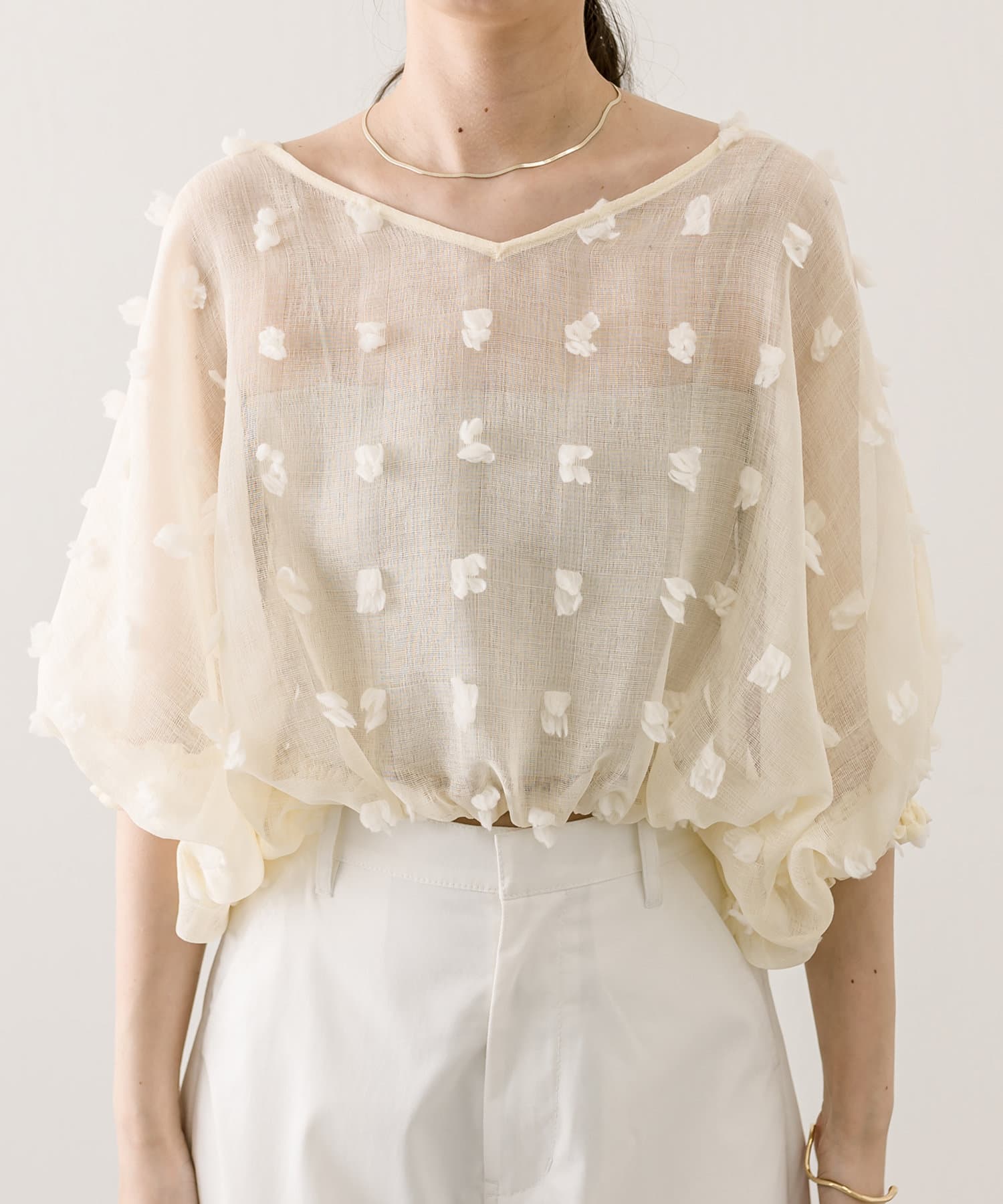・ふんわりとしたシルエットとシアーデザインで女性らしいキュートなブラウス。