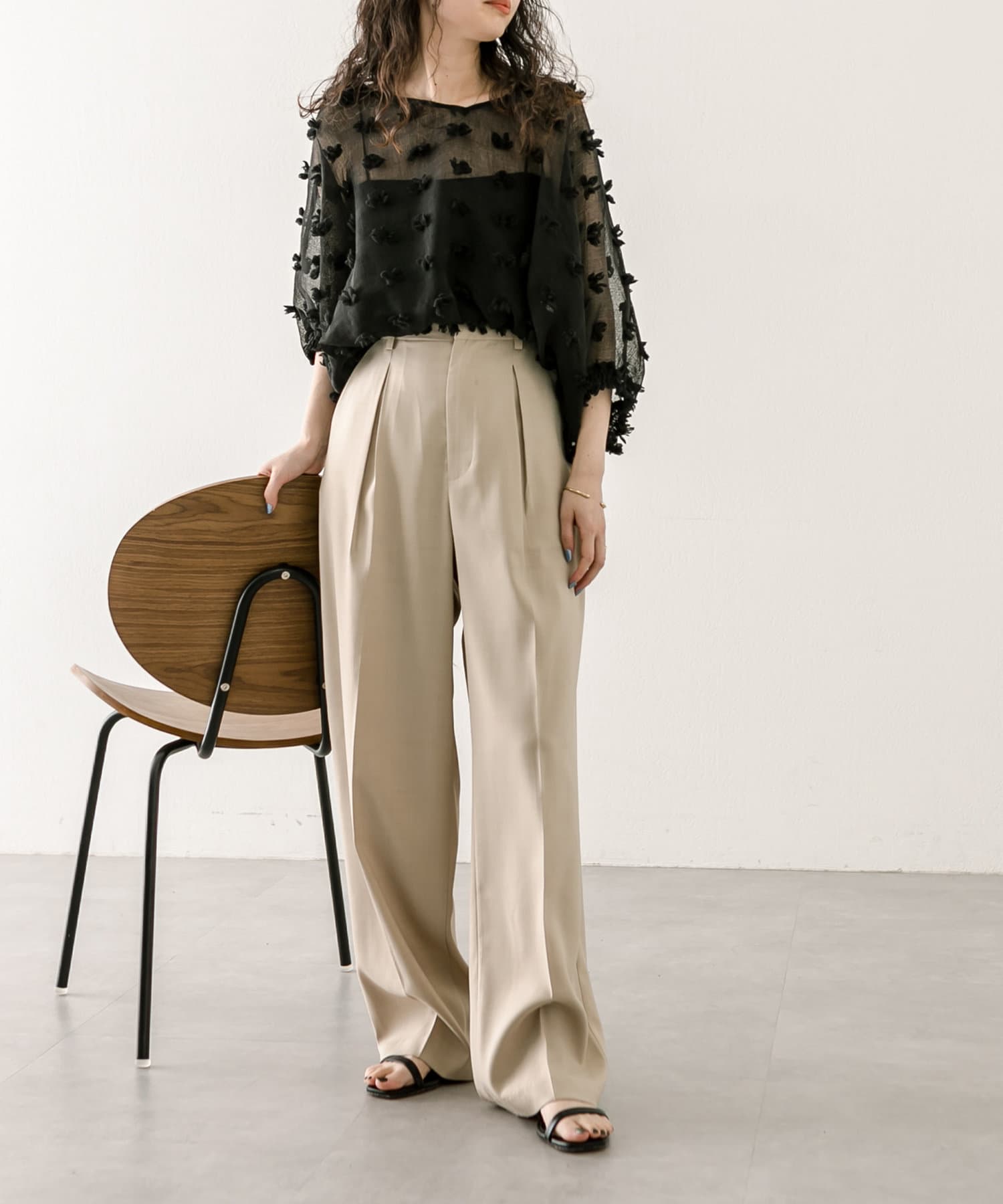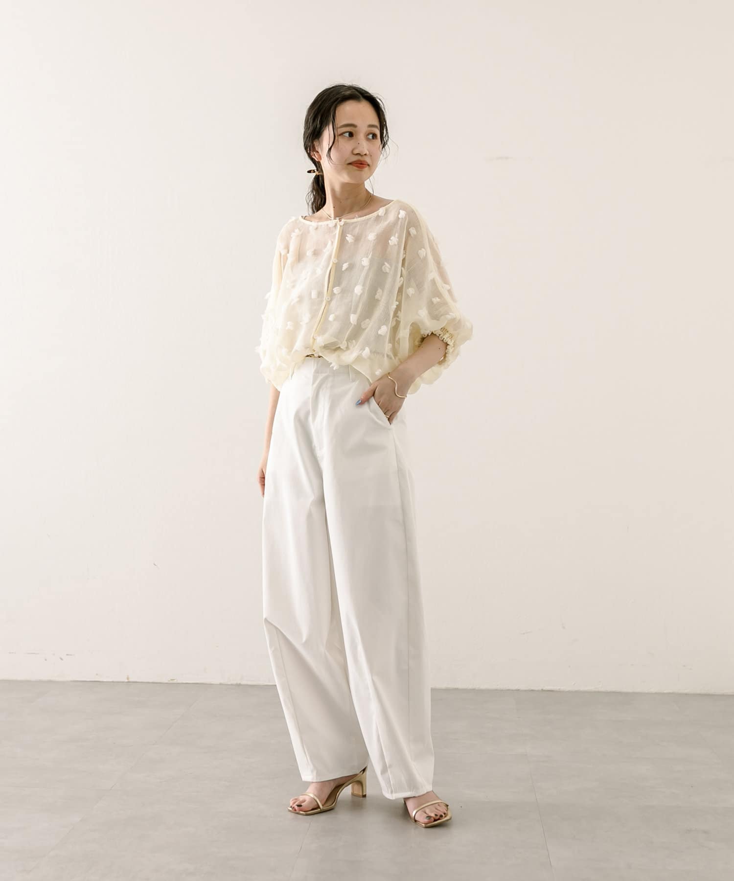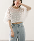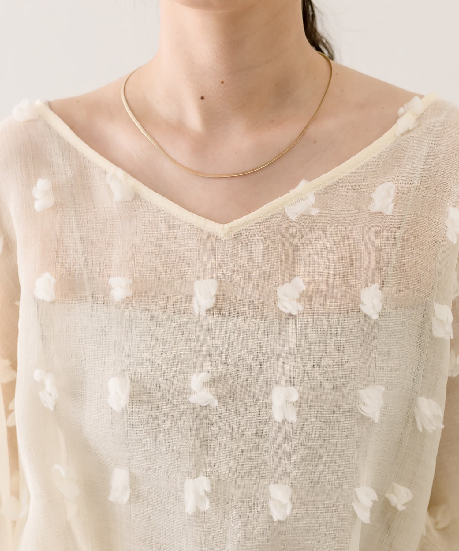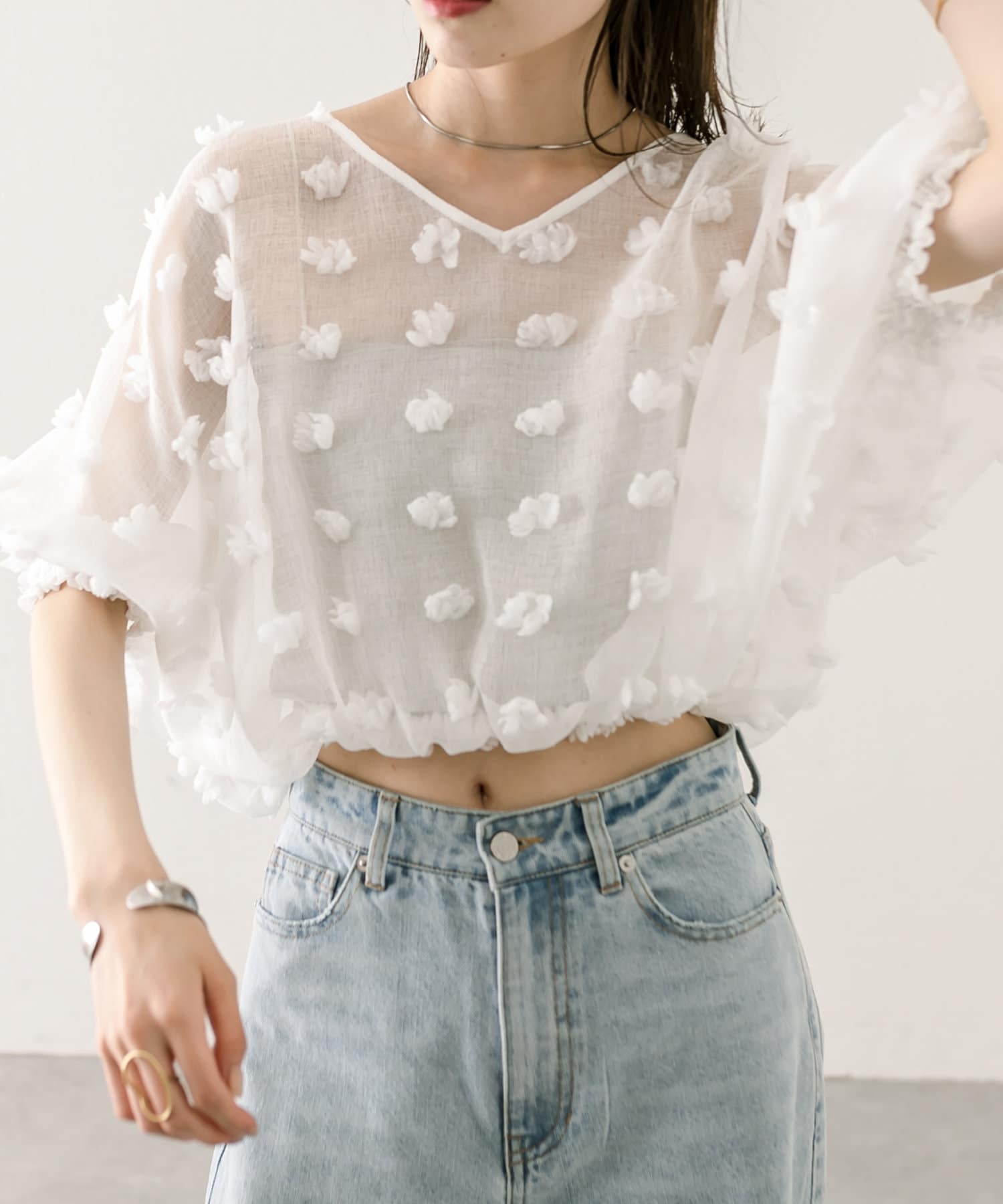 ・ふんわりとしたシルエットとシアーデザインで女性らしいキュートなブラウス。