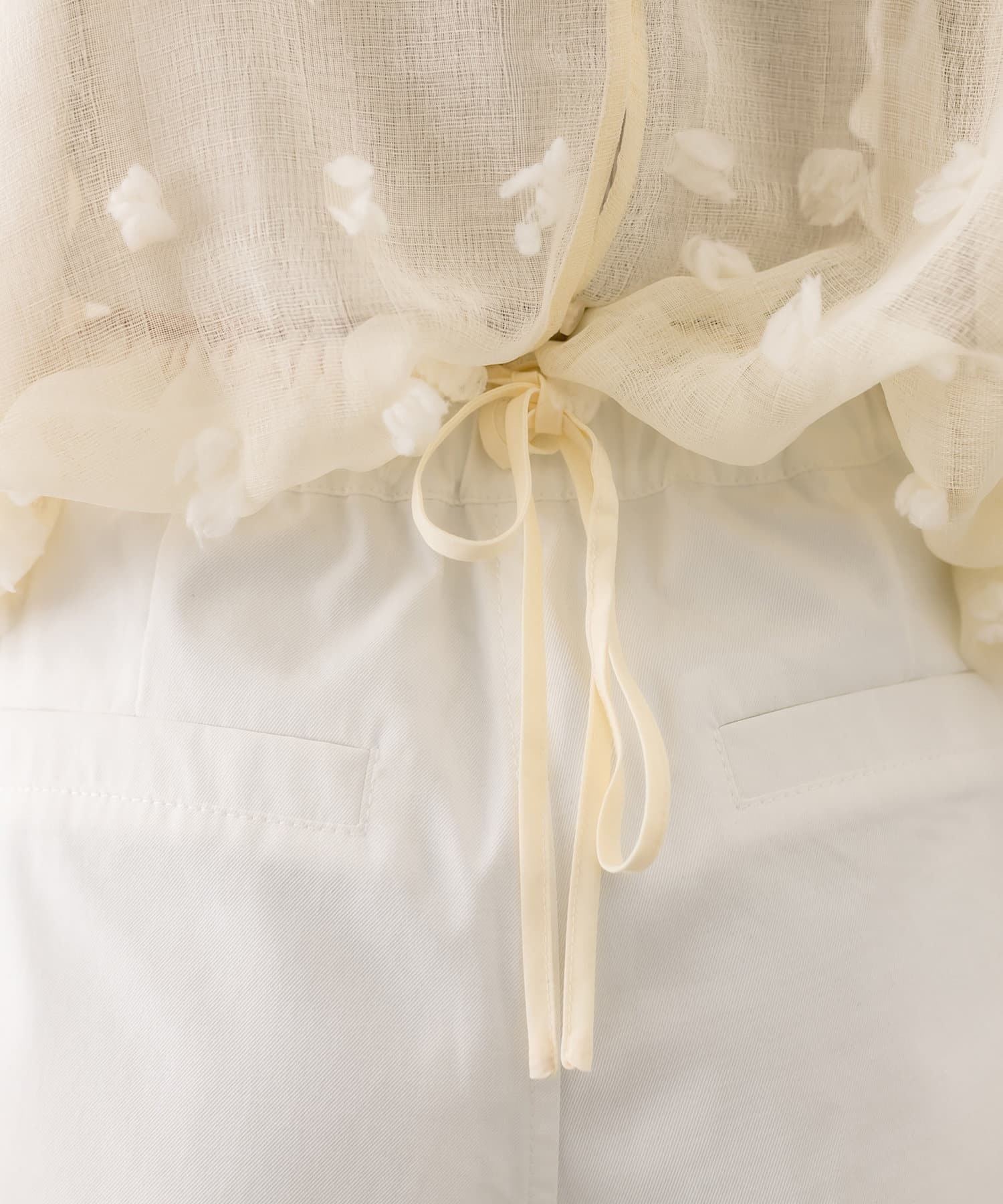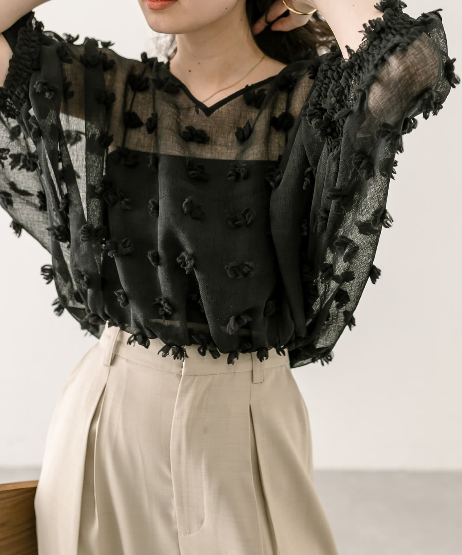 トレンドのシアー素材とポンポンデザインが目を惹くときめきブラウス!