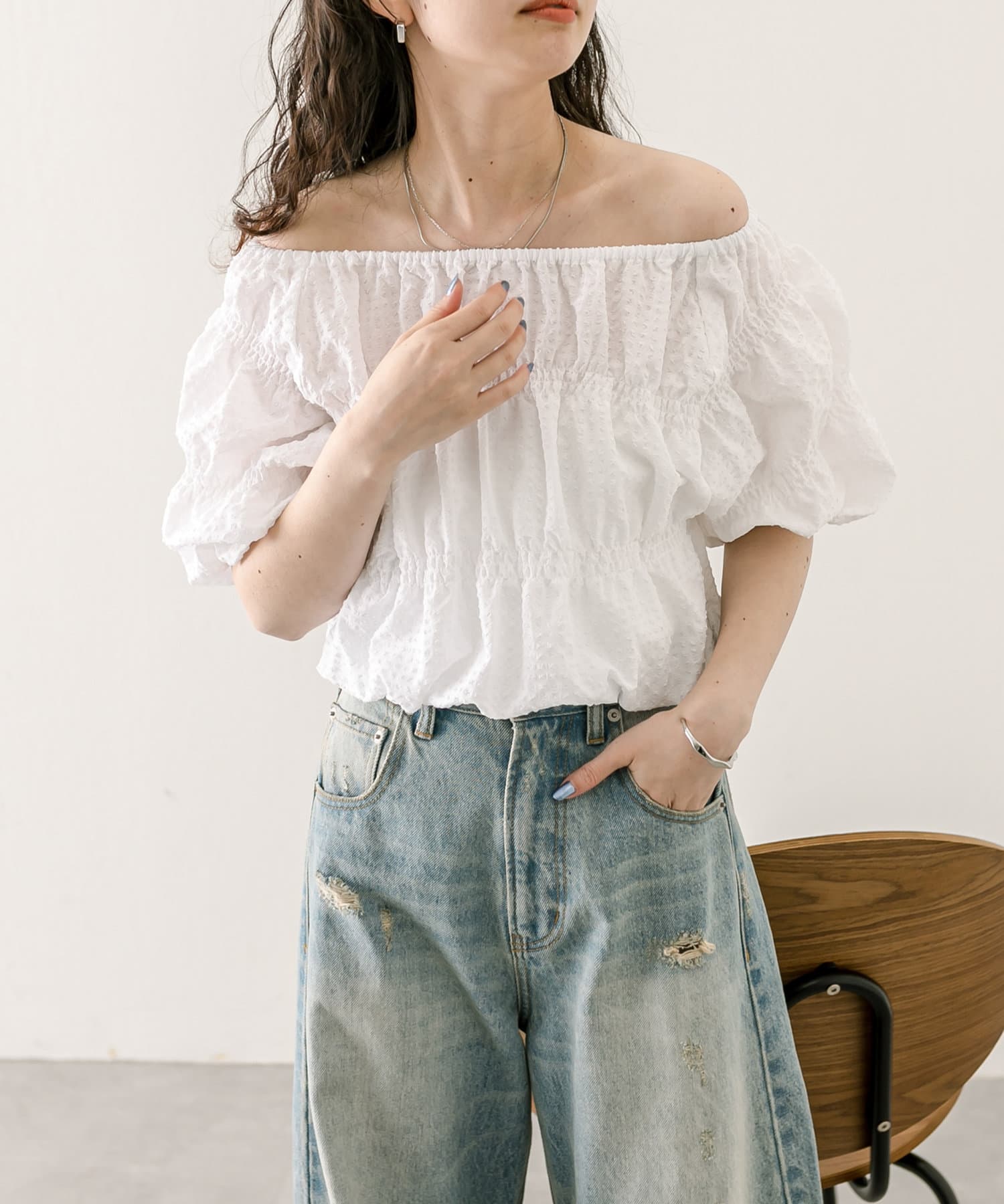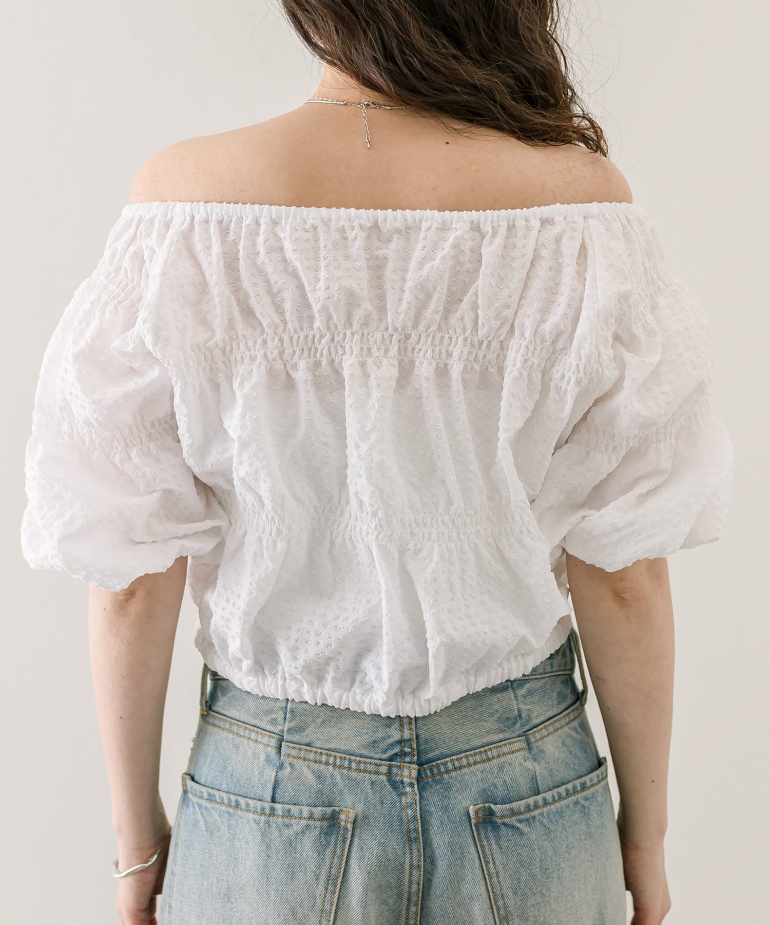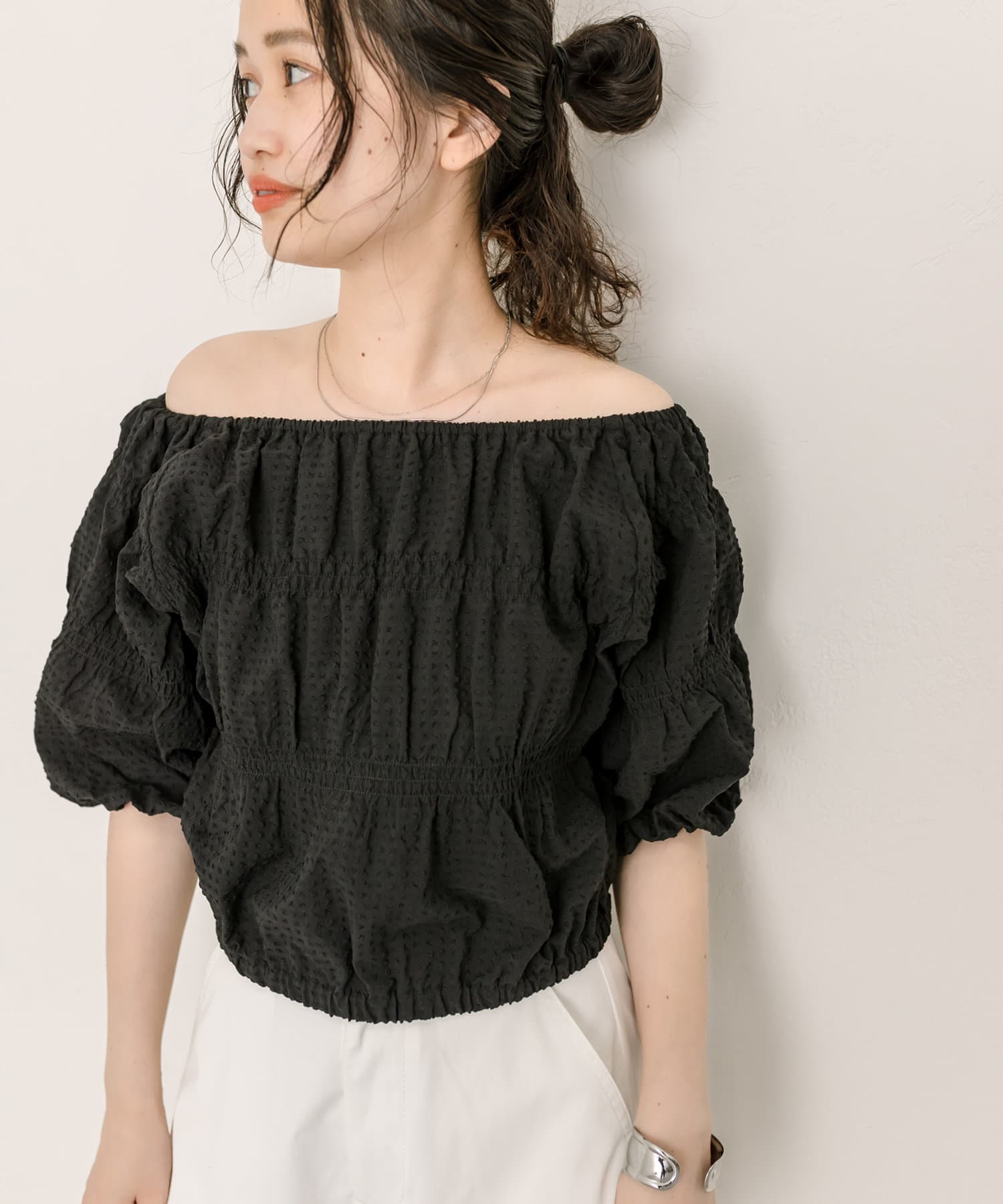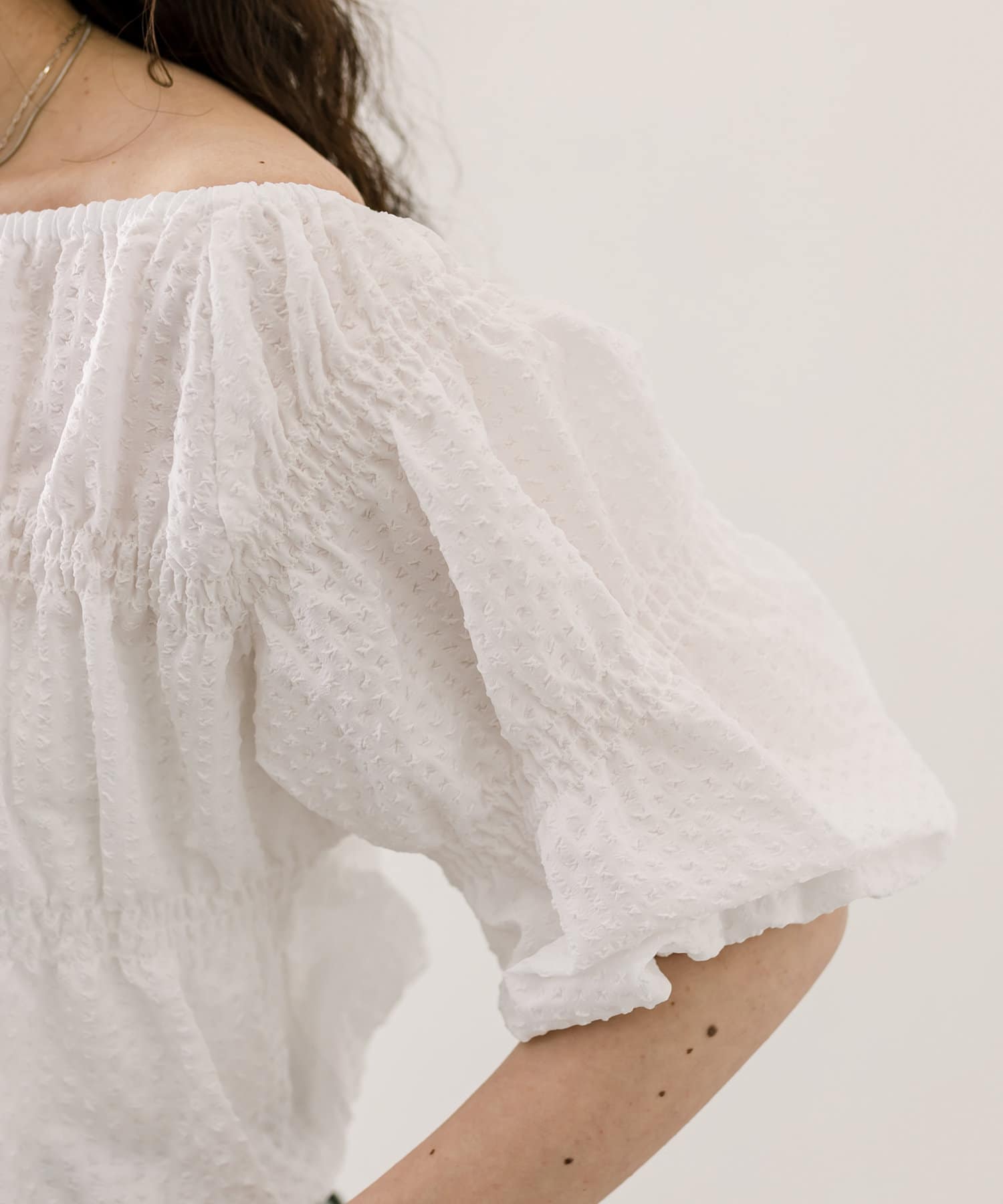 エンボスオフショルブラウス