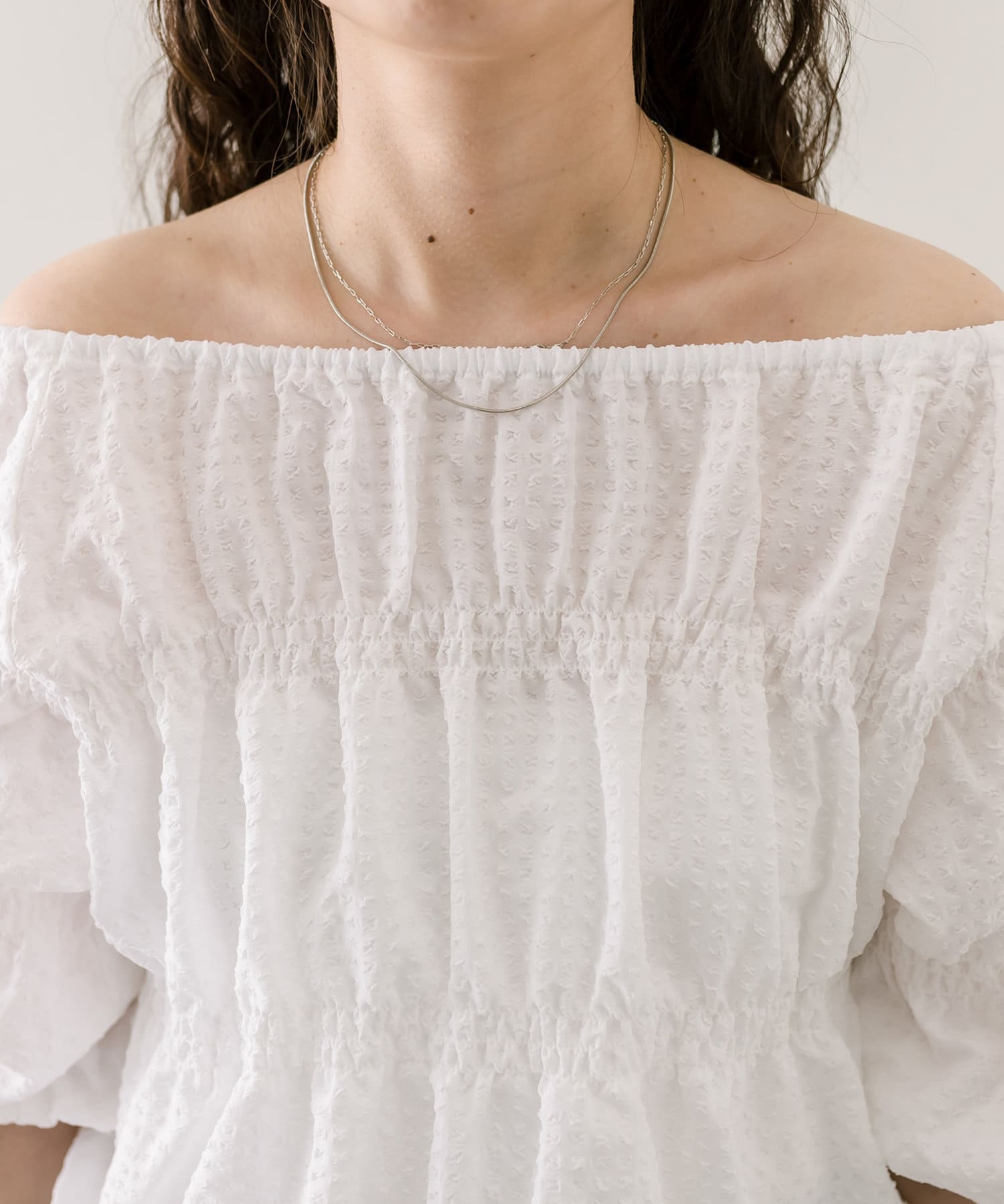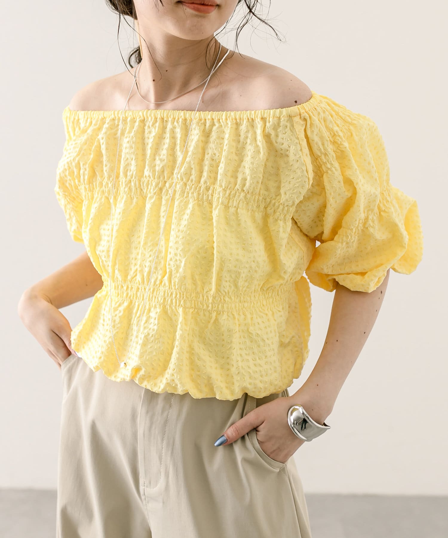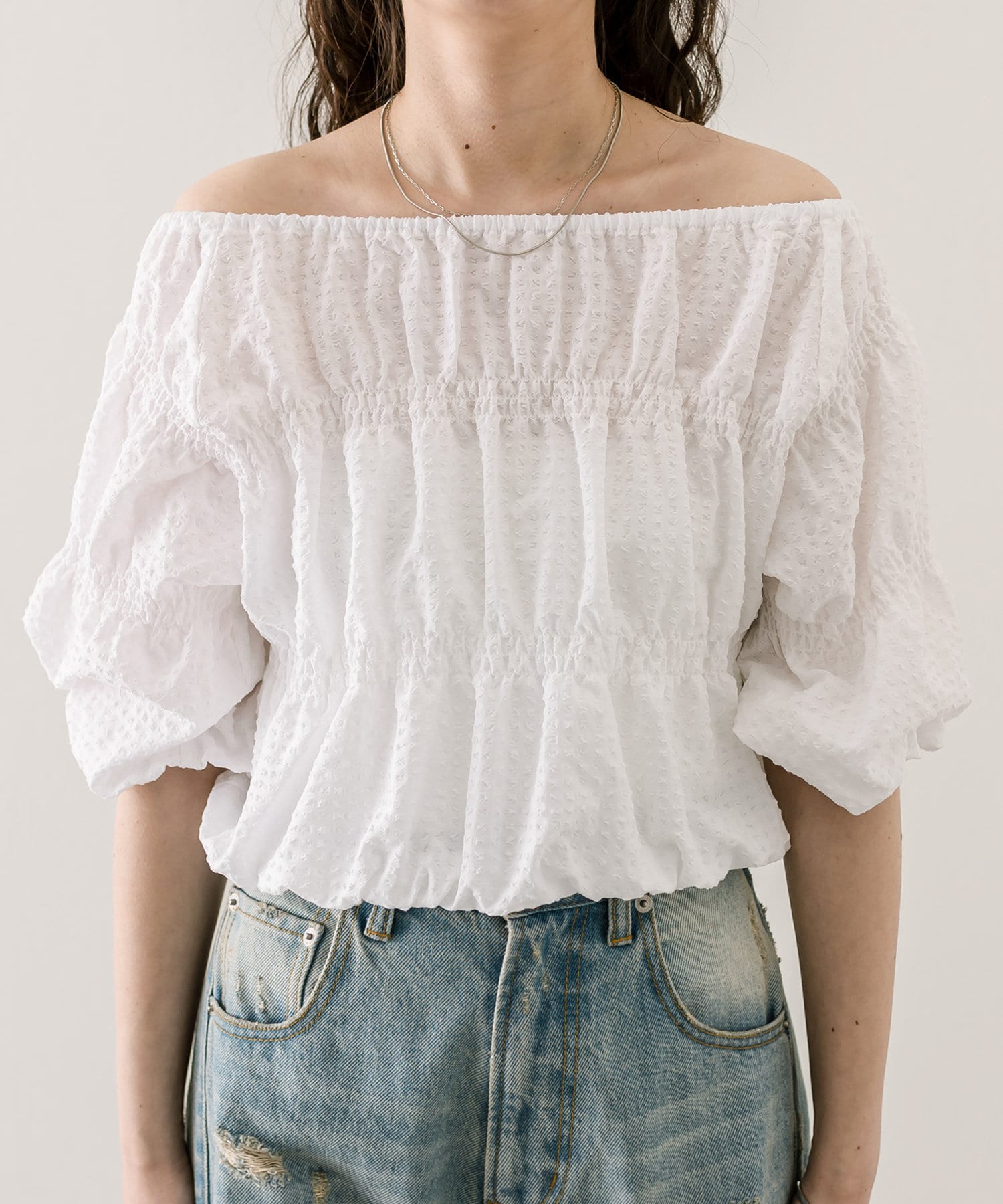 エンボスオフショルブラウス