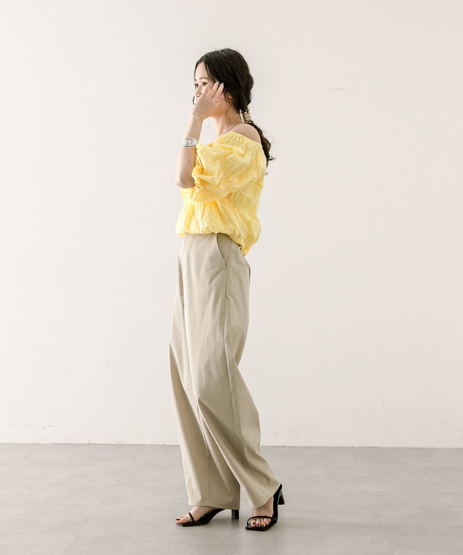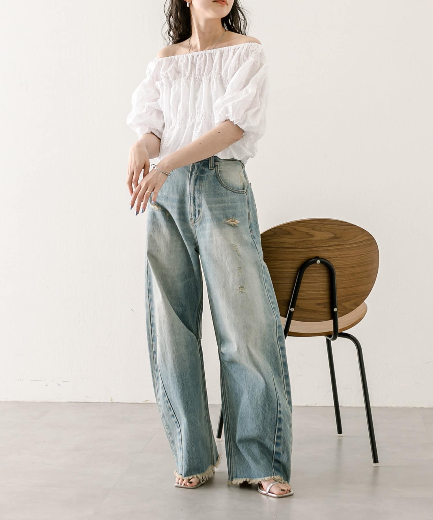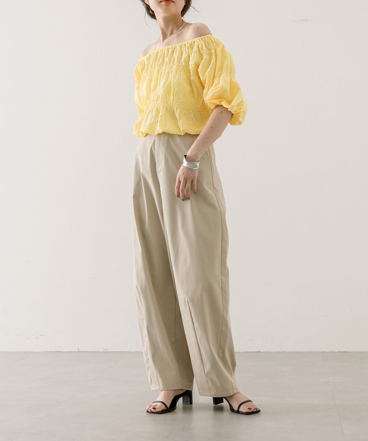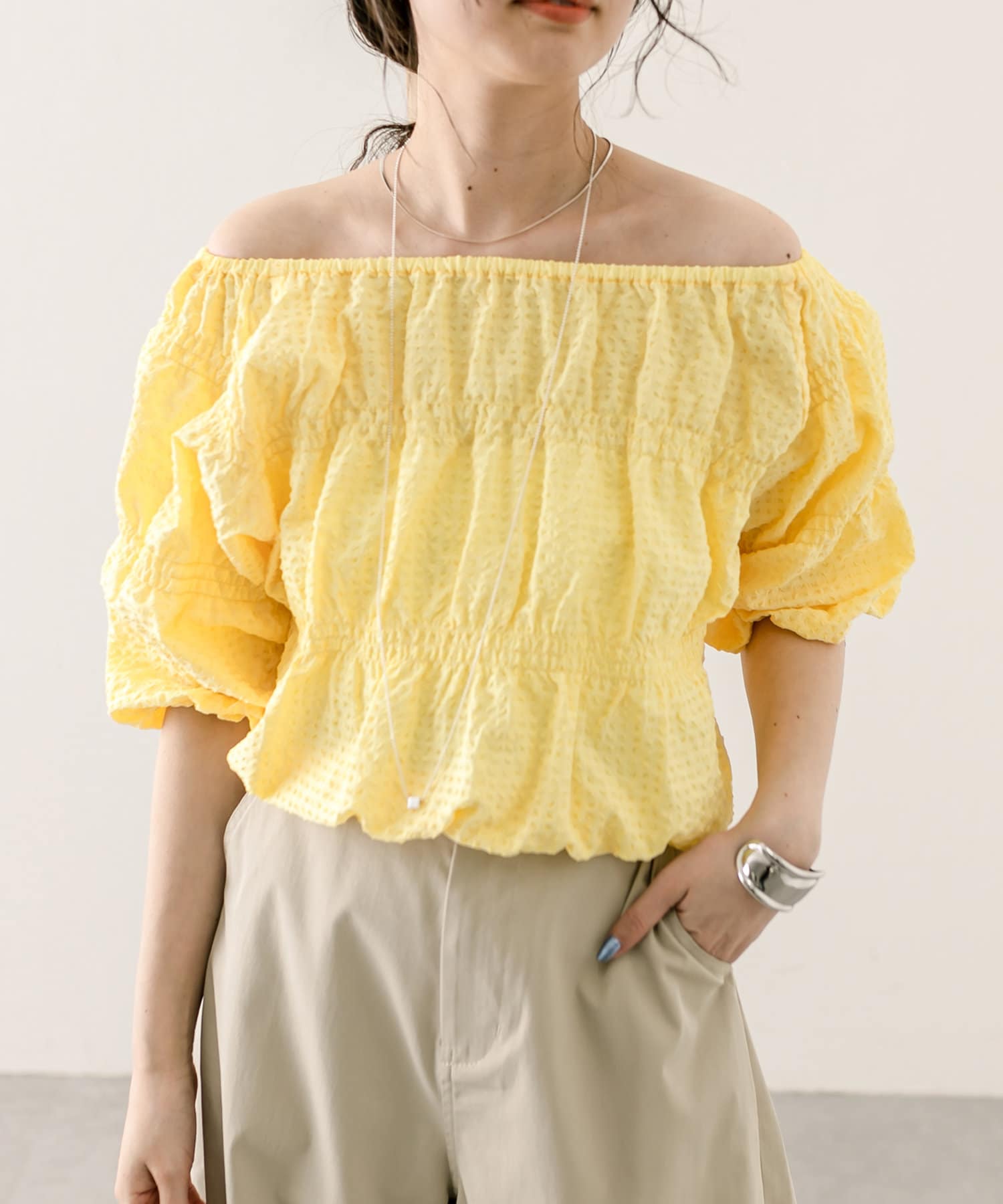 エンボスオフショルブラウス